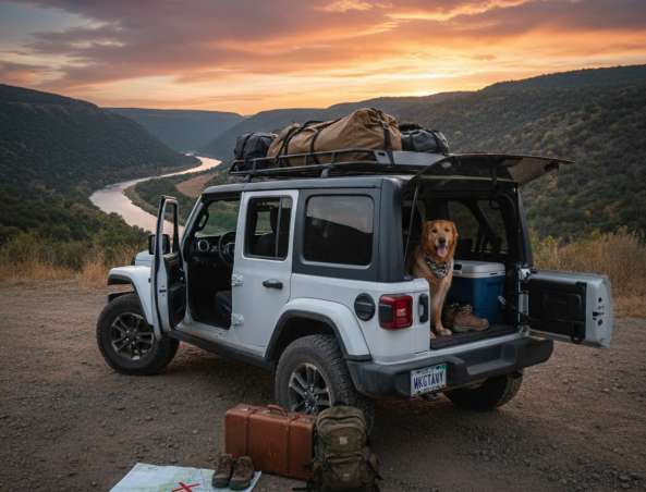 The Wrangler has clever storage areas that often go unnoticed. Use the small compartments under the seats or behind them. If you’re traveling with another person, decide who’s in charge of what, so you both know where things are packed. The idea isn’t to bring everything you own, but to bring what makes the trip comfortable and simple.