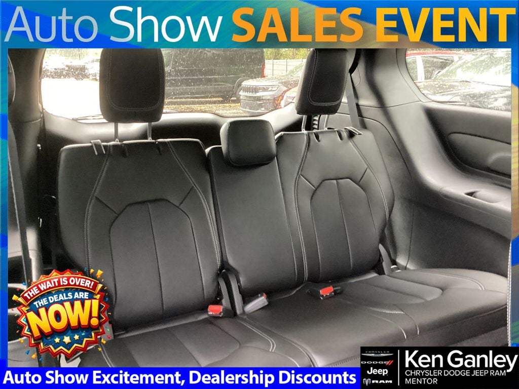*Heated steering wheel, *ParkView Rear Back-Up Camera, 10.1 Touchscreen Display, 18 x 7.5 Painted Aluminum Wheels, 3.73 Axle Ratio, 3rd row seats: split-bench, 4-Wheel Disc Brakes, 4G LTE Wi-Fi Hot Spot, 6 Speakers, ABS brakes, Air Conditioning, Alloy wheels, AM/FM radio: SiriusXM, Apple CarPlay, Apple CarPlay/Android Auto, Auto-dimming Rear-View mirror, Automatic temperature control, AWD Suspension, Black Seats, Brake assist, Bumpers: body-color, Caprice Leatherette Bucket Seats, Compass, Connectivity - US/Canada, Delay-off headlights, Disassociated Touchscreen Display, Driver door bin, Driver vanity mirror, Driver's Seat Mounted Armrest, Dual front impact airbags, Dual front side impact airbags, Electronic Stability Control, Emergency communication system: Chrysler Connect, For Details, Visit DriveUconnect.com, Four wheel independent suspension, Front anti-roll bar, Front Bucket Seats, Front dual zone A/C, Front fog lights, Front reading lights, Front Splash Guards, Fully automatic headlights, Garage door transmitter, Google Android Auto, GPS Antenna Input, Heated door mirrors, Heated front seats, Illuminated entry, Integrated Active Noise Cancellation, Integrated Center Stack Radio, Knee airbag, Low tire pressure warning, Memory seat, MOPAR Paint Protection Film, MOPAR Splash Guards - Vehicle Set, MyFlexCare Service Plan, Occupant sensing airbag, Outside temperature display, Overhead airbag, Overhead console, Panic alarm, Passenger door bin, Passenger seat mounted armrest, Passenger vanity mirror, Power door mirrors, Power driver seat, Power Front/Fixed Rear Full Sunroof, Power Liftgate, Power Open/Close Shade, Power steering, Power windows, Quick Order Package 27L, Radio data system, Radio: Uconnect 5 with 10.1 Display, Rain sensing wipers, Rear air conditioning, Rear reading lights, Rear Splash Guards, Rear window defroster, Rear window wiper, Reclining 3rd row seat, Remote keyless entry, Security system, Speed control, Split folding rear seat, Spoiler, Steering wheel mounted audio controls, Tachometer, Telescoping steering wheel, Tilt steering wheel, Traction control, Trip computer, Turn signal indicator mirrors, USB Host Flip, Variably intermittent wipers, Voltmeter. PRICING AVAILABLE TO ALL CUSTOMER!!! WE ARE ONE OF OHIO'S LEADING VOLUME DEALERSHIPS COME SEE OUR HUGE SELECTION AND UNMATCHED SAVINGS ONLY AT GANLEY VILLAGE CHRYSLER DODGE JEEP RAM FIAT OF PAINESVILLE, OH 44077.