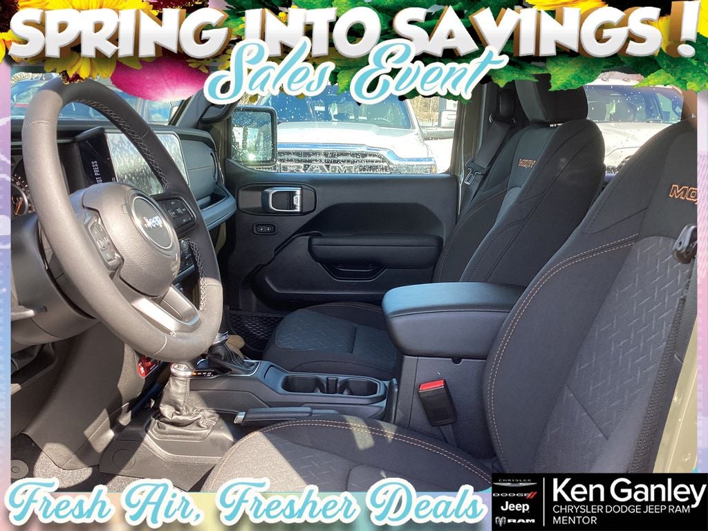 110 Mph Vehicle Max Speed Calibration, 12.3 Touchscreen Display, 4-Wheel Disc Brakes, 4.10 Rear Axle Ratio, 4G LTE Wi-Fi Hot Spot, 8 Speakers, ABS brakes, Air Conditioning, Alexa Built-in, Alloy wheels, AM/FM radio: SiriusXM with 360L, Apple CarPlay, Apple CarPlay/Android Auto, Automatic temperature control, Body Color 3-Piece Hard Top, Body Color Rubicon Highline Flare, Brake assist, Compass, Connectivity - US/Canada, Convenience Group, Delay-off headlights, Driver door bin, Driver vanity mirror, Dual front impact airbags, Dual front side impact airbags, Electronic Stability Control, Emergency communication system: Jeep Connect, For Details, Visit DriveUconnect.com, Freedom Panel Storage Bag, Front anti-roll bar, Front Bucket Seats, Front Center Armrest w/Storage, Front dual zone A/C, Front fog lights, Front License Plate Bracket, Front reading lights, Fully automatic headlights, Google Android Auto, Heated door mirrors, Heated Front Seats, Heated Steering Wheel, Heavy Duty Suspension with Gas Shocks, Illuminated entry, Integrated Center Stack Radio, Integrated roll-over protection, Low tire pressure warning, Manufacturer's Statement of Origin, MOPAR All-Weather Slush Mats, MOPAR Spray in Bedliner, MyFlexCare Service Plan, Occupant sensing airbag, Outside temperature display, Overhead airbag, Panic alarm, Passenger door bin, Passenger vanity mirror, Power door mirrors, Power steering, Power windows, Premium Cloth Seats with Sport Bolsters, Quick Order Package 24D Mojave, Radio data system, Radio: Uconnect 5 with 12.3 Display, Rear anti-roll bar, Rear reading lights, Rear Sliding Window, Rear Window Defroster, Remote keyless entry, Remote Start System, Security system, SiriusXM Radio Service, SiriusXM with 360L, Speed control, Split folding rear seat, Steering wheel mounted audio controls, Tachometer, Telescoping steering wheel, Tilt steering wheel, Traction control, Trip computer, Universal Garage Door Opener, USB Host Flip, Variably intermittent wipers, Voltmeter, Wheels: 17 x 7.5 Dark Gray Painted. PRICING AVAILABLE TO ALL CUSTOMER!!! WE ARE ONE OF OHIO'S LEADING VOLUME DEALERSHIPS COME SEE OUR HUGE SELECTION AND UNMATCHED SAVINGS ONLY AT GANLEY VILLAGE CHRYSLER DODGE JEEP RAM FIAT OF PAINESVILLE, OH 44077.