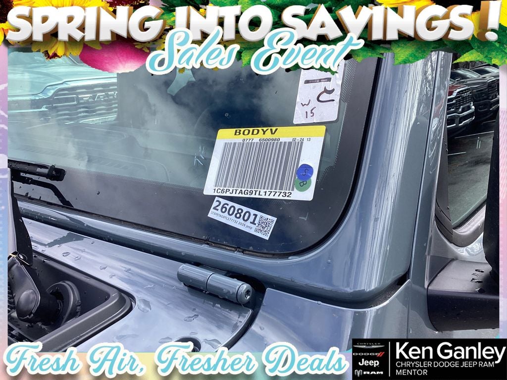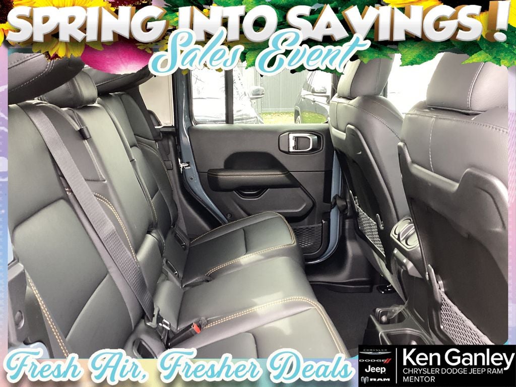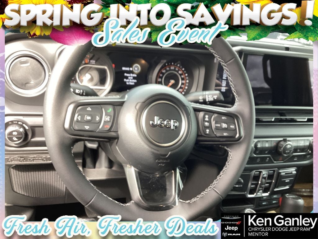 *ParkView Rear Back-Up Camera, 110 Mph Vehicle Max Speed Calibration, 12.3 Touchscreen Display, 2-Piece Body Color Fender Flares, 3.73 Rear Axle Ratio, 4-Wheel Disc Brakes, 4G LTE Wi-Fi Hot Spot, 8 Speakers, ABS brakes, Advanced Brake Assist, Air Conditioning, Air Conditioning with Auto Temp Control, Alexa Built-in, AM/FM radio: SiriusXM with 360L, Apple CarPlay, Apple CarPlay/Android Auto, Automatic Headlamps, Auxiliary Switches, Body Color 3-Piece Hard Top, Brake assist, Central ADAS Decision Module (CADM), Class IV Receiver Hitch, Cluster 7.0 TFT Color Display, Compass, Connectivity - US/Canada, Corning Gorilla Glass, Daytime Running Lamp System, Daytime Running Lamps LED Accents, Deep Tint Sunscreen Windows, Delay-off headlights, Driver door bin, Driver vanity mirror, Dual front impact airbags, Dual front side impact airbags, Electronic Stability Control, Emergency/Assistance Call, For Details, Visit DriveUconnect.com, Freedom Panel Storage Bag, Front anti-roll bar, Front Bucket Seats, Front Center Armrest w/Storage, Front Door Locks 2-Door Passive Entry, Front fog lights, Front LED Fog Lamps, Front License Plate Bracket, Front reading lights, Full Length Floor Console Premium Armrest, Full Speed Forward Collision Warning Plus, Google Android Auto, Hard Seat Back, Heated Front Seats, Heated Steering Wheel, Heavy-Duty Engine Cooling, Illuminated entry, Integrated Center Stack Radio, Integrated roll-over protection, Leather Wrapped Park Brake Handle, Leather Wrapped Shift Knob, LED Headlamp and Fog Lamp Group, LED Premium Reflector Headlamps, Low tire pressure warning, Manufacturer's Statement of Origin, MOPAR All-Weather Slush Mats, MOPAR Spray in Bedliner, MyFlexCare Service Plan, Normal Duty Plus Suspension, Normal Duty Suspension, Occupant sensing airbag, Outside temperature display, Overhead airbag, Panic alarm, Passenger door bin, Passenger vanity mirror, Power 4-Way Driver Lumbar Adjust, Power 4-Way Passenger Lumbar Adjust, Power Adjust 8-Way Driver Seat, Power Adjust 8-Way Front Passenger Seat, Power Heated Mirrors, Power steering, Power windows, Premium Door Trim Panel, Premium McKinley Trimmed Seats, Premium Wrapped Steering Wheel, Quick Order Package 24H Sahara, Radio data system, Radio: Uconnect 5 with 12.3 Display, Rear anti-roll bar, Rear Armrest with Cupholder Seat, Rear reading lights, Rear Sliding Window, Rear Window Defroster, Remote keyless entry, Remote Start System, Sahara, Sahara Badge Neutral Gray, Security Alarm, SiriusXM Radio Service, SiriusXM with 360L, Speed control, Split folding rear seat, Steering wheel mounted audio controls, Sun Visors with Illuminated Vanity Mirrors, Tachometer, Telescoping steering wheel, Tilt steering wheel, Traction control, Trailer Hitch Zoom, Trailer Tow and Auxiliary Switch Group, Trip computer, Universal Garage Door Opener, USB Host Flip, Variably intermittent wipers, Voltmeter, Wheels: 17 x 7.5 Black Steel Styled, Wheels: 18 x 7.5 Machined/Painted Gray. PRICING AVAILABLE TO ALL CUSTOMER!!! WE ARE ONE OF OHIO'S LEADING VOLUME DEALERSHIPS COME SEE OUR HUGE SELECTION AND UNMATCHED SAVINGS ONLY AT GANLEY VILLAGE CHRYSLER DODGE JEEP RAM FIAT OF PAINESVILLE, OH 44077.