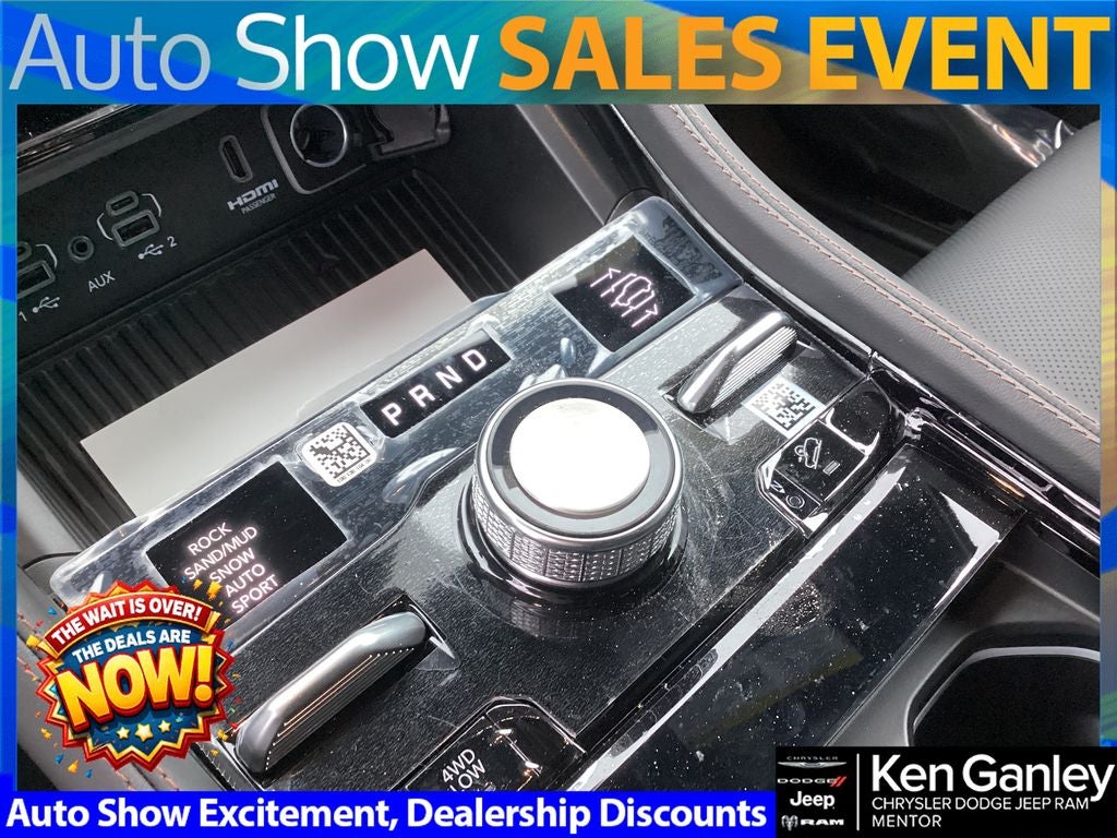 4WD, *Heated steering wheel, *Power moonroof, *Ventilated front seats, 19 Speakers, 3.70 Rear Axle Ratio, 4-Wheel Disc Brakes, 4G LTE Wi-Fi Hot Spot, ABS brakes, Active Noise Control System, Adaptive suspension, ADV Protech Group IV, Air Conditioning, Alloy wheels, AM/FM radio: SiriusXM with 360L, Anti-whiplash front head restraints, Apple CarPlay, AppLink/Apple CarPlay and Android Auto, Audio memory, Auto High-beam Headlights, Auto-dimming door mirrors, Auto-dimming Rear-View mirror, Auto-leveling suspension, Automatic temperature control, Auxiliary Battery, Brake assist, Bumpers: body-color, Compass, Connectivity - US/Canada, Delay-off headlights, Disassociated Touchscreen Display, Driver door bin, Driver vanity mirror, Dual front impact airbags, Dual front side impact airbags, Electronic Stability Control, Emergency communication system, Exterior Accents Dark Neutral Metallic, For Details, Visit DriveUconnect.com, Four wheel independent suspension, Front anti-roll bar, Front Bucket Seats, Front Center Armrest w/Storage, Front dual zone A/C, Front fog lights, Front License Plate Bracket, Front reading lights, Fully automatic headlights, Garage door transmitter, Genuine wood dashboard insert, Genuine wood door panel insert, Global Telematics Box Module (TBM), Gloss Black Exterior Mirrors, Google Android Auto, GPS Antenna Input, Heads-Up Display, Heated door mirrors, Heated Exterior Mirrors, Heated front seats, Heated rear seats, Illuminated entry, Integrated Center Stack Radio, Integrated Voice Command with Bluetooth®, Knee airbag, Leather steering wheel, Low tire pressure warning, Manual Folding Exterior Mirrors, Memory seat, MyFlexCare Service Plan, Navigation System, Night Vision with Pedestrian-Animal Detection, Normal Duty Suspension, Obsidian Package, Occupant sensing airbag, Outside temperature display, Overhead airbag, Overhead console, Painted Door Cladding, Palermo Leather Seats, Panic alarm, Passenger door bin, Passenger vanity mirror, Power door mirrors, Power driver seat, Power Liftgate, Power passenger seat, Power steering, Power windows, Quick Order Package 2CU, Radio data system, Radio: Uconnect 5 Nav with 12.3 Display, Rain sensing wipers, Rear air conditioning, Rear anti-roll bar, Rear dual zone A/C, Rear reading lights, Rear seat center armrest, Rear window defroster, Rear window wiper, Remote keyless entry, Security system, Speed control, Speed-Sensitive Wipers, Split folding rear seat, Spoiler, Steering wheel memory, Steering wheel mounted audio controls, Tachometer, Telescoping steering wheel, Tilt steering wheel, Traction control, Trip computer, Turn signal indicator mirrors, USB Host Flip, Variably intermittent wipers, Ventilated rear seats, Voltmeter, Wheels: 21 x 9.0 Black Painted Aluminum, Wheels: 21 x 9.0 Machined Face/Painted Aluminum, Windshield Wiper De-Icer, 4WD. PRICING AVAILABLE TO ALL CUSTOMER!!! WE ARE ONE OF OHIO'S LEADING VOLUME DEALERSHIPS COME SEE OUR HUGE SELECTION AND UNMATCHED SAVINGS ONLY AT GANLEY VILLAGE CHRYSLER DODGE JEEP RAM FIAT OF PAINESVILLE, OH 44077.