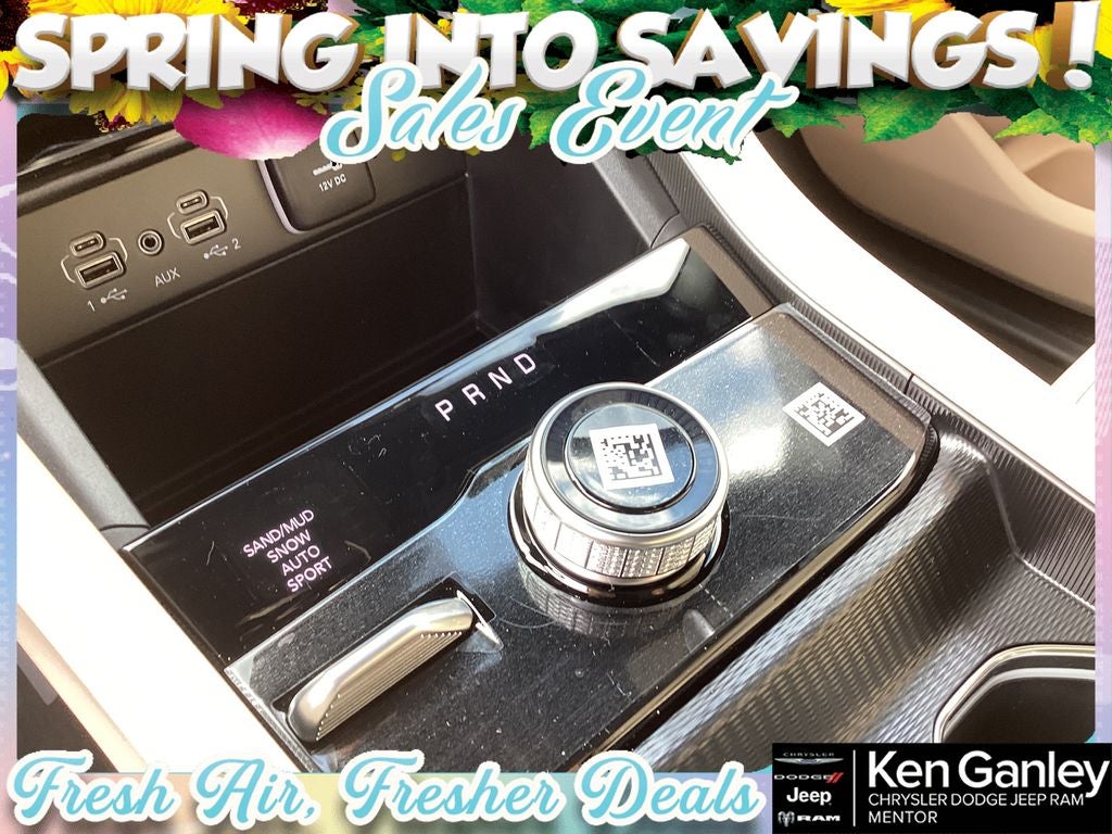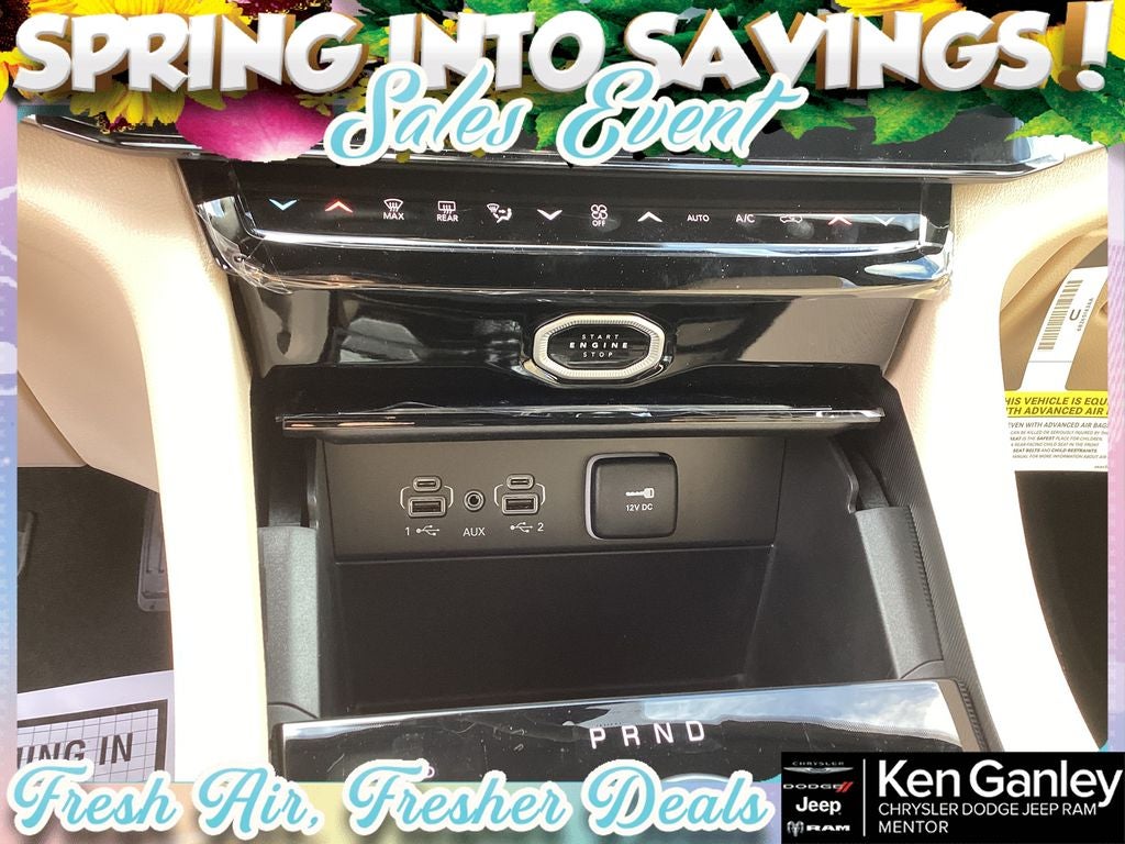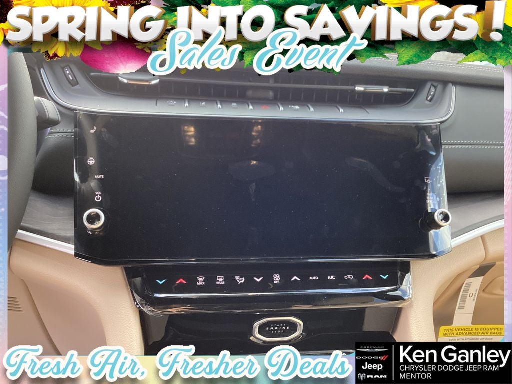 4WD, *Heated steering wheel, *ParkView Rear Back-Up Camera, 10 Speakers, 3.70 Rear Axle Ratio, 4-Wheel Disc Brakes, 4G LTE Wi-Fi Hot Spot, ABS brakes, Active Noise Control System, Air Conditioning, Alloy wheels, AM/FM radio: SiriusXM with 360L, Anti-whiplash front head restraints, Apple CarPlay, AppLink/Apple CarPlay and Android Auto, Audio memory, Auto High-beam Headlights, Automatic temperature control, Auxiliary Battery, Brake assist, Bumpers: body-color, Capri Leatherette Seats, Compass, Connectivity - US/Canada, Delay-off headlights, Disassociated Touchscreen Display, Driver door bin, Driver vanity mirror, Dual front impact airbags, Dual front side impact airbags, Dual-Pane Panoramic Sunroof, Electronic Stability Control, Emergency communication system, For Details, Visit DriveUconnect.com, Four wheel independent suspension, Front anti-roll bar, Front Bucket Seats, Front Center Armrest w/Storage, Front dual zone A/C, Front fog lights, Front License Plate Bracket, Front reading lights, Fully automatic headlights, Garage door transmitter, Global Telematics Box Module (TBM), Gloss Black Exterior Mirrors, Google Android Auto, GPS Antenna Input, Heated door mirrors, Heated Exterior Mirrors, Heated front seats, Heated rear seats, Illuminated entry, Integrated Center Stack Radio, Integrated Voice Command with Bluetooth®, Knee airbag, Low tire pressure warning, Manual Folding Exterior Mirrors, Memory seat, MyFlexCare Service Plan, Navigation System, Normal Duty Suspension, Occupant sensing airbag, Outside temperature display, Overhead airbag, Overhead console, Panic alarm, Passenger door bin, Passenger vanity mirror, Power door mirrors, Power driver seat, Power Liftgate, Power passenger seat, Power steering, Power windows, Quick Order Package 2BE Limited, Radio data system, Radio: Uconnect 5 Nav with 12.3 Display, Rear anti-roll bar, Rear reading lights, Rear window defroster, Rear window wiper, Remote keyless entry, Security system, Speed control, Speed-Sensitive Wipers, Split folding rear seat, Spoiler, Steering wheel mounted audio controls, Tachometer, Telescoping steering wheel, Tilt steering wheel, Traction control, Trip computer, Turn signal indicator mirrors, USB Host Flip, Variably intermittent wipers, Voltmeter, Wheels: 18 x 8.0 Polished/Painted Aluminum, Wheels: 20 x 8.5 Machined/Painted Aluminum, 4WD. PRICING AVAILABLE TO ALL CUSTOMER!!! WE ARE ONE OF OHIO'S LEADING VOLUME DEALERSHIPS COME SEE OUR HUGE SELECTION AND UNMATCHED SAVINGS ONLY AT GANLEY VILLAGE CHRYSLER DODGE JEEP RAM FIAT OF PAINESVILLE, OH 44077.
