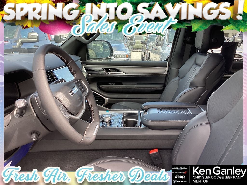 *Heated steering wheel, *Ventilated front seats, 118 MPH Maximum Speed Calibration, 19 Speaker McIntosh Audio System, 2nd Row Manual Window Shades, 3 Panel Sunroof, 3.55 Rear Axle Ratio, 3rd row seats: bench, 4-Wheel Disc Brakes, 9 Speakers, ABS brakes, Air Conditioning, All-Season Floor Mats, Alloy wheels, AM/FM radio: SiriusXM with 360L, Amazon Fire TV Built-in, Anti-whiplash front head restraints, Apple CarPlay/Android Auto, Audio memory, Augmented HUD, Auto Adjust in Reverse Exterior Mirrors, Auto High-beam Headlights, Auto-dimming door mirrors, Auto-Dimming Exterior Driver Mirror, Auto-dimming Rear-View mirror, Auto-leveling suspension, Automatic temperature control, Black Appearance Package, Black Exterior Accents, Brake assist, Bumpers: body-color, Cargo Tray, Cluster 12 TFT Color Display, Compass, Delay-off headlights, Driver door bin, Driver vanity mirror, Driver's Seat Mounted Armrest, Dual front impact airbags, Dual front side impact airbags, Electronic Stability Control, Emergency communication system: Jeep Connect, Exterior Mirrors Approach Lamps, Exterior Mirrors with Memory, Exterior Mirrors with Supplemental Signals, Exterior Parking Camera Rear, Four wheel independent suspension, Front anti-roll bar, Front Bucket Seats, Front Center Armrest w/Storage, Front dual zone A/C, Front fog lights, Front reading lights, Fully automatic headlights, Garage door transmitter, Heated door mirrors, Heated Exterior Mirrors, Heated front seats, Heated rear seats, Illuminated entry, Instrument Panel, Interior Rear Facing Camera, Knee airbag, Leather Trimmed Bucket Seats, Limited Reserve Package, Low tire pressure warning, Luxury Front and Rear Floor Mats, Manufacturer Statement of Origin, Memory seat, MOPAR Interior Protection Package, MyFlexCare Service Plan, Navigation System, Normal Duty Suspension, Occupant sensing airbag, Outside temperature display, Overhead airbag, Overhead console, P and P Park and Unpark Assist with Stop System, Panic alarm, Passenger door bin, Passenger seat mounted armrest, Passenger vanity mirror, Pirelli Brand Tires, Power Deployable Running Boards, Power door mirrors, Power driver seat, Power Liftgate, Power passenger seat, Power steering, Power windows, Quadra-Lift Air Suspension, Quick Order Package 29D Reserve, Radio data system, Radio: Uconnect 5 Nav with 12 Display, Rain sensing wipers, Rear air conditioning, Rear anti-roll bar, Rear reading lights, Rear seat center armrest, Rear Seat Video Group I, Rear window defroster, Rear window wiper, Reclining 3rd row seat, Remote keyless entry, Reversible Carpet/Vinyl Cargo Mat, Seatback Video Screens, Security system, Semi Active Damping, Side Distance Warning, Smartphone as a Key Prep, Speed control, Speed-sensing steering, Speed-Sensitive Wipers, Split folding rear seat, Steering wheel memory, Steering wheel mounted audio controls, Surround View Camera System, Tachometer, Telescoping steering wheel, Tilt steering wheel, Titanium Daylight Opening Upper, Titanium Upper Grille Applique, Traction control, Trip computer, Turn signal indicator mirrors, Variably intermittent wipers, Video USB Port, Voltmeter, Wheels: 20 x 9.0 Machine Face Painted Aluminum, Wheels: 22 x 9 Painted Gloss Black. PRICING AVAILABLE TO ALL CUSTOMER!!! WE ARE ONE OF OHIO'S LEADING VOLUME DEALERSHIPS COME SEE OUR HUGE SELECTION AND UNMATCHED SAVINGS ONLY AT GANLEY VILLAGE CHRYSLER DODGE JEEP RAM FIAT OF PAINESVILLE, OH 44077.