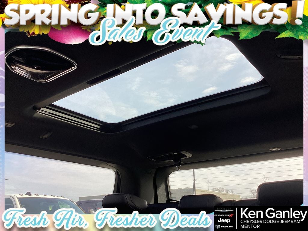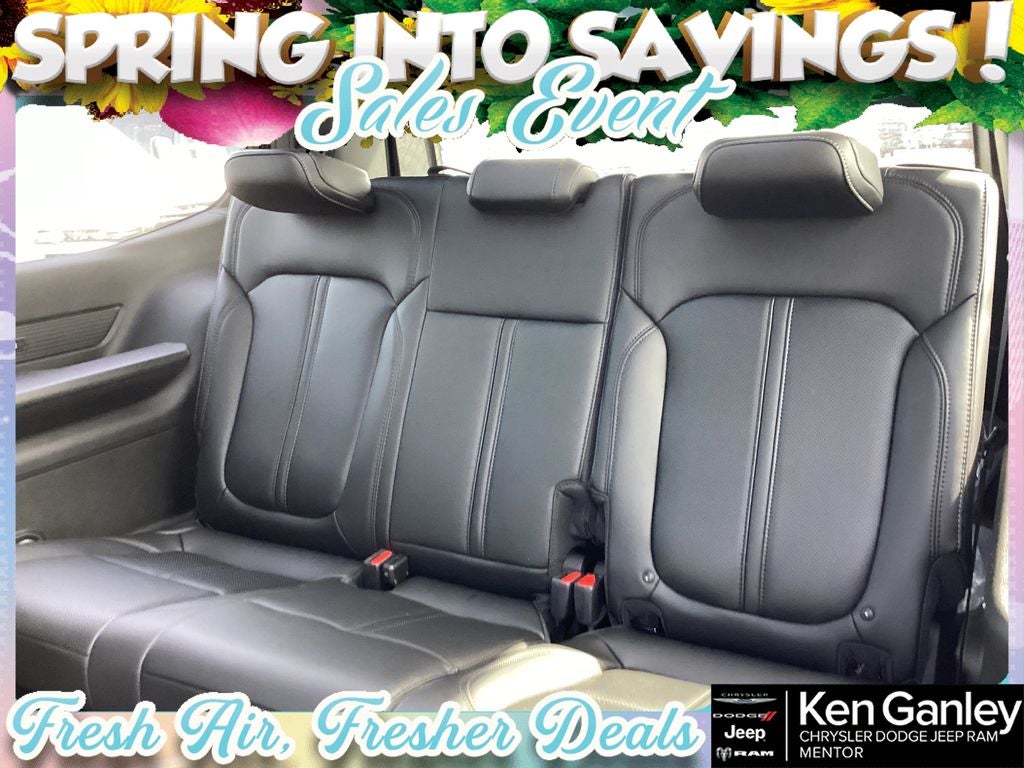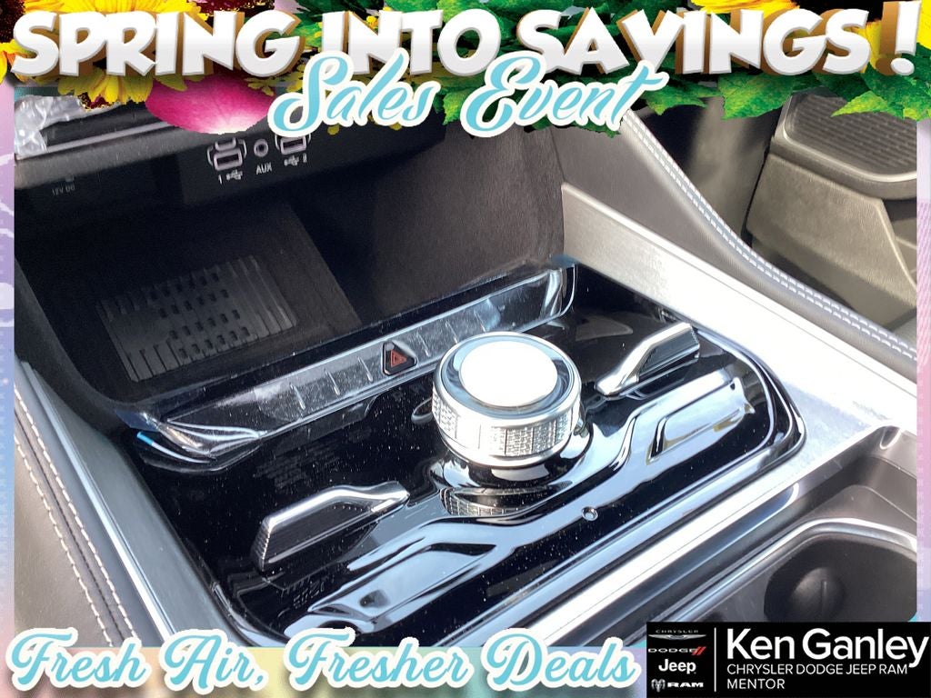 *Heated steering wheel, *Ventilated front seats, 118 Mph Maximum Speed Calibration, 3 Panel Sunroof, 3rd Row 60/40 Power Recline Seat, 3rd row seats: bench, 4-Wheel Disc Brakes, 9 Speakers, ABS brakes, Adjustable Roof Rail Crossbars, Air Conditioning, All-Season Floor Mats, Alloy wheels, AM/FM radio: SiriusXM with 360L, Anti-whiplash front head restraints, Apple CarPlay/Android Auto, Audio memory, Auto Adjust in Reverse Exterior Mirrors, Auto High-beam Headlights, Auto Power Folding Exterior Mirrors, Auto Power Folding Mirrors, Auto-dimming door mirrors, Auto-Dimming Exterior Driver Mirror, Auto-dimming Rear-View mirror, Auto-leveling suspension, Automatic temperature control, Black Exterior Accents, Blind Spot with Trailer Detection, Brake assist, Bumpers: body-color, Cargo Cover, Cargo Tray, Compass, Delay-off headlights, Driver door bin, Driver vanity mirror, Driver's Seat Mounted Armrest, Dual front impact airbags, Dual front side impact airbags, Electronic Rear Limited Slip Differential, Electronic Stability Control, Emergency communication system: Jeep Connect, Exterior Mirrors Approach Lamps, Exterior Mirrors with Memory, Exterior Mirrors with Supplemental Signals, Exterior Parking Camera Rear, Four wheel independent suspension, Front anti-roll bar, Front Bucket Seats, Front Center Armrest w/Storage, Front dual zone A/C, Front fog lights, Front reading lights, Fuel Tank Skid Plate Shield, Fully automatic headlights, Garage door transmitter, Heated door mirrors, Heated Exterior Mirrors, Heated front seats, Illuminated entry, Interior Rear Facing Camera, Knee airbag, Locking in-Vehicle Safe, Low tire pressure warning, Manufacturer Statement of Origin, Memory seat, MyFlexCare Service Plan, Navigation System, Normal Duty Suspension, Occupant sensing airbag, Outside temperature display, Overhead airbag, Overhead console, P and P Park and Unpark Assist with Stop System, Panic alarm, Passenger door bin, Passenger seat mounted armrest, Passenger vanity mirror, Power door mirrors, Power driver seat, Power Liftgate, Power passenger seat, Power steering, Power windows, Quadra-Lift Air Suspension, Quick Order Package 29V Upland, Radio data system, Radio: Uconnect 5 Nav with 12.0 Display, Rain sensing wipers, Rear air conditioning, Rear anti-roll bar, Rear reading lights, Rear seat center armrest, Rear window defroster, Rear window wiper, Reclining 3rd row seat, Remote keyless entry, Removable Rear Tow Hooks, Security system, Selec-Speed Control, Semi Active Damping, Side Distance Warning, Speed control, Speed-sensing steering, Speed-Sensitive Wipers, Split folding rear seat, Steering wheel memory, Steering wheel mounted audio controls, Surround View Camera System, Tachometer, Telescoping steering wheel, Tilt steering wheel, Titanium Daylight Opening Upper, Titanium Upper Grille Applique, Traction control, Trailer Brake Control, Trailer Hitch Zoom, Trailer Light Monitoring, Trailer Tire Pressure Monitoring System, Trip computer, Turn signal indicator mirrors, Two Tone Paint Group, Upland Package, Vapor Tow Hooks, Variably intermittent wipers, Voltmeter, Wheels: 20 x 9 Aluminum Painted, Wheels: 20 x 9 Machine Face Painted Aluminum. PRICING AVAILABLE TO ALL CUSTOMER!!! WE ARE ONE OF OHIO'S LEADING VOLUME DEALERSHIPS COME SEE OUR HUGE SELECTION AND UNMATCHED SAVINGS ONLY AT GANLEY VILLAGE CHRYSLER DODGE JEEP RAM FIAT OF PAINESVILLE, OH 44077.