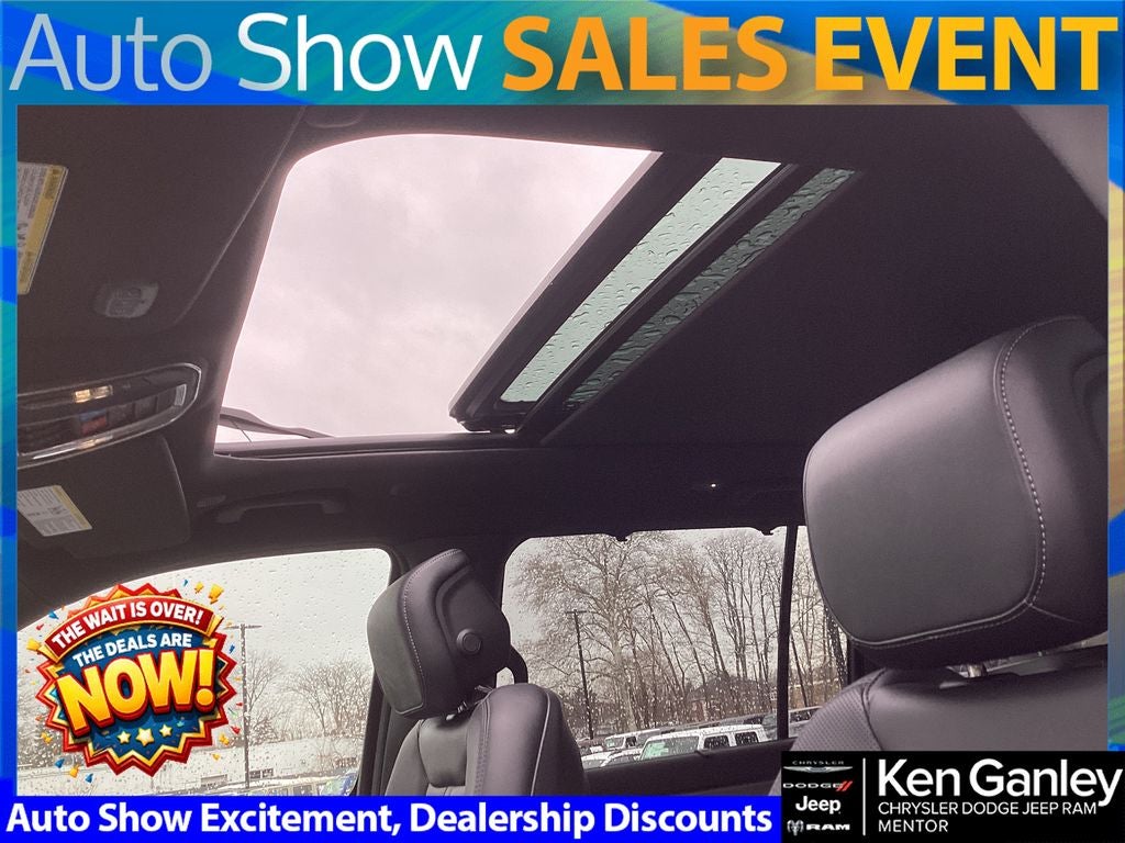 *Heated steering wheel, *Ventilated front seats, 118 MPH Maximum Speed Calibration, 19 Speaker McIntosh Audio System, 2nd Row Manual Window Shades, 3 Panel Sunroof, 3.55 Rear Axle Ratio, 3rd row seats: bench, 4-Wheel Disc Brakes, 9 Speakers, ABS brakes, Air Conditioning, All-Season Floor Mats, Alloy wheels, AM/FM radio: SiriusXM with 360L, Anti-whiplash front head restraints, Apple CarPlay/Android Auto, Audio memory, Auto Adjust in Reverse Exterior Mirrors, Auto High-beam Headlights, Auto-dimming door mirrors, Auto-Dimming Exterior Driver Mirror, Auto-dimming Rear-View mirror, Auto-leveling suspension, Automatic temperature control, Black Appearance Package, Black Exterior Accents, Brake assist, Bumpers: body-color, Cargo Tray, Cluster 12 TFT Color Display, Compass, Delay-off headlights, Driver door bin, Driver vanity mirror, Driver's Seat Mounted Armrest, Dual front impact airbags, Dual front side impact airbags, Electronic Stability Control, Emergency communication system: Jeep Connect, Exterior Mirrors Approach Lamps, Exterior Mirrors with Memory, Exterior Mirrors with Supplemental Signals, Exterior Parking Camera Rear, Four wheel independent suspension, Front anti-roll bar, Front Bucket Seats, Front Center Armrest w/Storage, Front dual zone A/C, Front fog lights, Front reading lights, Fully automatic headlights, Garage door transmitter, Heads-Up Display, Heated door mirrors, Heated Exterior Mirrors, Heated front seats, Heated rear seats, Illuminated entry, Instrument Panel, Interior Rear Facing Camera, Knee airbag, Leather Trimmed Bucket Seats, Limited Reserve Package, Low tire pressure warning, Luxury Front and Rear Floor Mats, Manufacturer Statement of Origin, Memory seat, MOPAR Interior Protection Package, MyFlexCare Service Plan, Navigation System, Normal Duty Suspension, Occupant sensing airbag, Outside temperature display, Overhead airbag, Overhead console, P and P Park and Unpark Assist with Stop System, Panic alarm, Passenger door bin, Passenger seat mounted armrest, Passenger vanity mirror, Power Deployable Running Boards, Power door mirrors, Power driver seat, Power Liftgate, Power passenger seat, Power steering, Power windows, Quadra-Lift Air Suspension, Quick Order Package 29D Reserve, Radio data system, Radio: Uconnect 5 Nav with 12 Display, Rain sensing wipers, Rear air conditioning, Rear anti-roll bar, Rear reading lights, Rear seat center armrest, Rear window defroster, Rear window wiper, Reclining 3rd row seat, Remote keyless entry, Reversible Carpet/Vinyl Cargo Mat, Security system, Semi Active Damping, Side Distance Warning, Smartphone as a Key Prep, Speed control, Speed-sensing steering, Speed-Sensitive Wipers, Split folding rear seat, Steering wheel memory, Steering wheel mounted audio controls, Surround View Camera System, Tachometer, Telescoping steering wheel, Tilt steering wheel, Titanium Daylight Opening Upper, Titanium Upper Grille Applique, Traction control, Trip computer, Turn signal indicator mirrors, Variably intermittent wipers, Voltmeter, Wheels: 20 x 9.0 Machine Face Painted Aluminum, Wheels: 22 x 9 Painted Gloss Black. PRICING AVAILABLE TO ALL CUSTOMER!!! WE ARE ONE OF OHIO'S LEADING VOLUME DEALERSHIPS COME SEE OUR HUGE SELECTION AND UNMATCHED SAVINGS ONLY AT GANLEY VILLAGE CHRYSLER DODGE JEEP RAM FIAT OF PAINESVILLE, OH 44077.