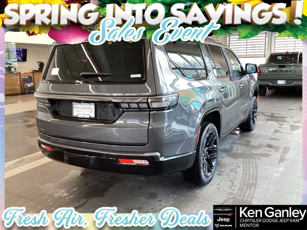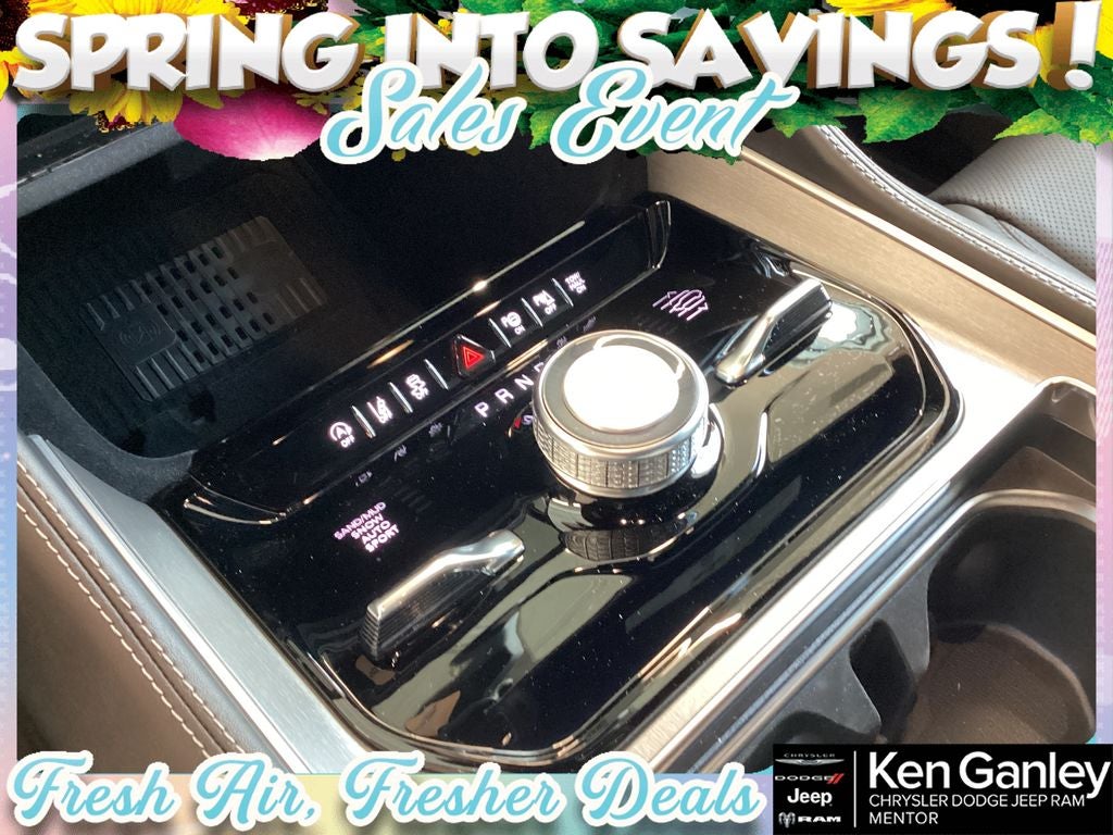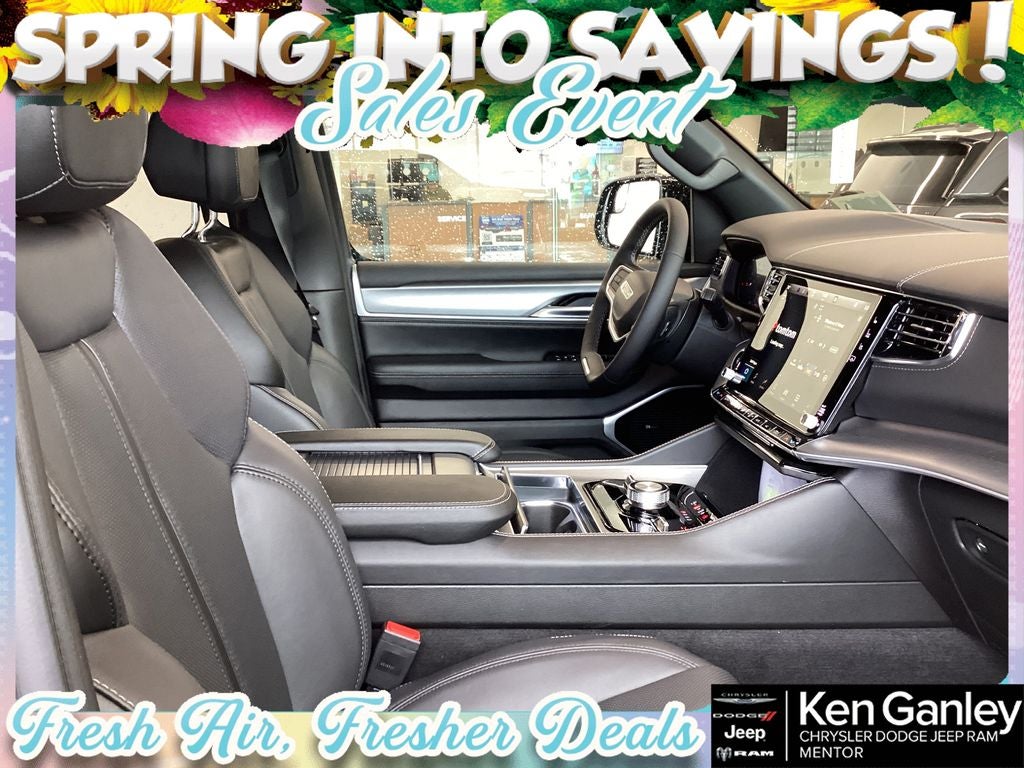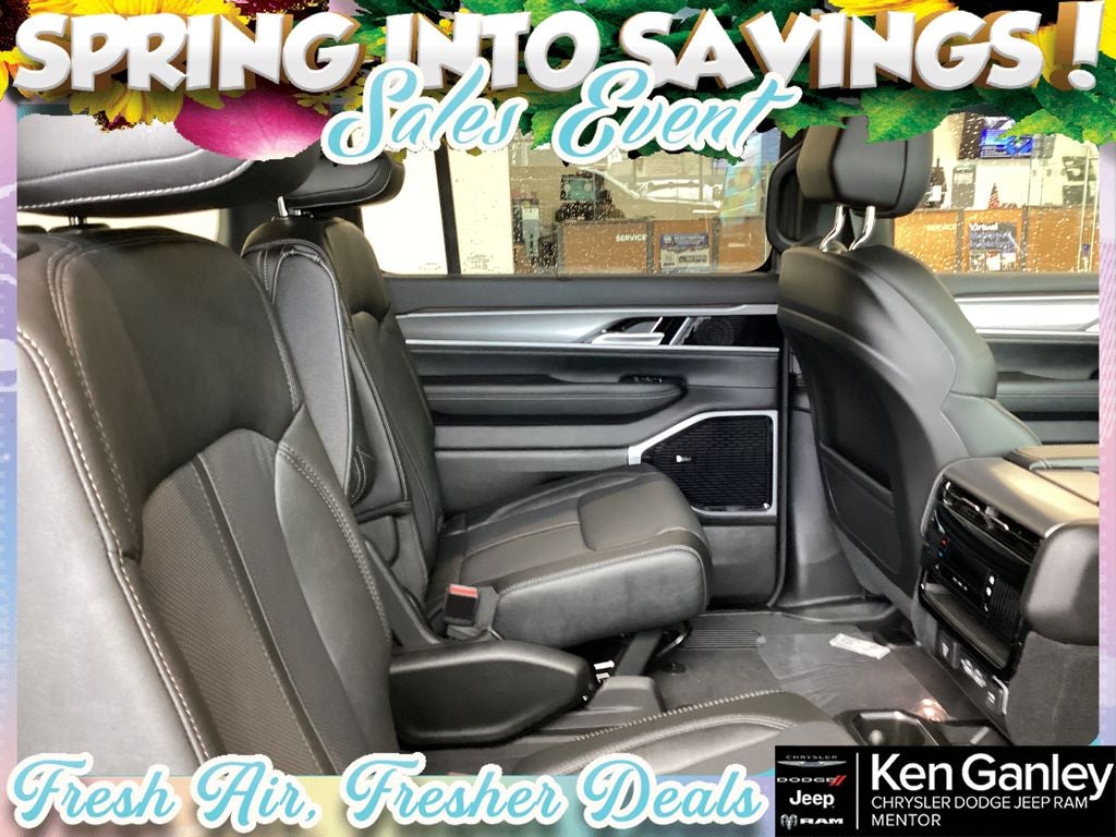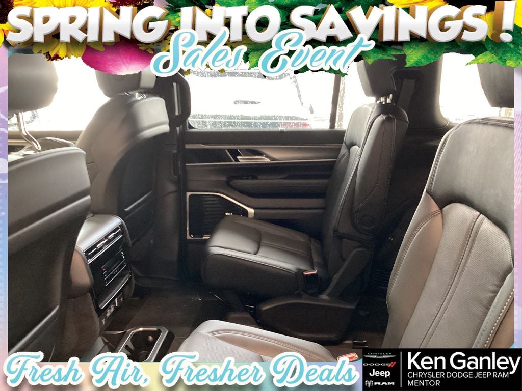 *Heated steering wheel, *Ventilated front seats, 118 Mph Maximum Speed Calibration, 19 Speaker McIntosh Audio System, 2nd Row Manual Window Shades, 3 Panel Sunroof, 3.55 Rear Axle Ratio, 3rd row seats: bench, 4-Wheel Disc Brakes, 9 Speakers, ABS brakes, Air Conditioning, Alloy wheels, AM/FM radio: SiriusXM with 360L, Anti-whiplash front head restraints, Apple CarPlay/Android Auto, Audio memory, Augmented HUD, Auto Adjust in Reverse Exterior Mirrors, Auto High-beam Headlights, Auto-dimming door mirrors, Auto-Dimming Exterior Driver Mirror, Auto-dimming Rear-View mirror, Auto-leveling suspension, Automatic temperature control, Black Appearance Package, Black Exterior Accents, Brake assist, Bumpers: body-color, Cargo Cover, Cluster 12 TFT Color Display, Compass, Delay-off headlights, Driver door bin, Driver vanity mirror, Driver's Seat Mounted Armrest, Dual front impact airbags, Dual front side impact airbags, Electronic Stability Control, Emergency communication system: Jeep Connect, Exterior Mirrors Approach Lamps, Exterior Mirrors with Memory, Exterior Mirrors with Supplemental Signals, Exterior Parking Camera Rear, Four wheel independent suspension, Front anti-roll bar, Front Bucket Seats, Front Center Armrest w/Storage, Front dual zone A/C, Front fog lights, Front reading lights, Fully automatic headlights, Garage door transmitter, Heated door mirrors, Heated Exterior Mirrors, Heated front seats, Heated rear seats, Illuminated entry, Instrument Panel, Interior Rear Facing Camera, Knee airbag, Leather Trimmed Bucket Seats, Limited Reserve Package, Low tire pressure warning, Luxury Front and Rear Floor Mats, Manufacturer Statement of Origin, Memory seat, MyFlexCare Service Plan, Navigation System, Normal Duty Suspension, Occupant sensing airbag, Outside temperature display, Overhead airbag, Overhead console, P and P Park and Unpark Assist with Stop System, Panic alarm, Passenger door bin, Passenger seat mounted armrest, Passenger vanity mirror, Power Deployable Running Boards, Power door mirrors, Power driver seat, Power Liftgate, Power passenger seat, Power steering, Power windows, Quadra-Lift Air Suspension, Quick Order Package 29D Reserve, Radio data system, Radio: Uconnect 5 Nav with 12.0 Display, Rain sensing wipers, Rear air conditioning, Rear anti-roll bar, Rear reading lights, Rear seat center armrest, Rear window defroster, Rear window wiper, Reclining 3rd row seat, Remote keyless entry, Reversible Carpet/Vinyl Cargo Mat, Security system, Semi Active Damping, Side Distance Warning, Smartphone as a Key Prep, Speed control, Speed-sensing steering, Speed-Sensitive Wipers, Split folding rear seat, Steering wheel memory, Steering wheel mounted audio controls, Surround View Camera System, Tachometer, Telescoping steering wheel, Tilt steering wheel, Titanium Daylight Opening Upper, Titanium Upper Grille Applique, Traction control, Trip computer, Turn signal indicator mirrors, Variably intermittent wipers, Ventilated rear seats, Voltmeter, Wheels: 20 x 9 Aluminum Painted, Wheels: 22 x 9 Painted Gloss Black. PRICING AVAILABLE TO ALL CUSTOMER!!! WE ARE ONE OF OHIO'S LEADING VOLUME DEALERSHIPS COME SEE OUR HUGE SELECTION AND UNMATCHED SAVINGS ONLY AT GANLEY VILLAGE CHRYSLER DODGE JEEP RAM FIAT OF PAINESVILLE, OH 44077.