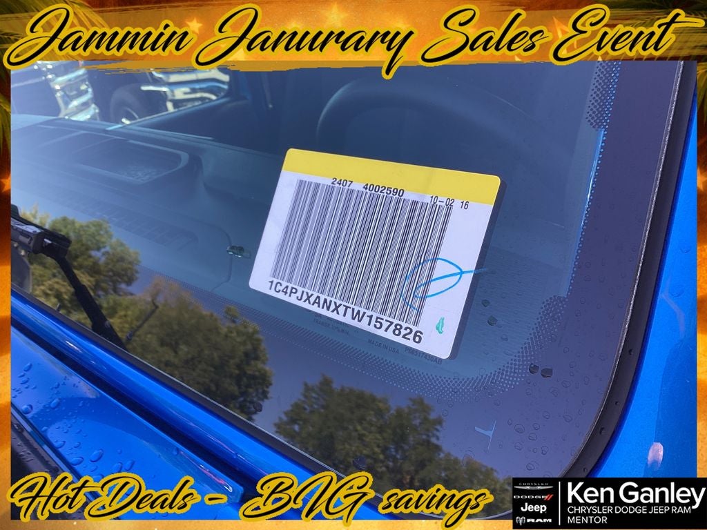 *ParkView Rear Back-Up Camera, 12.3 Touchscreen Display, 3.45 Overall Top Gear Ratio, 4-Wheel Disc Brakes, 4G LTE Wi-Fi Hot Spot, 8 Speakers, ABS brakes, Air Conditioning, AM/FM radio: SiriusXM with 360L, Apple CarPlay, Apple CarPlay/Android Auto, Aux Battery, Black 3-Piece Hard Top, Brake assist, Cloth Low-Back Bucket Seats, Compass, Connectivity - US/Canada, Deep Tint Sunscreen Windows, Delay-off headlights, Driver door bin, Driver vanity mirror, Dual front impact airbags, Dual front side impact airbags, Electronic Stability Control, For More Info, Call 800-643-2112, Freedom Panel Storage Bag, Front anti-roll bar, Front Bucket Seats, Front Center Armrest w/Storage, Front fog lights, Front reading lights, Google Android Auto, Illuminated entry, Integrated Center Stack Radio, Integrated roll-over protection, Low tire pressure warning, MOPAR All-Weather Floor Mats, Myflexcare Service Plan, Non-Lock Fuel Cap Without Discriminator, Normal Duty Suspension, Occupant sensing airbag, Outside temperature display, Overhead airbag, Panic alarm, Passenger door bin, Passenger vanity mirror, Power steering, Power windows, Quick Order Package 22B Sport, Radio data system, Radio: Uconnect 5 with 12.3 Display, Rear anti-roll bar, Rear reading lights, Rear Window Defroster, Rear Window Wiper/Washer, Remote keyless entry, SiriusXM Radio Service, SiriusXM with 360L, Speed control, Steering wheel mounted audio controls, Stop-Start Dual Battery System, Tachometer, Telescoping steering wheel, Tilt steering wheel, Traction control, Trip computer, Variably intermittent wipers, Wheels: 17 x 7.5 Black Steel Styled. PRICING AVAILABLE TO ALL CUSTOMER!!! WE ARE ONE OF OHIO'S LEADING VOLUME DEALERSHIPS COME SEE OUR HUGE SELECTION AND UNMATCHED SAVINGS ONLY AT GANLEY VILLAGE CHRYSLER DODGE JEEP RAM FIAT OF PAINESVILLE, OH 44077.
