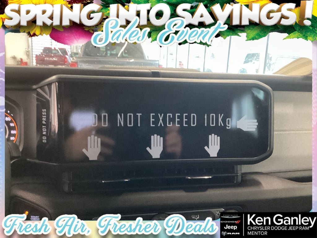 *ParkView Rear Back-Up Camera, 12.3 Touchscreen Display, 2-Door Passive Entry, Front Door Locks, 4-Wheel Disc Brakes, 4-Wheel Drive Swing Gate Decal, 4G LTE Wi-Fi Hot Spot, 7 and 4 Pin Wiring Harness, 8 Speakers, ABS brakes, Advanced Brake Assist, Air Conditioning, Air Conditioning with Auto Temp Control, Air Filtering, AM/FM radio: SiriusXM with 360L, Apple CarPlay, Apple CarPlay/Android Auto, Automatic Headlamps, Aux Battery, Auxiliary Switches, Black 3-Piece Hard Top, Black Grille with Gloss Black Rings, Brake assist, Class II Receiver Hitch, Cloth Low-Back Bucket Seats, Cluster 7.0 TFT Color Display, Compass, Connectivity - US/Canada, Convenience Group, Conventional Differential Front Axle, Corning Gorilla Glass, Dana M210 Wide HD Tube Front Axle, Dana M220 Wide Rear Axle, Daytime Running Lamps LED Accents, Deep Tint Sunscreen Windows, Delay-off headlights, Driver door bin, Driver vanity mirror, Dual front impact airbags, Dual front side impact airbags, E-Locker Rear Axle, Electronic Stability Control, Emergency/Assistance Call, Enhanced Adaptive Cruise Control, For More Info, Call 800-643-2112, Freedom Panel Storage Bag, Front anti-roll bar, Front Bucket Seats, Front Center Armrest w/Storage, Front fog lights, Front LED Fog Lamps, Front reading lights, Full Speed Forward Collision Warning Plus, Google Android Auto, Heated Front Seats, Heated Steering Wheel, Illuminated entry, Increased Travel Export Tuned Suspension, Injection Molded Black Rear Bumper, Integrated Center Stack Radio, Integrated roll-over protection, LED Premium Reflector Headlamps, Low tire pressure warning, Mold in Color Bumper with Gloss Black, Molded in Color Rubicon Highline Flare, MOPAR All-Weather Floor Mats, Myflexcare Service Plan, Non-Lock Fuel Cap Without Discriminator, Normal Duty Suspension, Occupant sensing airbag, Off-Road Plus Mode, Outside temperature display, Overhead airbag, Panic alarm, Passenger door bin, Passenger vanity mirror, Power Dome Dual Vented Hood, Power Heated Mirrors, Power steering, Power windows, Premium Wrapped Steering Wheel, Quick Order Package 23W Willys, Radio data system, Radio: Uconnect 5 with 12.3 Display, Rear anti-roll bar, Rear reading lights, Rear Window Defroster, Rear Window Wiper/Washer, Remote keyless entry, Security Alarm, SiriusXM Radio Service, SiriusXM with 360L, Speed control, Steel Power Dome Hood Package, Steering wheel mounted audio controls, Stop-Start Dual Battery System, Sun Visors with Illuminated Vanity Mirrors, Tachometer, Telescoping steering wheel, Tilt steering wheel, Traction control, Trip computer, Universal Garage Door Opener, Variably intermittent wipers, Wheels: 17 x 7.5 Black Steel Styled, Wheels: 17 x 7.5 Painted Black, Willys Hood Decal. PRICING AVAILABLE TO ALL CUSTOMER!!! WE ARE ONE OF OHIO'S LEADING VOLUME DEALERSHIPS COME SEE OUR HUGE SELECTION AND UNMATCHED SAVINGS ONLY AT GANLEY VILLAGE CHRYSLER DODGE JEEP RAM FIAT OF PAINESVILLE, OH 44077.