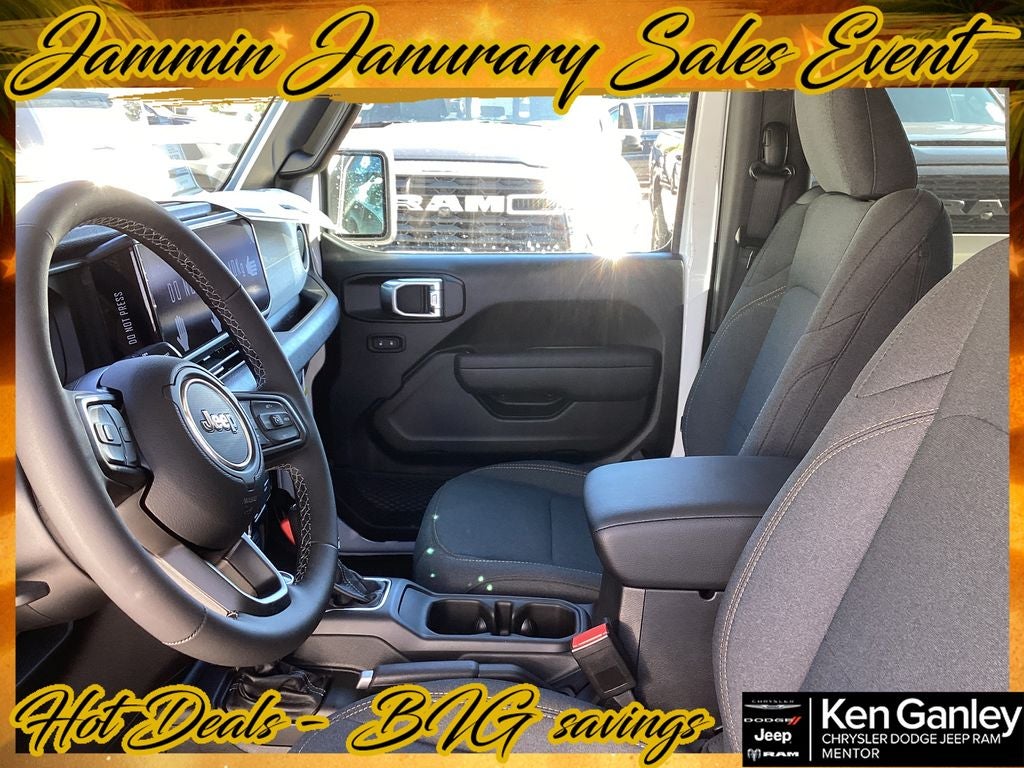 *ParkView Rear Back-Up Camera, 12.3 Touchscreen Display, 2-Door Passive Entry, Front Door Locks, 4-Wheel Disc Brakes, 4-Wheel Drive Swing Gate Decal, 4G LTE Wi-Fi Hot Spot, 7 and 4 Pin Wiring Harness, 8 Speakers, ABS brakes, Advanced Brake Assist, Air Conditioning, Air Conditioning with Auto Temp Control, Air Filtering, AM/FM radio: SiriusXM with 360L, Apple CarPlay, Apple CarPlay/Android Auto, Automatic Headlamps, Aux Battery, Auxiliary Switches, Black 3-Piece Hard Top, Black Grille with Gloss Black Rings, Brake assist, Class II Receiver Hitch, Cloth Low-Back Bucket Seats, Cluster 7.0 TFT Color Display, Compass, Connectivity - US/Canada, Convenience Group, Conventional Differential Front Axle, Corning Gorilla Glass, Dana M210 Wide HD Tube Front Axle, Dana M220 Wide Rear Axle, Daytime Running Lamps LED Accents, Deep Tint Sunscreen Windows, Delay-off headlights, Driver door bin, Driver vanity mirror, Dual front impact airbags, Dual front side impact airbags, E-Locker Rear Axle, Electronic Stability Control, Emergency/Assistance Call, Enhanced Adaptive Cruise Control, For More Info, Call 800-643-2112, Freedom Panel Storage Bag, Front anti-roll bar, Front Bucket Seats, Front Center Armrest w/Storage, Front fog lights, Front LED Fog Lamps, Front reading lights, Full Speed Forward Collision Warning Plus, Google Android Auto, Heated Front Seats, Heated Steering Wheel, Illuminated entry, Injection Molded Black Rear Bumper, Integrated Center Stack Radio, Integrated roll-over protection, LED Premium Reflector Headlamps, Low tire pressure warning, Mold in Color Bumper with Gloss Black, Molded in Color Rubicon Highline Flare, MOPAR All-Weather Floor Mats, Myflexcare Service Plan, Non-Lock Fuel Cap Without Discriminator, Normal Duty Suspension, Occupant sensing airbag, Off-Road Plus Mode, Outside temperature display, Overhead airbag, Panic alarm, Passenger door bin, Passenger vanity mirror, Power Dome Dual Vented Hood, Power Heated Mirrors, Power steering, Power windows, Premium Wrapped Steering Wheel, Quick Order Package 22W Willys, Radio data system, Radio: Uconnect 5 with 12.3 Display, Rear anti-roll bar, Rear reading lights, Rear Window Defroster, Rear Window Wiper/Washer, Remote keyless entry, Security Alarm, SiriusXM Radio Service, SiriusXM with 360L, Speed control, Steel Power Dome Hood Package, Steering wheel mounted audio controls, Stop-Start Dual Battery System, Sun Visors with Illuminated Vanity Mirrors, Tachometer, Telescoping steering wheel, Tilt steering wheel, Traction control, Trip computer, Universal Garage Door Opener, Variably intermittent wipers, Wheels: 17 x 7.5 Black Steel Styled, Wheels: 17 x 7.5 Painted Black, Willy's Suspension, Willys Hood Decal. PRICING AVAILABLE TO ALL CUSTOMER!!! WE ARE ONE OF OHIO'S LEADING VOLUME DEALERSHIPS COME SEE OUR HUGE SELECTION AND UNMATCHED SAVINGS ONLY AT GANLEY VILLAGE CHRYSLER DODGE JEEP RAM FIAT OF PAINESVILLE, OH 44077.