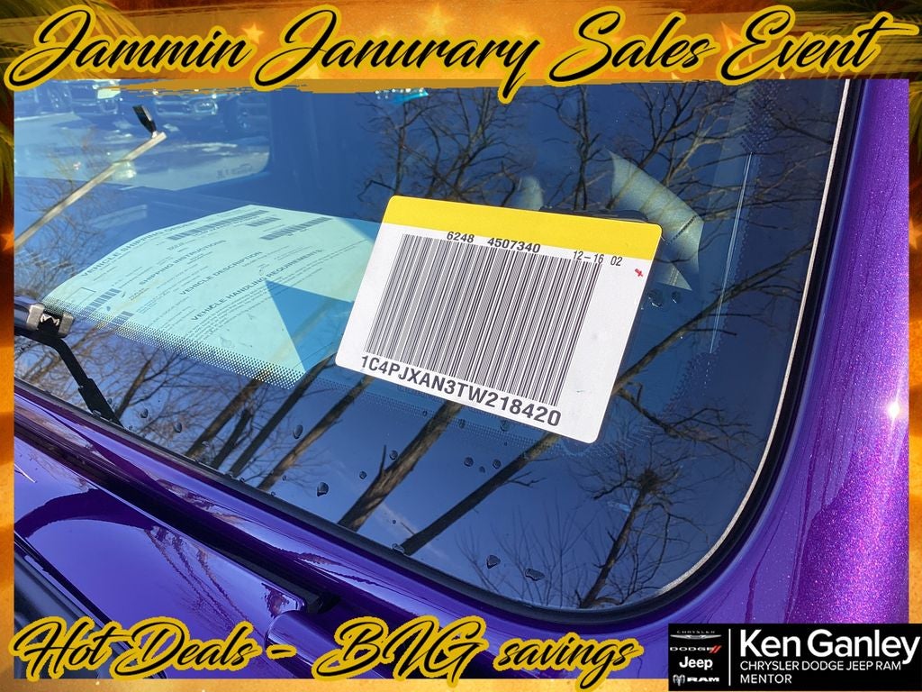*ParkView Rear Back-Up Camera, 12.3 Touchscreen Display, 2-Door Passive Entry, Front Door Locks, 4-Wheel Disc Brakes, 4-Wheel Drive Swing Gate Decal, 4G LTE Wi-Fi Hot Spot, 7 and 4 Pin Wiring Harness, 8 Speakers, ABS brakes, Advanced Brake Assist, Air Conditioning, Air Conditioning with Auto Temp Control, Air Filtering, AM/FM radio: SiriusXM with 360L, Apple CarPlay, Apple CarPlay/Android Auto, Automatic Headlamps, Aux Battery, Auxiliary Switches, Black 3-Piece Hard Top, Black Grille with Gloss Black Rings, Brake assist, Class II Receiver Hitch, Cloth Low-Back Bucket Seats, Cluster 7.0 TFT Color Display, Compass, Connectivity - US/Canada, Convenience Group, Conventional Differential Front Axle, Corning Gorilla Glass, Dana M210 Wide HD Tube Front Axle, Dana M220 Wide Rear Axle, Daytime Running Lamps LED Accents, Deep Tint Sunscreen Windows, Delay-off headlights, Driver door bin, Driver vanity mirror, Dual front impact airbags, Dual front side impact airbags, E-Locker Rear Axle, Electronic Stability Control, Emergency/Assistance Call, Enhanced Adaptive Cruise Control, For More Info, Call 800-643-2112, Freedom Panel Storage Bag, Front anti-roll bar, Front Bucket Seats, Front Center Armrest w/Storage, Front fog lights, Front LED Fog Lamps, Front reading lights, Full Speed Forward Collision Warning Plus, Google Android Auto, Heated Front Seats, Heated Steering Wheel, Illuminated entry, Injection Molded Black Rear Bumper, Integrated Center Stack Radio, Integrated roll-over protection, LED Premium Reflector Headlamps, Low tire pressure warning, Mold in Color Bumper with Gloss Black, Molded in Color Rubicon Highline Flare, MOPAR All-Weather Floor Mats, Myflexcare Service Plan, Non-Lock Fuel Cap Without Discriminator, Normal Duty Suspension, Occupant sensing airbag, Off-Road Plus Mode, Outside temperature display, Overhead airbag, Panic alarm, Passenger door bin, Passenger vanity mirror, Power Dome Dual Vented Hood, Power Heated Mirrors, Power steering, Power windows, Premium Wrapped Steering Wheel, Quick Order Package 22W Willys, Radio data system, Radio: Uconnect 5 with 12.3 Display, Rear anti-roll bar, Rear reading lights, Rear Window Defroster, Rear Window Wiper/Washer, Remote keyless entry, Security Alarm, SiriusXM Radio Service, SiriusXM with 360L, Speed control, Steel Power Dome Hood Package, Steering wheel mounted audio controls, Stop-Start Dual Battery System, Sun Visors with Illuminated Vanity Mirrors, Tachometer, Telescoping steering wheel, Tilt steering wheel, Traction control, Trip computer, Universal Garage Door Opener, Variably intermittent wipers, Wheels: 17 x 7.5 Black Steel Styled, Wheels: 17 x 7.5 Painted Black, Willy's Suspension, Willys Hood Decal. PRICING AVAILABLE TO ALL CUSTOMER!!! WE ARE ONE OF OHIO'S LEADING VOLUME DEALERSHIPS COME SEE OUR HUGE SELECTION AND UNMATCHED SAVINGS ONLY AT GANLEY VILLAGE CHRYSLER DODGE JEEP RAM FIAT OF PAINESVILLE, OH 44077.