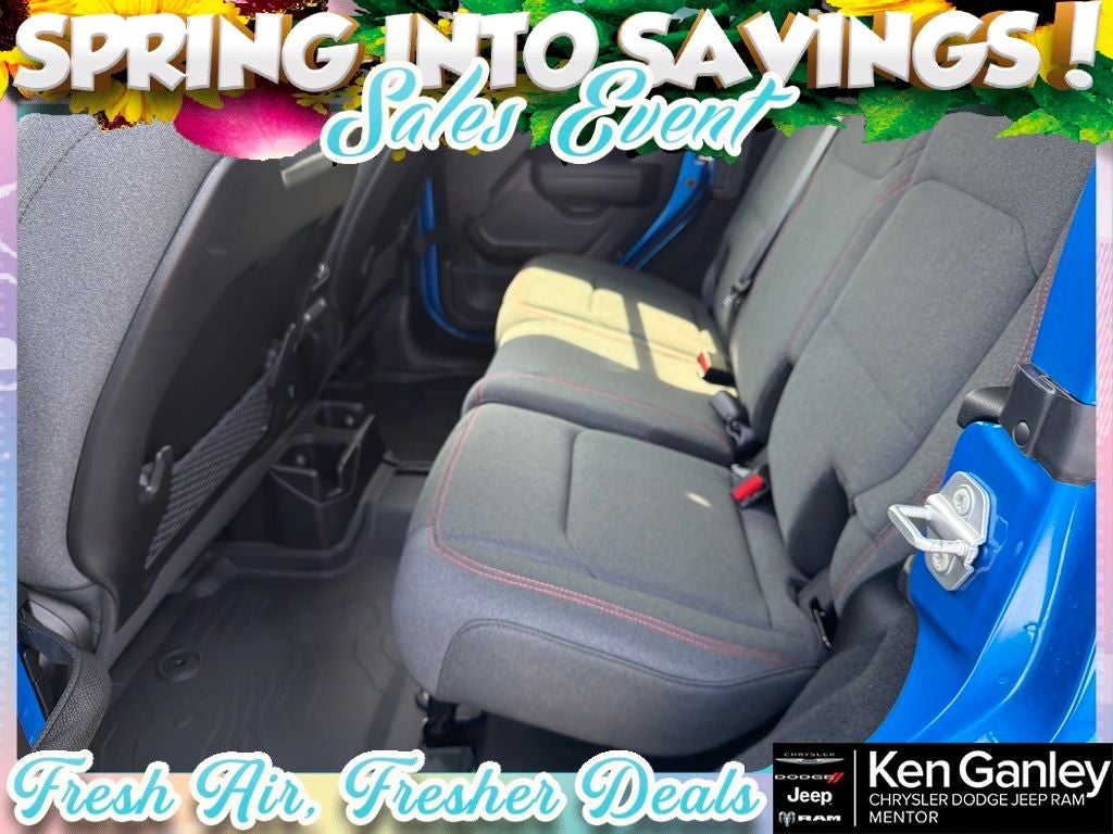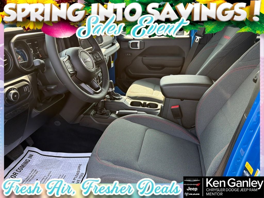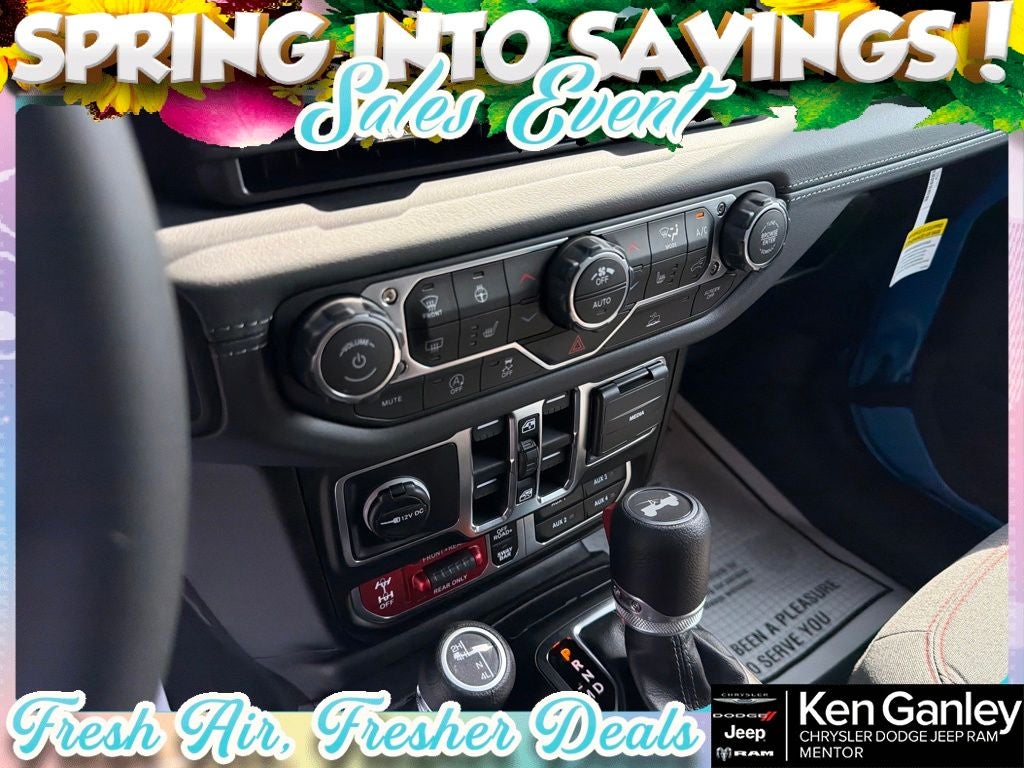 *ParkView Rear Back-Up Camera, 12.3 Touchscreen Display, 4-Wheel Disc Brakes, 4.10 Rear Axle Ratio, 4G LTE Wi-Fi Hot Spot, 8 Speakers, ABS brakes, Air Conditioning, Alloy wheels, AM/FM radio: SiriusXM with 360L, Apple CarPlay, Apple CarPlay/Android Auto, Automatic temperature control, Aux Battery, Auxiliary Switches, Body Color Rubicon Highline Flare, Brake assist, Class II Receiver Hitch, Cloth Low-Back Bucket Seats, Compass, Connectivity - US/Canada, Convenience Group, Delay-off headlights, Driver door bin, Driver vanity mirror, Dual front impact airbags, Dual front side impact airbags, Electronic Stability Control, Emergency communication system: Jeep Connect, For More Info, Call 800-643-2112, Front anti-roll bar, Front Bucket Seats, Front Center Armrest w/Storage, Front dual zone A/C, Front fog lights, Front License Plate Bracket, Front reading lights, Fully automatic headlights, Google Android Auto, Heated door mirrors, Heated Front Seats, Heated Steering Wheel, Illuminated entry, Integrated Center Stack Radio, Integrated roll-over protection, Low tire pressure warning, MOPAR All-Weather Floor Mats, Myflexcare Service Plan, Non-Lock Fuel Cap Without Discriminator, Occupant sensing airbag, Outside temperature display, Overhead airbag, Panic alarm, Passenger door bin, Passenger vanity mirror, Performance Hood, Performance Suspension, Power door mirrors, Power steering, Power Top Quarter Window Storage Bag, Power windows, Quick Order Package 22R Rubicon, Radio data system, Radio: Uconnect 5 with 12.3 Display, Rear anti-roll bar, Rear reading lights, Rear Window Defroster, Rear Window Wiper/Washer, Remote keyless entry, Removable Rear Quarter Windows, Security system, SiriusXM Radio Service, SiriusXM with 360L, Sky One-Touch Power Top, Speed control, Split folding rear seat, Steel Performance Hood Package, Steering wheel mounted audio controls, Stop-Start Dual Battery System, Tachometer, Telescoping steering wheel, Tilt steering wheel, Traction control, Trip computer, Universal Garage Door Opener, Variably intermittent wipers, Voltmeter, Wheels: 17 x 7.5 Machined/Painted Black. PRICING AVAILABLE TO ALL CUSTOMER!!! WE ARE ONE OF OHIO'S LEADING VOLUME DEALERSHIPS COME SEE OUR HUGE SELECTION AND UNMATCHED SAVINGS ONLY AT GANLEY VILLAGE CHRYSLER DODGE JEEP RAM FIAT OF PAINESVILLE, OH 44077.