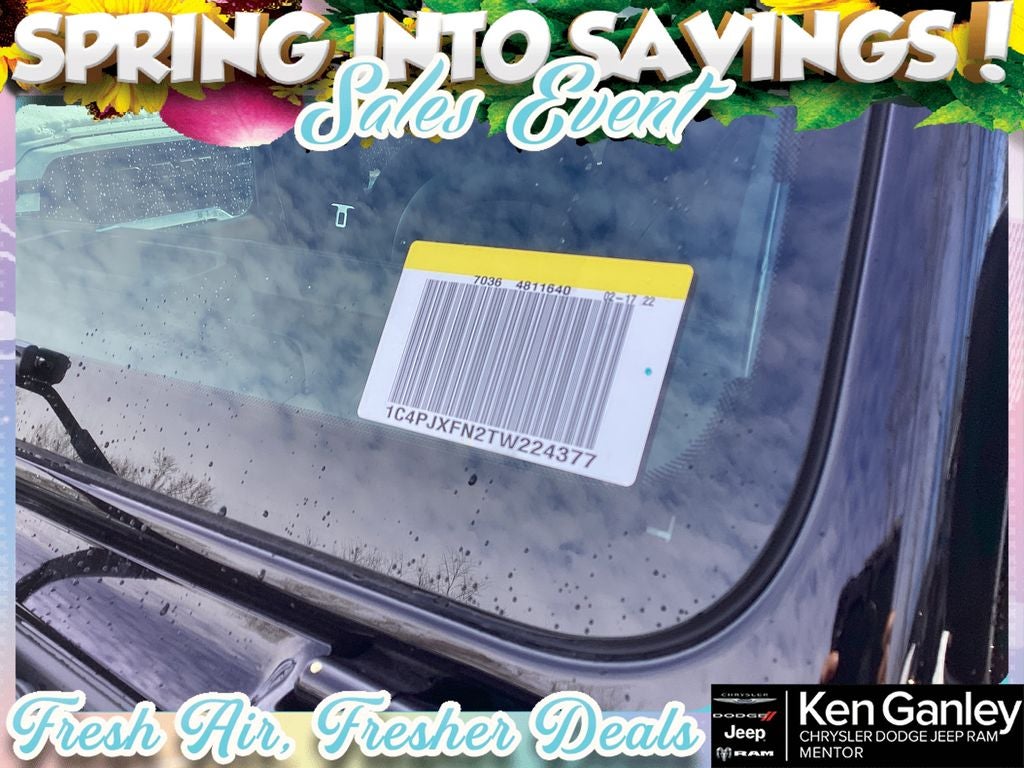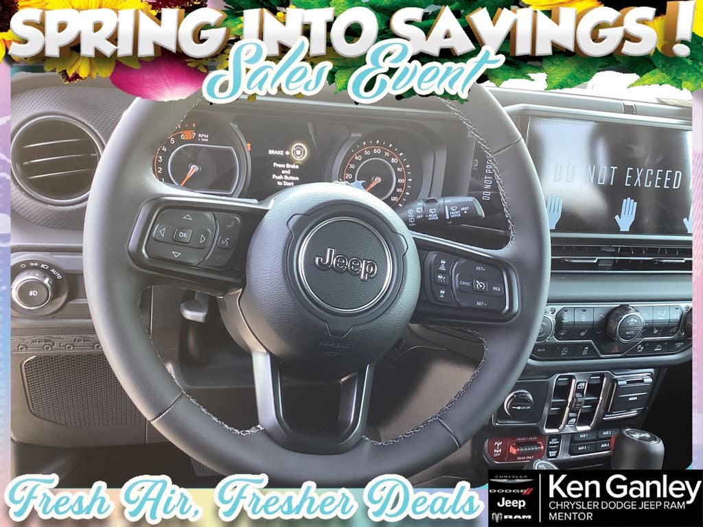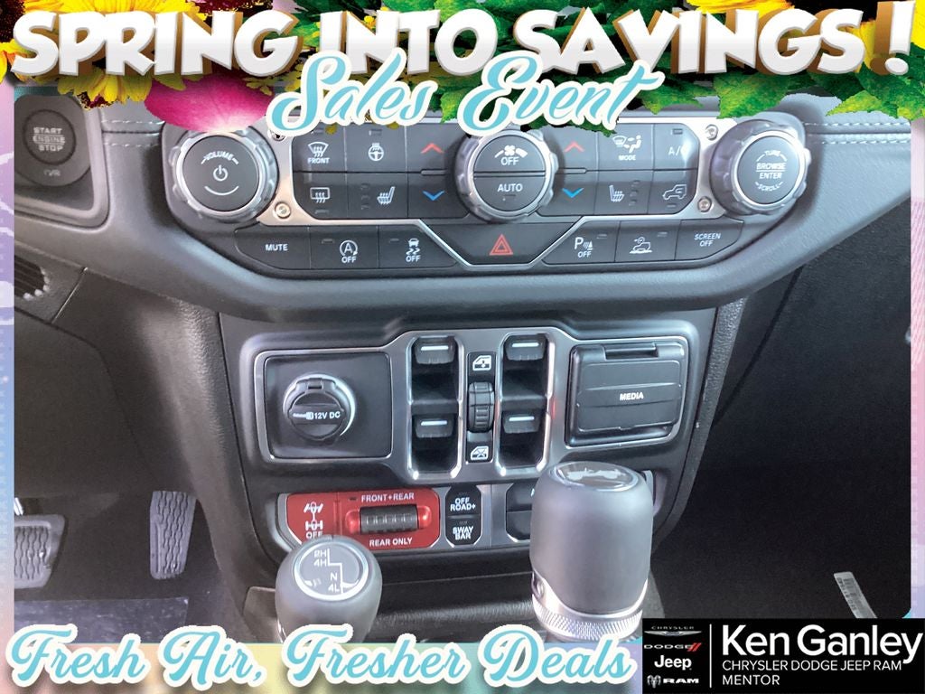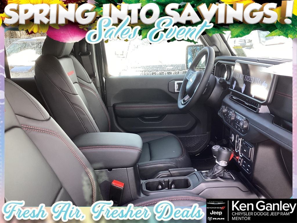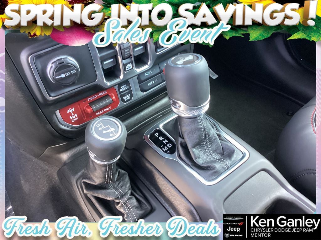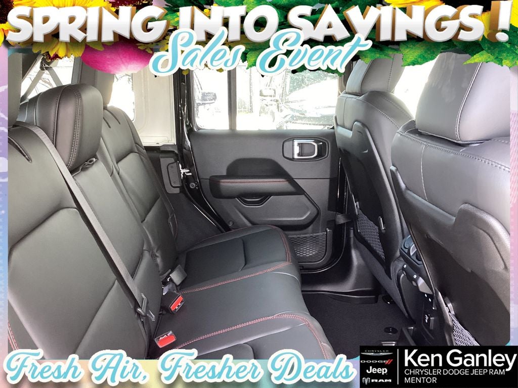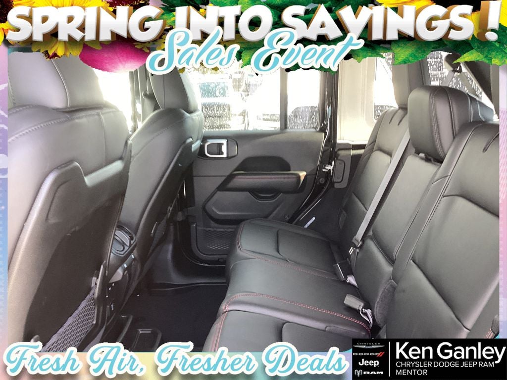 *ParkView Rear Back-Up Camera, 12.3 Touchscreen Display, 4-Wheel Disc Brakes, 4.10 Rear Axle Ratio, 4G LTE Wi-Fi Hot Spot, 8 Speakers, ABS brakes, Air Conditioning, Alloy wheels, AM/FM radio: SiriusXM with 360L, Apple CarPlay, Apple CarPlay/Android Auto, Auto High Beam Headlamp Control, Automatic temperature control, Aux Battery, Auxiliary Switches, Blind Spot and Cross Path Detection, Brake assist, Class II Receiver Hitch, Cloth Low-Back Bucket Seats, Compass, Connectivity - US/Canada, Convenience Group, Delay-off headlights, Driver door bin, Driver vanity mirror, Dual front impact airbags, Dual front side impact airbags, Electronic Stability Control, Emergency communication system: Jeep Connect, For More Info, Call 800-643-2112, Front anti-roll bar, Front Bucket Seats, Front Center Armrest w/Storage, Front dual zone A/C, Front fog lights, Front License Plate Bracket, Front reading lights, Fully automatic headlights, Google Android Auto, Heated door mirrors, Heated Front Seats, Heated Steering Wheel, Illuminated entry, Integrated Center Stack Radio, Integrated roll-over protection, Low tire pressure warning, MOPAR All-Weather Floor Mats, Non-Lock Fuel Cap Without Discriminator, Occupant sensing airbag, Outside temperature display, Overhead airbag, Panic alarm, ParkSense Rear Park Assist System, Passenger door bin, Passenger vanity mirror, Performance Hood, Performance Suspension, Power door mirrors, Power steering, Power Top Quarter Window Storage Bag, Power windows, Quick Order Package 22R Rubicon, Radio data system, Radio: Uconnect 5 with 12.3 Display, Rear anti-roll bar, Rear reading lights, Rear Window Defroster, Rear Window Wiper/Washer, Remote keyless entry, Removable Rear Quarter Windows, Safety Group, Security system, SiriusXM Radio Service, SiriusXM with 360L, Sky One-Touch Power Top, Speed control, Split folding rear seat, Steel Performance Hood Package, Steering wheel mounted audio controls, Stop-Start Dual Battery System, Tachometer, Telescoping steering wheel, Tilt steering wheel, Traction control, Trip computer, Universal Garage Door Opener, Variably intermittent wipers, Voltmeter, Wheels: 17 x 7.5 Machined/Painted Black. PRICING AVAILABLE TO ALL CUSTOMER!!! WE ARE ONE OF OHIO'S LEADING VOLUME DEALERSHIPS COME SEE OUR HUGE SELECTION AND UNMATCHED SAVINGS ONLY AT GANLEY VILLAGE CHRYSLER DODGE JEEP RAM FIAT OF PAINESVILLE, OH 44077.