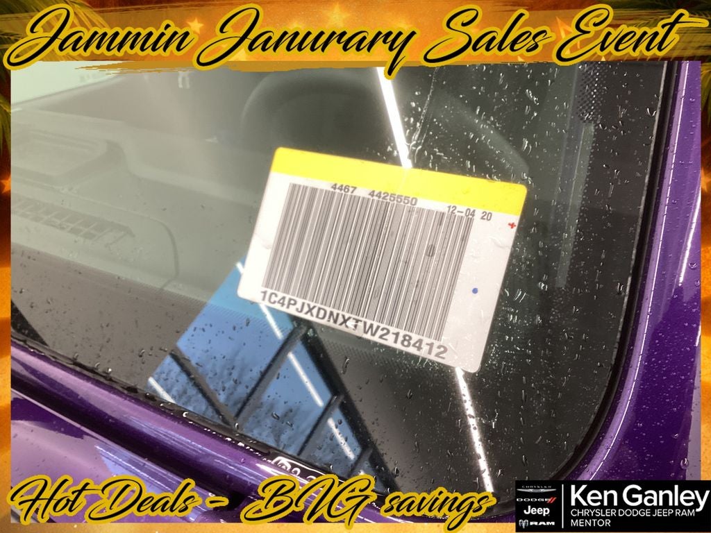 *ParkView Rear Back-Up Camera, 12.3 Touchscreen Display, 3.45 Overall Top Gear Ratio, 4-Wheel Disc Brakes, 4G LTE Wi-Fi Hot Spot, 8 Speakers, ABS brakes, Air Conditioning, AM/FM radio: SiriusXM with 360L, Apple CarPlay, Apple CarPlay/Android Auto, Aux Battery, Black 3-Piece Hard Top, Brake assist, Compass, Connectivity - US/Canada, Deep Tint Sunscreen Windows, Delay-off headlights, Driver door bin, Driver vanity mirror, Dual front impact airbags, Dual front side impact airbags, Electronic Stability Control, For More Info, Call 800-643-2112, Freedom Panel Storage Bag, Front anti-roll bar, Front Bucket Seats, Front Center Armrest w/Storage, Front fog lights, Front reading lights, Google Android Auto, Illuminated entry, Integrated Center Stack Radio, Integrated roll-over protection, Low tire pressure warning, MOPAR All-Weather Floor Mats, Myflexcare Service Plan, No Soft Top, Non-Lock Fuel Cap Without Discriminator, Normal Duty Suspension, Occupant sensing airbag, Outside temperature display, Overhead airbag, Panic alarm, Passenger door bin, Passenger vanity mirror, Power steering, Power windows, Quick Order Package 22B Sport, Radio data system, Radio: Uconnect 5 with 12.3 Display, Rear anti-roll bar, Rear reading lights, Rear Window Defroster, Rear Window Wiper/Washer, Remote keyless entry, SiriusXM Radio Service, SiriusXM with 360L, Speed control, Split folding rear seat, Steering wheel mounted audio controls, Stop-Start Dual Battery System, Tachometer, Telescoping steering wheel, Tilt steering wheel, Traction control, Trip computer, Variably intermittent wipers, Wheels: 17 x 7.5 Black Steel Styled. PRICING AVAILABLE TO ALL CUSTOMER!!! WE ARE ONE OF OHIO'S LEADING VOLUME DEALERSHIPS COME SEE OUR HUGE SELECTION AND UNMATCHED SAVINGS ONLY AT GANLEY VILLAGE CHRYSLER DODGE JEEP RAM FIAT OF PAINESVILLE, OH 44077.
