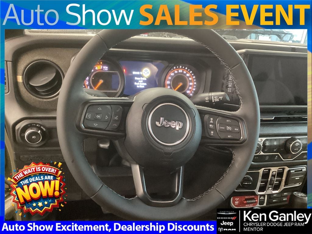 *ParkView Rear Back-Up Camera, 12.3 Touchscreen Display, 2-Door Passive Entry, Front Door Locks, 4-Wheel Disc Brakes, 4G LTE Wi-Fi Hot Spot, 4WD Willys '41 Swing Gate Decal, 7 and 4 Pin Wiring Harness, 8 Speakers, 97 MPH Vehicle Max Speed Calibration, ABS brakes, Adaptive Cruise Control with Stop, Advanced Brake Assist, Air Conditioning, Air Conditioning with Auto Temp Control, Air Filtering, Alpine Premium Audio System, AM/FM radio: SiriusXM with 360L, Apple CarPlay, Apple CarPlay/Android Auto, Automatic Headlamps, Aux Battery, Auxiliary Switches, Body Color 3-Piece Hard Top, Body Color Grille with Gloss Black Rings, Body Color Rubicon Highline Flare, Brake assist, Class II Receiver Hitch, Cloth Low-Back Bucket Seats, Cluster 7.0 TFT Color Display, Compass, Connectivity - US/Canada, Convenience Group, Conventional Differential Front Axle, Corning Gorilla Glass, Dana M210 Wide HD Tube Front Axle, Dana M220 Wide Rear Axle, Daytime Running Lamps LED Accents, Deep Tint Sunscreen Windows, Delay-off headlights, Driver door bin, Driver vanity mirror, Dual front impact airbags, Dual front side impact airbags, E-Locker Rear Axle, Electronic Stability Control, Emergency/Assistance Call, For More Info, Call 800-643-2112, Freedom Panel Storage Bag, Front anti-roll bar, Front Bucket Seats, Front Center Armrest w/Storage, Front fog lights, Front LED Fog Lamps, Front reading lights, Full Speed Forward Collision Warning Plus, Google Android Auto, Heated Front Seats, Heated Steering Wheel, Illuminated entry, Integrated Center Stack Radio, Integrated roll-over protection, LED Premium Reflector Headlamps, Low tire pressure warning, Manufacture Statement of Origin, MOPAR All-Weather Floor Mats, Myflexcare Service Plan, No Soft Top, Non-Lock Fuel Cap Without Discriminator, Normal Duty Suspension, Occupant sensing airbag, Off-Road Plus Mode, Outside temperature display, Overhead airbag, Panic alarm, Passenger door bin, Passenger vanity mirror, Power Dome Dual Vented Hood, Power Heated Mirrors, Power steering, Power windows, Premium Tan Sunrider Soft Top, Premium Wrapped Steering Wheel, Quick Order Package 22H Willys 41, Radio data system, Radio: Uconnect 5 with 12.3 Display, Rear anti-roll bar, Rear reading lights, Rear Window Defroster, Rear Window Wiper/Washer, Remote keyless entry, Security Alarm, SiriusXM Radio Service, SiriusXM with 360L, Speed control, Split folding rear seat, Steel Front Bumper, Steel Power Dome Hood Package, Steel Rear Bumper, Steering wheel mounted audio controls, Stop-Start Dual Battery System, Sun Visors with Illuminated Vanity Mirrors, Tachometer, Telescoping steering wheel, Tilt steering wheel, Traction control, Trip computer, Universal Garage Door Opener, Variably intermittent wipers, Wheels: 17 x 7.5 Black Steel Styled, Wheels: 17 x 7.5 Fully Painted, Willy's Suspension, Willys '41 Retro Edition Buzz Model, Willys '41 Retro Edition Hood Decal, Willys '41 Retro Edition Tailgate Plaque, Willys '41 Retro Edition Wrangler Decal, Willys '41 Retro Shift Bezel Insert, Willys '41 US Edition U.S. Hood Decal. PRICING AVAILABLE TO ALL CUSTOMER!!! WE ARE ONE OF OHIO'S LEADING VOLUME DEALERSHIPS COME SEE OUR HUGE SELECTION AND UNMATCHED SAVINGS ONLY AT GANLEY VILLAGE CHRYSLER DODGE JEEP RAM FIAT OF PAINESVILLE, OH 44077.
