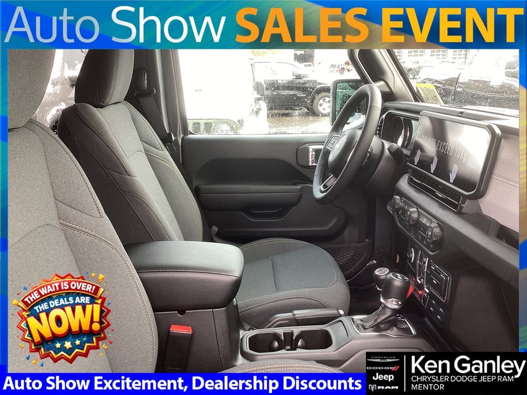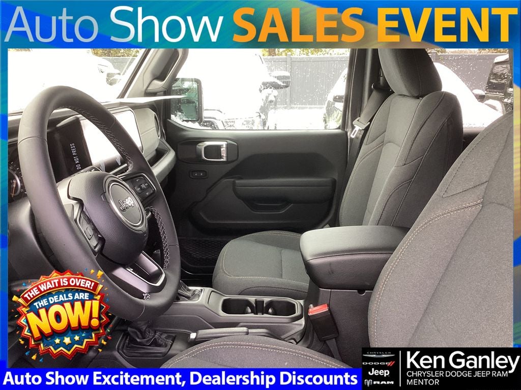 *ParkView Rear Back-Up Camera, 12.3 Touchscreen Display, 2-Door Passive Entry, Front Door Locks, 4-Wheel Disc Brakes, 4-Wheel Drive Swing Gate Decal, 4G LTE Wi-Fi Hot Spot, 7 and 4 Pin Wiring Harness, 8 Speakers, ABS brakes, Advanced Brake Assist, Air Conditioning, Air Conditioning with Auto Temp Control, Air Filtering, AM/FM radio: SiriusXM with 360L, Apple CarPlay, Apple CarPlay/Android Auto, Auto High Beam Headlamp Control, Automatic Headlamps, Aux Battery, Auxiliary Switches, Black Grille with Gloss Black Rings, Blind Spot and Cross Path Detection, Brake assist, Class II Receiver Hitch, Cluster 7.0 TFT Color Display, Compass, Connectivity - US/Canada, Convenience Group, Conventional Differential Front Axle, Corning Gorilla Glass, Dana M210 Wide HD Tube Front Axle, Dana M220 Wide Rear Axle, Daytime Running Lamps LED Accents, Deep Tint Sunscreen Windows, Delay-off headlights, Driver door bin, Driver vanity mirror, Dual front impact airbags, Dual front side impact airbags, E-Locker Rear Axle, Electronic Stability Control, Emergency/Assistance Call, Enhanced Adaptive Cruise Control, For More Info, Call 800-643-2112, Front anti-roll bar, Front Bucket Seats, Front Center Armrest w/Storage, Front fog lights, Front LED Fog Lamps, Front reading lights, Full Speed Forward Collision Warning Plus, Google Android Auto, Heated Front Seats, Heated Steering Wheel, Illuminated entry, Injection Molded Black Rear Bumper, Integrated Center Stack Radio, Integrated roll-over protection, LED Premium Reflector Headlamps, LED Taillamps, Low tire pressure warning, Mold in Color Bumper with Gloss Black, Molded in Color Rubicon Highline Flare, MOPAR All-Weather Floor Mats, Myflexcare Service Plan, Non-Lock Fuel Cap Without Discriminator, Normal Duty Suspension, Occupant sensing airbag, Off-Road Plus Mode, Outside temperature display, Overhead airbag, Panic alarm, ParkSense Rear Park Assist System, Passenger door bin, Passenger vanity mirror, Power Dome Dual Vented Hood, Power Heated Mirrors, Power steering, Power Top Quarter Window Storage Bag, Power windows, Premium Wrapped Steering Wheel, Quick Order Package 22W Willys, Radio data system, Radio: Uconnect 5 with 12.3 Display, Rear anti-roll bar, Rear reading lights, Rear Window Defroster, Rear Window Wiper/Washer, Remote keyless entry, Removable Rear Quarter Windows, Safety Group, Security Alarm, SiriusXM Radio Service, SiriusXM with 360L, Sky One-Touch Power Top, Speed control, Split folding rear seat, Steel Power Dome Hood Package, Steering wheel mounted audio controls, Stop-Start Dual Battery System, Sun Visors with Illuminated Vanity Mirrors, Tachometer, Telescoping steering wheel, Tilt steering wheel, Traction control, Trip computer, Universal Garage Door Opener, Variably intermittent wipers, Wheels: 17 x 7.5 Black Steel Styled, Wheels: 17 x 7.5 Painted Black, Willy's Suspension, Willys Hood Decal. PRICING AVAILABLE TO ALL CUSTOMER!!! WE ARE ONE OF OHIO'S LEADING VOLUME DEALERSHIPS COME SEE OUR HUGE SELECTION AND UNMATCHED SAVINGS ONLY AT GANLEY VILLAGE CHRYSLER DODGE JEEP RAM FIAT OF PAINESVILLE, OH 44077.