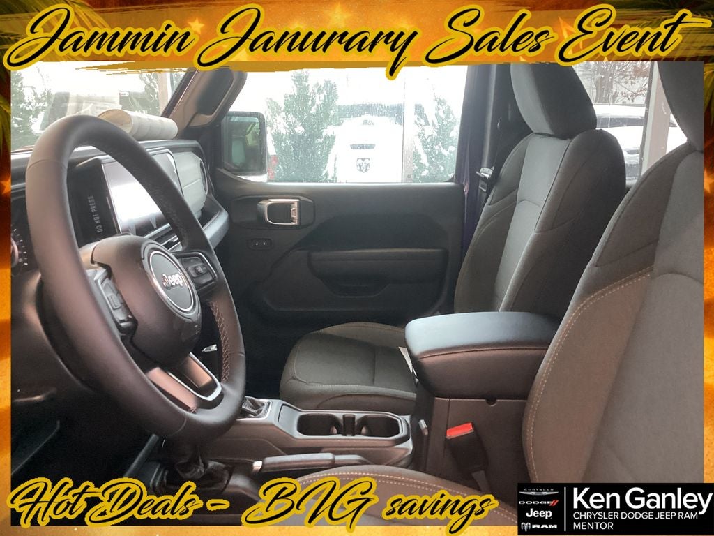 *ParkView Rear Back-Up Camera, 12.3 Touchscreen Display, 2-Door Passive Entry, Front Door Locks, 4-Wheel Disc Brakes, 4-Wheel Drive Swing Gate Decal, 4G LTE Wi-Fi Hot Spot, 7 and 4 Pin Wiring Harness, 8 Speakers, ABS brakes, Advanced Brake Assist, Air Conditioning, Air Conditioning with Auto Temp Control, Air Filtering, AM/FM radio: SiriusXM with 360L, Apple CarPlay, Apple CarPlay/Android Auto, Automatic Headlamps, Aux Battery, Auxiliary Switches, Black 3-Piece Hard Top, Black Grille with Gloss Black Rings, Brake assist, Class II Receiver Hitch, Cluster 7.0 TFT Color Display, Compass, Connectivity - US/Canada, Convenience Group, Conventional Differential Front Axle, Corning Gorilla Glass, Dana M210 Wide HD Tube Front Axle, Dana M220 Wide Rear Axle, Daytime Running Lamps LED Accents, Deep Tint Sunscreen Windows, Delay-off headlights, Driver door bin, Driver vanity mirror, Dual front impact airbags, Dual front side impact airbags, E-Locker Rear Axle, Electronic Stability Control, Emergency/Assistance Call, Enhanced Adaptive Cruise Control, For More Info, Call 800-643-2112, Freedom Panel Storage Bag, Front anti-roll bar, Front Bucket Seats, Front Center Armrest w/Storage, Front fog lights, Front LED Fog Lamps, Front reading lights, Full Speed Forward Collision Warning Plus, Google Android Auto, Heated Front Seats, Heated Steering Wheel, Illuminated entry, Injection Molded Black Rear Bumper, Integrated Center Stack Radio, Integrated roll-over protection, LED Premium Reflector Headlamps, Low tire pressure warning, Mold in Color Bumper with Gloss Black, Molded in Color Rubicon Highline Flare, MOPAR All-Weather Floor Mats, Myflexcare Service Plan, No Soft Top, Non-Lock Fuel Cap Without Discriminator, Normal Duty Suspension, Occupant sensing airbag, Off-Road Plus Mode, Outside temperature display, Overhead airbag, Panic alarm, Passenger door bin, Passenger vanity mirror, Power Dome Dual Vented Hood, Power Heated Mirrors, Power steering, Power windows, Premium Wrapped Steering Wheel, Quick Order Package 22W Willys, Radio data system, Radio: Uconnect 5 with 12.3 Display, Rear anti-roll bar, Rear reading lights, Rear Window Defroster, Rear Window Wiper/Washer, Remote keyless entry, Security Alarm, SiriusXM Radio Service, SiriusXM with 360L, Speed control, Split folding rear seat, Steel Power Dome Hood Package, Steering wheel mounted audio controls, Stop-Start Dual Battery System, Sun Visors with Illuminated Vanity Mirrors, Tachometer, Telescoping steering wheel, Tilt steering wheel, Traction control, Trip computer, Universal Garage Door Opener, Variably intermittent wipers, Wheels: 17 x 7.5 Black Steel Styled, Wheels: 17 x 7.5 Painted Black, Willy's Suspension, Willys Hood Decal. PRICING AVAILABLE TO ALL CUSTOMER!!! WE ARE ONE OF OHIO'S LEADING VOLUME DEALERSHIPS COME SEE OUR HUGE SELECTION AND UNMATCHED SAVINGS ONLY AT GANLEY VILLAGE CHRYSLER DODGE JEEP RAM FIAT OF PAINESVILLE, OH 44077.