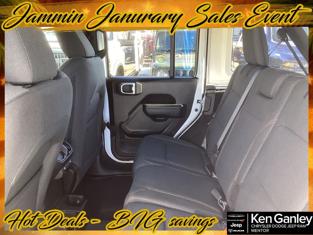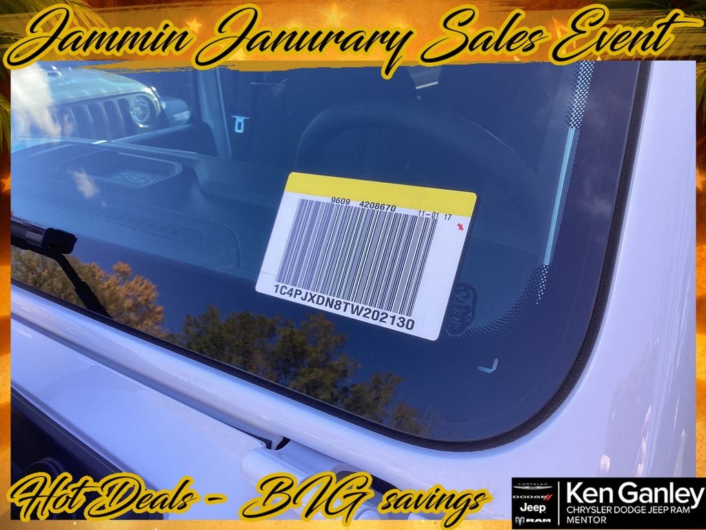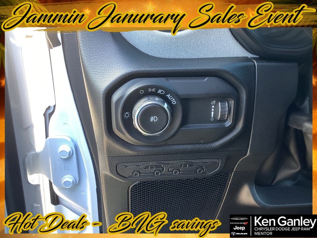 *ParkView Rear Back-Up Camera, 12.3 Touchscreen Display, 2-Door Passive Entry, Front Door Locks, 4-Wheel Disc Brakes, 4-Wheel Drive Swing Gate Decal, 4G LTE Wi-Fi Hot Spot, 7 and 4 Pin Wiring Harness, 8 Speakers, ABS brakes, Advanced Brake Assist, Air Conditioning, Air Conditioning with Auto Temp Control, Air Filtering, AM/FM radio: SiriusXM with 360L, Apple CarPlay, Apple CarPlay/Android Auto, Automatic Headlamps, Aux Battery, Auxiliary Switches, Black Grille with Gloss Black Rings, Brake assist, Class II Receiver Hitch, Cluster 7.0 TFT Color Display, Compass, Connectivity - US/Canada, Convenience Group, Conventional Differential Front Axle, Corning Gorilla Glass, Dana M210 Wide HD Tube Front Axle, Dana M220 Wide Rear Axle, Daytime Running Lamps LED Accents, Deep Tint Sunscreen Windows, Delay-off headlights, Driver door bin, Driver vanity mirror, Dual front impact airbags, Dual front side impact airbags, E-Locker Rear Axle, Electronic Stability Control, Emergency/Assistance Call, Enhanced Adaptive Cruise Control, For More Info, Call 800-643-2112, Front anti-roll bar, Front Bucket Seats, Front Center Armrest w/Storage, Front fog lights, Front LED Fog Lamps, Front reading lights, Full Speed Forward Collision Warning Plus, Google Android Auto, Heated Front Seats, Heated Steering Wheel, Illuminated entry, Injection Molded Black Rear Bumper, Integrated Center Stack Radio, Integrated roll-over protection, LED Premium Reflector Headlamps, Low tire pressure warning, Mold in Color Bumper with Gloss Black, Molded in Color Rubicon Highline Flare, MOPAR All-Weather Floor Mats, Myflexcare Service Plan, Non-Lock Fuel Cap Without Discriminator, Normal Duty Suspension, Occupant sensing airbag, Off-Road Plus Mode, Outside temperature display, Overhead airbag, Panic alarm, Passenger door bin, Passenger vanity mirror, Power Dome Dual Vented Hood, Power Heated Mirrors, Power steering, Power Top Quarter Window Storage Bag, Power windows, Premium Wrapped Steering Wheel, Quick Order Package 22W Willys, Radio data system, Radio: Uconnect 5 with 12.3 Display, Rear anti-roll bar, Rear reading lights, Rear Window Defroster, Rear Window Wiper/Washer, Remote keyless entry, Removable Rear Quarter Windows, Security Alarm, SiriusXM Radio Service, SiriusXM with 360L, Sky One-Touch Power Top, Speed control, Split folding rear seat, Steel Power Dome Hood Package, Steering wheel mounted audio controls, Stop-Start Dual Battery System, Sun Visors with Illuminated Vanity Mirrors, Tachometer, Telescoping steering wheel, Tilt steering wheel, Traction control, Trip computer, Universal Garage Door Opener, Variably intermittent wipers, Wheels: 17 x 7.5 Black Steel Styled, Wheels: 17 x 7.5 Painted Black, Willy's Suspension, Willys Hood Decal. PRICING AVAILABLE TO ALL CUSTOMER!!! WE ARE ONE OF OHIO'S LEADING VOLUME DEALERSHIPS COME SEE OUR HUGE SELECTION AND UNMATCHED SAVINGS ONLY AT GANLEY VILLAGE CHRYSLER DODGE JEEP RAM FIAT OF PAINESVILLE, OH 44077.