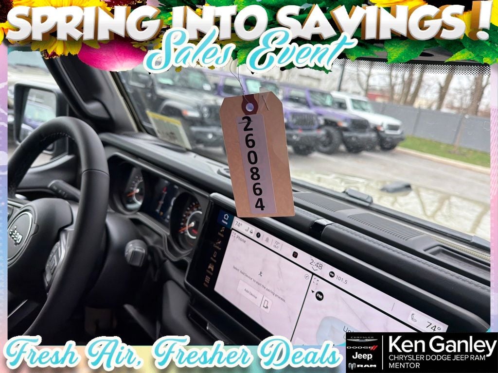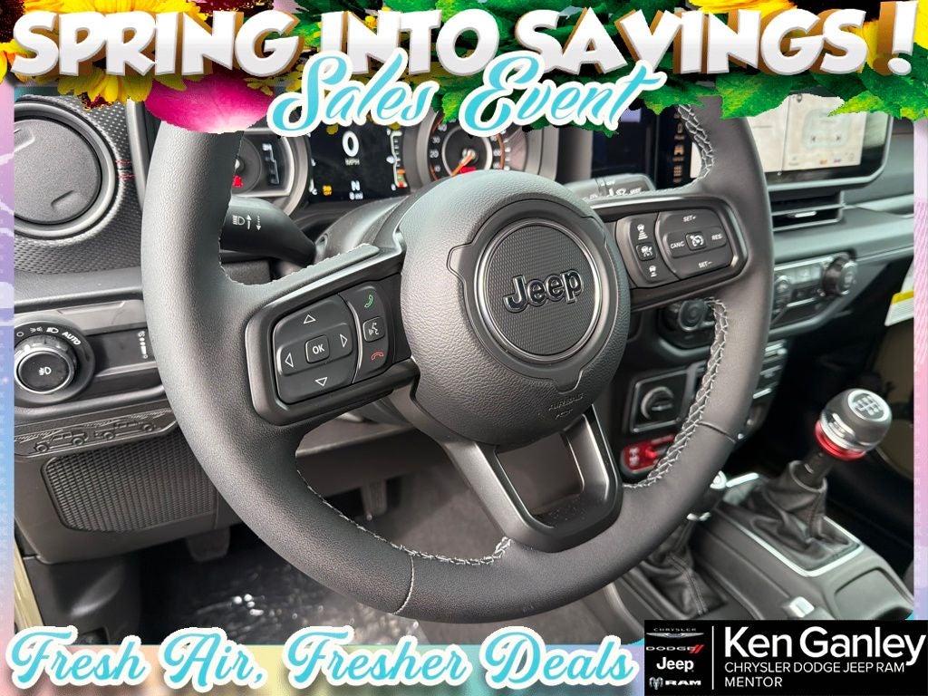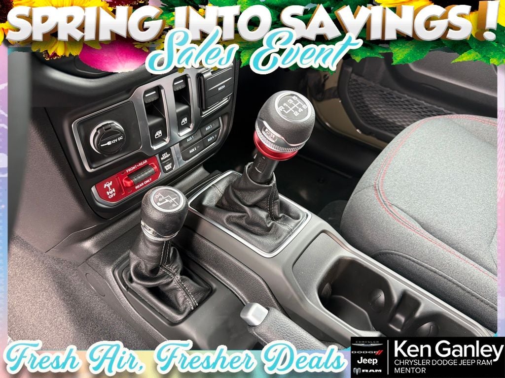 *ParkView Rear Back-Up Camera, 12.3 Touchscreen Display, 4-Wheel Disc Brakes, 4.10 Rear Axle Ratio, 4G LTE Wi-Fi Hot Spot, 8 Speakers, ABS brakes, Air Conditioning, Alloy wheels, AM/FM radio: SiriusXM with 360L, Apple CarPlay, Apple CarPlay/Android Auto, Automatic temperature control, Aux Battery, Auxiliary Switches, Brake assist, Class II Receiver Hitch, Cloth Low-Back Bucket Seats, Compass, Connectivity - US/Canada, Convenience Group, Delay-off headlights, Driver door bin, Driver vanity mirror, Dual front impact airbags, Dual front side impact airbags, Electronic Stability Control, Emergency communication system: Jeep Connect, For More Info, Call 800-643-2112, Front anti-roll bar, Front Bucket Seats, Front Center Armrest w/Storage, Front dual zone A/C, Front fog lights, Front License Plate Bracket, Front reading lights, Fully automatic headlights, Google Android Auto, Heated door mirrors, Heated Front Seats, Heated Steering Wheel, Illuminated entry, Integrated Center Stack Radio, Integrated roll-over protection, Low tire pressure warning, MOPAR All-Weather Floor Mats, Myflexcare Service Plan, Non-Lock Fuel Cap Without Discriminator, Occupant sensing airbag, Outside temperature display, Overhead airbag, Panic alarm, Passenger door bin, Passenger vanity mirror, Performance Hood, Performance Suspension, Power door mirrors, Power steering, Power windows, Quick Order Package 23R Rubicon, Radio data system, Radio: Uconnect 5 with 12.3 Display, Rear anti-roll bar, Rear reading lights, Remote keyless entry, Security system, SiriusXM Radio Service, SiriusXM with 360L, Speed control, Steel Performance Hood Package, Steering wheel mounted audio controls, Stop-Start Dual Battery System, Tachometer, Telescoping steering wheel, Tilt steering wheel, Traction control, Trip computer, Universal Garage Door Opener, Variably intermittent wipers, Voltmeter, Wheels: 17 x 7.5 Machined/Painted Black. PRICING AVAILABLE TO ALL CUSTOMER!!! WE ARE ONE OF OHIO'S LEADING VOLUME DEALERSHIPS COME SEE OUR HUGE SELECTION AND UNMATCHED SAVINGS ONLY AT GANLEY VILLAGE CHRYSLER DODGE JEEP RAM FIAT OF PAINESVILLE, OH 44077.
