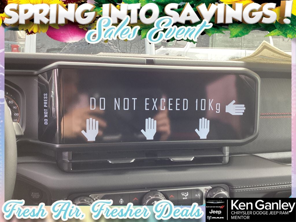 *ParkView Rear Back-Up Camera, 12.3 Touchscreen Display, 4-Wheel Disc Brakes, 4.10 Rear Axle Ratio, 4G LTE Wi-Fi Hot Spot, 8 Speakers, ABS brakes, Air Conditioning, Alloy wheels, AM/FM radio: SiriusXM with 360L, Apple CarPlay, Apple CarPlay/Android Auto, Automatic temperature control, Aux Battery, Auxiliary Switches, Brake assist, Class II Receiver Hitch, Cloth Low-Back Bucket Seats, Compass, Connectivity - US/Canada, Convenience Group, Delay-off headlights, Driver door bin, Driver vanity mirror, Dual front impact airbags, Dual front side impact airbags, Electronic Stability Control, Emergency communication system: Jeep Connect, For More Info, Call 800-643-2112, Front anti-roll bar, Front Bucket Seats, Front Center Armrest w/Storage, Front dual zone A/C, Front fog lights, Front License Plate Bracket, Front reading lights, Fully automatic headlights, Google Android Auto, Heated door mirrors, Heated Front Seats, Heated Steering Wheel, Illuminated entry, Integrated Center Stack Radio, Integrated roll-over protection, Low tire pressure warning, Non-Lock Fuel Cap Without Discriminator, Occupant sensing airbag, Outside temperature display, Overhead airbag, Panic alarm, Passenger door bin, Passenger vanity mirror, Performance Hood, Performance Suspension, Power door mirrors, Power steering, Power windows, Quick Order Package 23R Rubicon, Radio data system, Radio: Uconnect 5 with 12.3 Display, Rear anti-roll bar, Rear reading lights, Remote keyless entry, Security system, SiriusXM Radio Service, SiriusXM with 360L, Speed control, Steel Performance Hood Package, Steering wheel mounted audio controls, Stop-Start Dual Battery System, Tachometer, Telescoping steering wheel, Tilt steering wheel, Traction control, Trip computer, Universal Garage Door Opener, Variably intermittent wipers, Voltmeter, Wheels: 17 x 7.5 Machined/Painted Black. PRICING AVAILABLE TO ALL CUSTOMER!!! WE ARE ONE OF OHIO'S LEADING VOLUME DEALERSHIPS COME SEE OUR HUGE SELECTION AND UNMATCHED SAVINGS ONLY AT GANLEY VILLAGE CHRYSLER DODGE JEEP RAM FIAT OF PAINESVILLE, OH 44077.