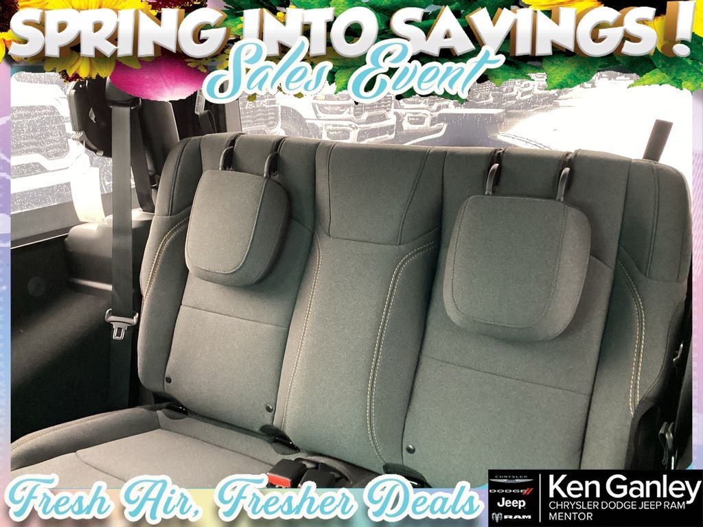 *ParkView Rear Back-Up Camera, 12.3 Touchscreen Display, 3.45 Overall Top Gear Ratio, 4-Wheel Disc Brakes, 4G LTE Wi-Fi Hot Spot, 8 Speakers, ABS brakes, Air Conditioning, AM/FM radio: SiriusXM with 360L, Apple CarPlay, Apple CarPlay/Android Auto, Aux Battery, Brake assist, Cloth Low-Back Bucket Seats, Compass, Connectivity - US/Canada, Deep Tint Sunscreen Windows, Delay-off headlights, Driver door bin, Driver vanity mirror, Dual front impact airbags, Dual front side impact airbags, Electronic Stability Control, For More Info, Call 800-643-2112, Front anti-roll bar, Front Bucket Seats, Front Center Armrest w/Storage, Front fog lights, Front reading lights, Google Android Auto, Illuminated entry, Integrated Center Stack Radio, Integrated roll-over protection, Low tire pressure warning, MOPAR All-Weather Floor Mats, Myflexcare Service Plan, Non-Lock Fuel Cap Without Discriminator, Normal Duty Suspension, Occupant sensing airbag, Outside temperature display, Overhead airbag, Panic alarm, Passenger door bin, Passenger vanity mirror, Power steering, Power windows, Quick Order Package 23B Sport, Radio data system, Radio: Uconnect 5 with 12.3 Display, Rear anti-roll bar, Rear reading lights, Remote keyless entry, SiriusXM Radio Service, SiriusXM with 360L, Speed control, Steering wheel mounted audio controls, Stop-Start Dual Battery System, Tachometer, Telescoping steering wheel, Tilt steering wheel, Traction control, Trip computer, Variably intermittent wipers, Wheels: 17 x 7.5 Black Steel Styled, Wheels: 17 x 7.5 Gray. PRICING AVAILABLE TO ALL CUSTOMER!!! WE ARE ONE OF OHIO'S LEADING VOLUME DEALERSHIPS COME SEE OUR HUGE SELECTION AND UNMATCHED SAVINGS ONLY AT GANLEY VILLAGE CHRYSLER DODGE JEEP RAM FIAT OF PAINESVILLE, OH 44077.