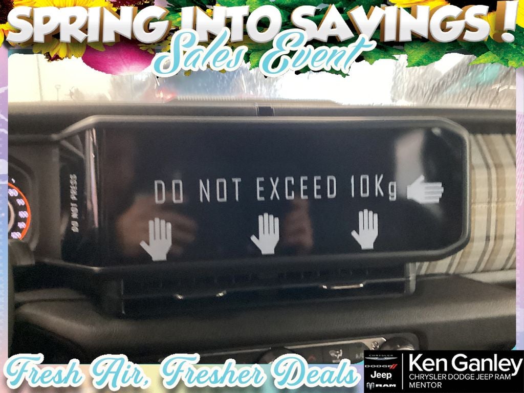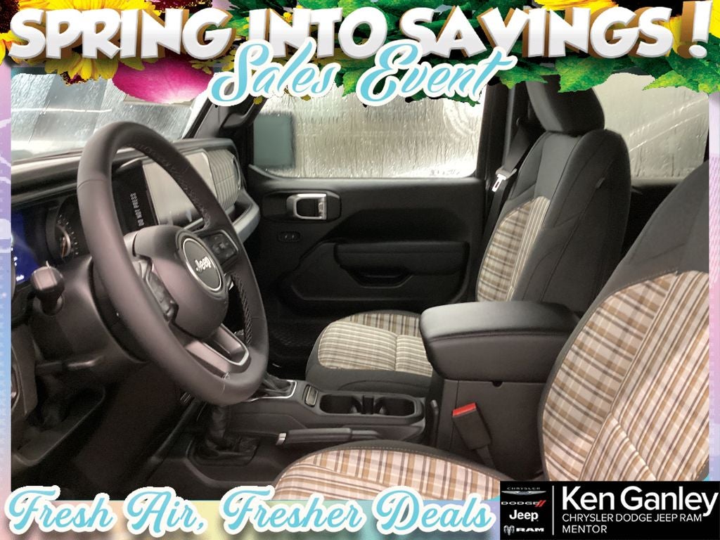 *ParkView Rear Back-Up Camera, 12.3 Touchscreen Display, 2-Door Passive Entry, Front Door Locks, 3.45 Overall Top Gear Ratio, 4-Wheel Disc Brakes, 4G LTE Wi-Fi Hot Spot, 8 Speakers, 85th Anniversary Group, 85th Cupholder Plaque, 85th Fender Decal, 85th Shifter Medallion, 85th Tailgate Decal, 85th Wrangler Hood Decal, ABS brakes, Adaptive Cruise Control with Stop, Advanced Brake Assist, Air Conditioning, Air Conditioning with Auto Temp Control, Air Filtering, Alpine Premium Audio System, AM/FM radio: SiriusXM with 360L, Anti-Lock 4-Wheel Disc Brakes, Apple CarPlay, Apple CarPlay/Android Auto, Auto High Beam Headlamp Control, Automatic Headlamps, Aux Battery, Berber Cargo Mats, Berber Floor Mats, Blind Spot and Cross Path Detection, Body Color Fenders Flares, Brake assist, Bronze Tow Hooks, Central ADAS Decision Module (CADM), Cloth Seat with Plaid Insert and Tag, Cluster 7.0 TFT Color Display, Compass, Connectivity - US/Canada, Corning Gorilla Glass, Daytime Running Lamps LED Accents, Deep Tint Sunscreen Windows, Delay-off headlights, Driver door bin, Driver vanity mirror, Dual front impact airbags, Dual front side impact airbags, Electronic Stability Control, Emergency/Assistance Call, For More Info, Call 800-643-2112, Front anti-roll bar, Front Bucket Seats, Front Center Armrest w/Storage, Front fog lights, Front LED Fog Lamps, Front reading lights, Full Speed Forward Collision Warning Plus, Google Android Auto, Gray/Bronze Trail Rated Badge, Heated Front Seats, Heated Steering Wheel, Illuminated entry, Injection Molded Black Rear Bumper, Integrated Center Stack Radio, Integrated roll-over protection, LED Premium Reflector Headlamps, LED Taillamps, Low tire pressure warning, Manufacture Statement of Origin, Mayan Gold Interior Accents, Mopar Black Tubular Side Steps, Myflexcare Service Plan, Non-Lock Fuel Cap Without Discriminator, Normal Duty Suspension, Occupant sensing airbag, Outside temperature display, Overhead airbag, Panic alarm, ParkSense Rear Park Assist System, Passenger door bin, Passenger vanity mirror, Plaid Wrap Instrument Panel Mid-Bolster, Power Heated Mirrors, Power steering, Power Top Quarter Window Storage Bag, Power windows, Premium Wrapped Steering Wheel, Quick Order Package 22F 85th Anniversary Edition, Radio data system, Radio: Uconnect 5 with 12.3 Display, Rear anti-roll bar, Rear reading lights, Rear Window Defroster, Rear Window Wiper/Washer, Remote keyless entry, Removable Rear Quarter Windows, Safety Group, Security Alarm, SiriusXM Radio Service, SiriusXM with 360L, Sky One-Touch Power Top, Speed control, Split folding rear seat, Steering wheel mounted audio controls, Stop-Start Dual Battery System, Sun Visors with Illuminated Vanity Mirrors, Tachometer, Telescoping steering wheel, Tilt steering wheel, Traction control, Trip computer, Universal Garage Door Opener, Variably intermittent wipers, Wheels: 17 x 7.5 Black Steel Styled, Wheels: 17 x 7.5 Steel Oxide. PRICING AVAILABLE TO ALL CUSTOMER!!! WE ARE ONE OF OHIO'S LEADING VOLUME DEALERSHIPS COME SEE OUR HUGE SELECTION AND UNMATCHED SAVINGS ONLY AT GANLEY VILLAGE CHRYSLER DODGE JEEP RAM FIAT OF PAINESVILLE, OH 44077.