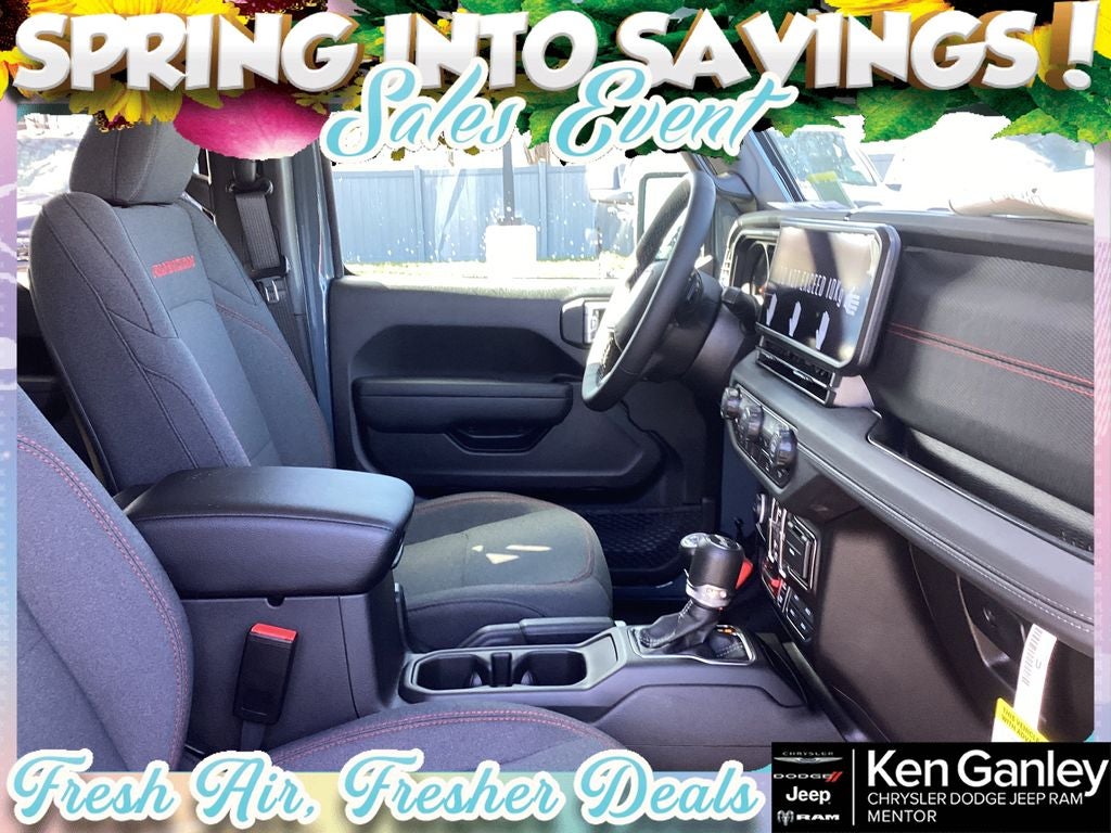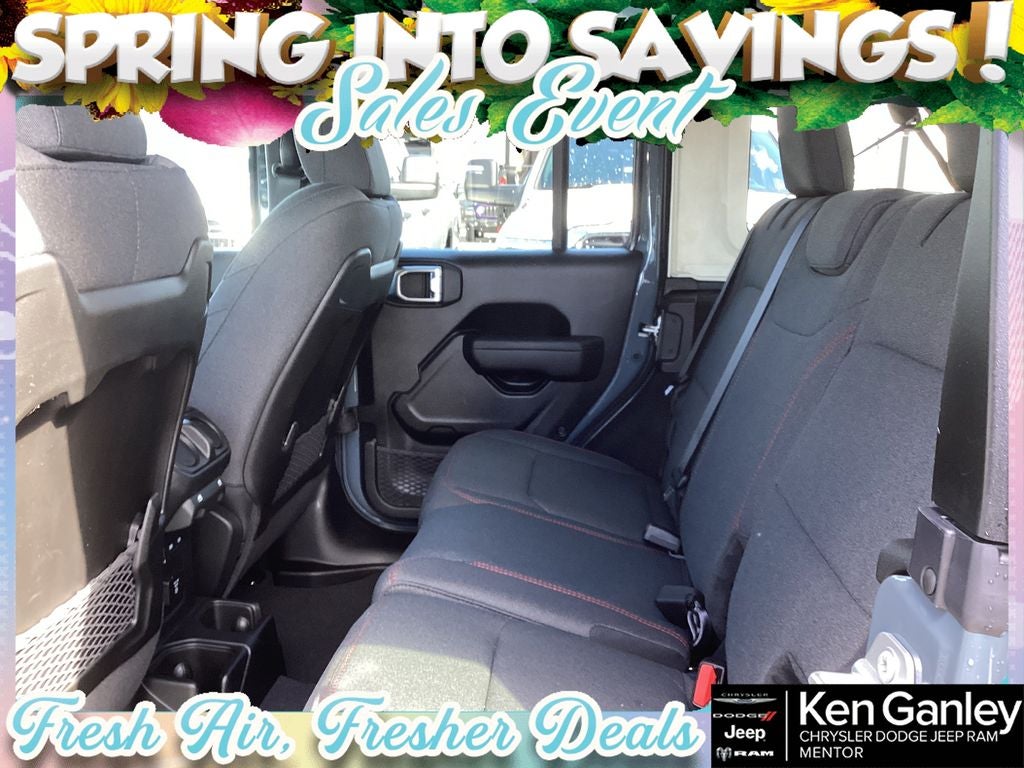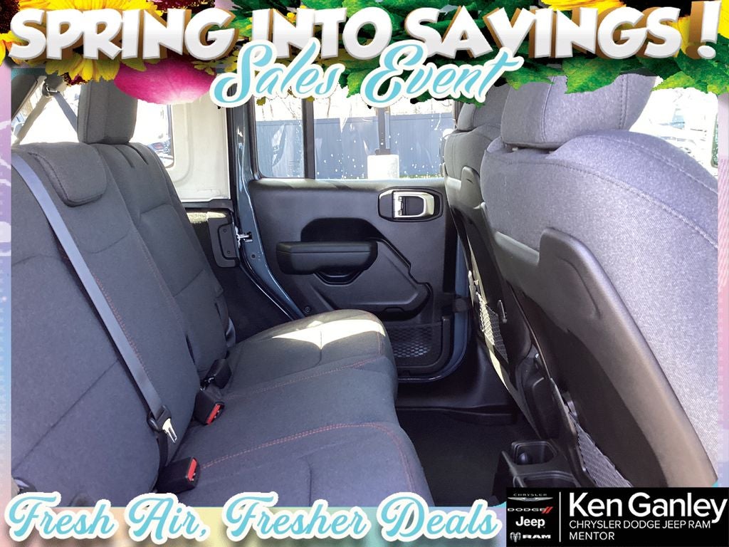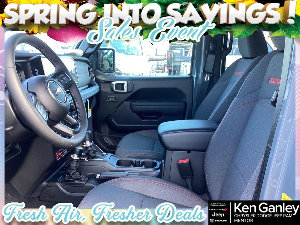 *ParkView Rear Back-Up Camera, 12.3 Touchscreen Display, 4-Wheel Disc Brakes, 4.10 Rear Axle Ratio, 4G LTE Wi-Fi Hot Spot, 8 Speakers, ABS brakes, Air Conditioning, Alloy wheels, AM/FM radio: SiriusXM with 360L, Apple CarPlay, Apple CarPlay/Android Auto, Automatic temperature control, Aux Battery, Auxiliary Switches, Black 3-Piece Hard Top, Brake assist, Class II Receiver Hitch, Cloth Low-Back Bucket Seats, Compass, Connectivity - US/Canada, Convenience Group, Delay-off headlights, Driver door bin, Driver vanity mirror, Dual front impact airbags, Dual front side impact airbags, Electronic Stability Control, Emergency communication system: Jeep Connect, For More Info, Call 800-643-2112, Freedom Panel Storage Bag, Front anti-roll bar, Front Bucket Seats, Front Center Armrest w/Storage, Front dual zone A/C, Front fog lights, Front License Plate Bracket, Front reading lights, Fully automatic headlights, Google Android Auto, Heated door mirrors, Heated Front Seats, Heated Steering Wheel, Illuminated entry, Integrated Center Stack Radio, Integrated roll-over protection, Low tire pressure warning, MOPAR All-Weather Floor Mats, Myflexcare Service Plan, No Soft Top, Non-Lock Fuel Cap Without Discriminator, Occupant sensing airbag, Outside temperature display, Overhead airbag, Panic alarm, Passenger door bin, Passenger vanity mirror, Performance Hood, Performance Suspension, Power door mirrors, Power steering, Power windows, Quick Order Package 22R Rubicon, Radio data system, Radio: Uconnect 5 with 12.3 Display, Rear anti-roll bar, Rear reading lights, Rear Window Defroster, Rear Window Wiper/Washer, Remote keyless entry, Security system, SiriusXM Radio Service, SiriusXM with 360L, Speed control, Split folding rear seat, Steel Performance Hood Package, Steering wheel mounted audio controls, Stop-Start Dual Battery System, Tachometer, Telescoping steering wheel, Tilt steering wheel, Traction control, Trip computer, Universal Garage Door Opener, Variably intermittent wipers, Voltmeter, Wheels: 17 x 7.5 Machined/Painted Black. PRICING AVAILABLE TO ALL CUSTOMER!!! WE ARE ONE OF OHIO'S LEADING VOLUME DEALERSHIPS COME SEE OUR HUGE SELECTION AND UNMATCHED SAVINGS ONLY AT GANLEY VILLAGE CHRYSLER DODGE JEEP RAM FIAT OF PAINESVILLE, OH 44077.