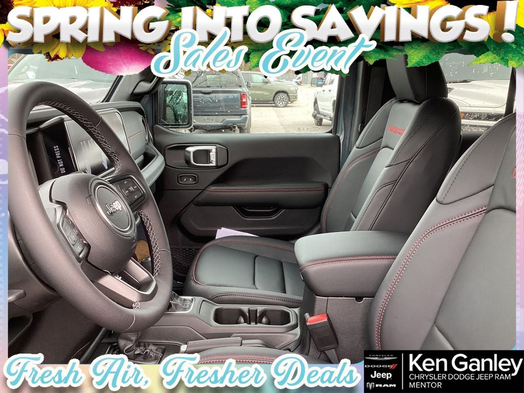 *ParkView Rear Back-Up Camera, 12.3 Touchscreen Display, 4-Wheel Disc Brakes, 4.10 Rear Axle Ratio, 4G LTE Wi-Fi Hot Spot, 8 Speakers, ABS brakes, Air Conditioning, Alloy wheels, Alpine Premium Audio System, AM/FM radio: SiriusXM with 360L, Apple CarPlay, Apple CarPlay/Android Auto, Auto High Beam Headlamp Control, Auto-Dimming Rear-View Mirror, Automatic temperature control, Aux Battery, Auxiliary Switches, Blind Spot and Cross Path Detection, Body Color Rubicon Highline Flare, Brake assist, Class II Receiver Hitch, Cloth Low-Back Bucket Seats, Compass, Connected Travel and Traffic Services, Connectivity - US/Canada, Convenience Group, Delay-off headlights, Driver door bin, Driver vanity mirror, Dual front impact airbags, Dual front side impact airbags, Electronic Stability Control, Emergency communication system: Jeep Connect, For More Info, Call 800-643-2112, Front anti-roll bar, Front Bucket Seats, Front Center Armrest w/Storage, Front dual zone A/C, Front fog lights, Front License Plate Bracket, Front reading lights, Fully automatic headlights, Google Android Auto, GPS Navigation, HD Radio, Heated door mirrors, Heated Front Seats, Heated Steering Wheel, Illuminated entry, Integrated Center Stack Radio, Integrated Off-Road Camera, Integrated roll-over protection, Integrated Voice Command with Bluetooth®, Low tire pressure warning, MOPAR All-Weather Floor Mats, MOPAR Stainless Door Sill Guards, Myflexcare Service Plan, Non-Lock Fuel Cap Without Discriminator, Occupant sensing airbag, Outside temperature display, Overhead airbag, Panic alarm, ParkSense Rear Park Assist System, Passenger door bin, Passenger vanity mirror, Performance Hood, Performance Suspension, Power door mirrors, Power steering, Power Top Quarter Window Storage Bag, Power windows, Quick Order Package 22R Rubicon, Radio data system, Radio: Uconnect 5 Navigation with 12.3 Display, Radio: Uconnect 5 with 12.3 Display, Rear anti-roll bar, Rear reading lights, Rear Window Defroster, Rear Window Wiper/Washer, Remote keyless entry, Removable Rear Quarter Windows, Safety Group, Security system, SiriusXM Radio Service, SiriusXM with 360L, Sky One-Touch Power Top, Speed control, Split folding rear seat, Steel Performance Hood Package, Steering wheel mounted audio controls, Stop-Start Dual Battery System, Tachometer, Technology Group, Telescoping steering wheel, Tilt steering wheel, Traction control, Trip computer, Universal Garage Door Opener, Variably intermittent wipers, Voltmeter, Wheels: 17 x 7.5 Machined/Painted Black. PRICING AVAILABLE TO ALL CUSTOMER!!! WE ARE ONE OF OHIO'S LEADING VOLUME DEALERSHIPS COME SEE OUR HUGE SELECTION AND UNMATCHED SAVINGS ONLY AT GANLEY VILLAGE CHRYSLER DODGE JEEP RAM FIAT OF PAINESVILLE, OH 44077.
