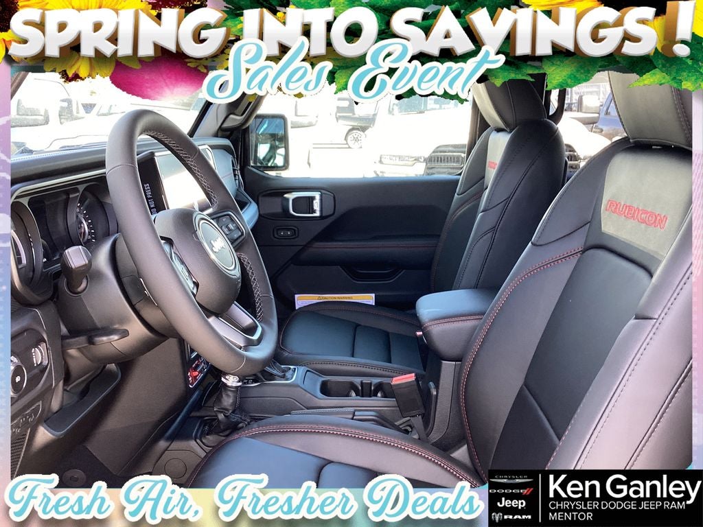 *ParkView Rear Back-Up Camera, 12.3 Touchscreen Display, 4-Wheel Disc Brakes, 4.10 Rear Axle Ratio, 4G LTE Wi-Fi Hot Spot, 8 Speakers, ABS brakes, Air Conditioning, Alloy wheels, Alpine Premium Audio System, AM/FM radio: SiriusXM with 360L, Apple CarPlay, Apple CarPlay/Android Auto, Auto High Beam Headlamp Control, Auto-Dimming Rear-View Mirror, Automatic temperature control, Aux Battery, Auxiliary Switches, Blind Spot and Cross Path Detection, Body Color Rubicon Highline Flare, Brake assist, Class II Receiver Hitch, Cloth Low-Back Bucket Seats, Compass, Connected Travel and Traffic Services, Connectivity - US/Canada, Convenience Group, Delay-off headlights, Driver door bin, Driver vanity mirror, Dual front impact airbags, Dual front side impact airbags, Electronic Stability Control, Emergency communication system: Jeep Connect, For More Info, Call 800-643-2112, Front anti-roll bar, Front Bucket Seats, Front Center Armrest w/Storage, Front dual zone A/C, Front fog lights, Front License Plate Bracket, Front reading lights, Fully automatic headlights, Google Android Auto, GPS Navigation, HD Radio, Heated door mirrors, Heated Front Seats, Heated Steering Wheel, Illuminated entry, Integrated Center Stack Radio, Integrated Off-Road Camera, Integrated roll-over protection, Integrated Voice Command with Bluetooth®, Low tire pressure warning, MOPAR All-Weather Floor Mats, MOPAR Stainless Door Sill Guards, Myflexcare Service Plan, Non-Lock Fuel Cap Without Discriminator, Occupant sensing airbag, Outside temperature display, Overhead airbag, Panic alarm, ParkSense Rear Park Assist System, Passenger door bin, Passenger vanity mirror, Performance Hood, Performance Suspension, Power door mirrors, Power steering, Power Top Quarter Window Storage Bag, Power windows, Quick Order Package 22R Rubicon, Radio data system, Radio: Uconnect 5 Navigation with 12.3 Display, Radio: Uconnect 5 with 12.3 Display, Rear anti-roll bar, Rear reading lights, Rear Window Defroster, Rear Window Wiper/Washer, Remote keyless entry, Removable Rear Quarter Windows, Safety Group, Security system, SiriusXM Radio Service, SiriusXM with 360L, Sky One-Touch Power Top, Speed control, Split folding rear seat, Steel Performance Hood Package, Steering wheel mounted audio controls, Stop-Start Dual Battery System, Tachometer, Technology Group, Telescoping steering wheel, Tilt steering wheel, Traction control, Trip computer, Universal Garage Door Opener, Variably intermittent wipers, Voltmeter, Wheels: 17 x 7.5 Machined/Painted Black. PRICING AVAILABLE TO ALL CUSTOMER!!! WE ARE ONE OF OHIO'S LEADING VOLUME DEALERSHIPS COME SEE OUR HUGE SELECTION AND UNMATCHED SAVINGS ONLY AT GANLEY VILLAGE CHRYSLER DODGE JEEP RAM FIAT OF PAINESVILLE, OH 44077.