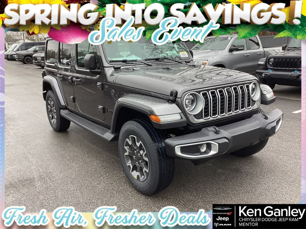 *Heated steering wheel, *ParkView Rear Back-Up Camera, 12.3 Touchscreen Display, 3.45 Overall Top Gear Ratio, 4-Wheel Disc Brakes, 4G LTE Wi-Fi Hot Spot, 8 Speakers, ABS brakes, Air Conditioning, Alloy wheels, Alpine Premium Audio System, AM/FM radio: SiriusXM with 360L, Apple CarPlay, Apple CarPlay/Android Auto, Auto High Beam Headlamp Control, Auto-Dimming Rear-View Mirror, Automatic temperature control, Aux Battery, Blind Spot and Cross Path Detection, Brake assist, Cloth Low-Back Bucket Seats, Compass, Connected Travel and Traffic Services, Connectivity - US/Canada, Delay-off headlights, Driver door bin, Driver vanity mirror, Dual front impact airbags, Dual front side impact airbags, Electronic Stability Control, Emergency communication system: Jeep Connect, For More Info, Call 800-643-2112, Front anti-roll bar, Front Bucket Seats, Front Center Armrest w/Storage, Front dual zone A/C, Front fog lights, Front License Plate Bracket, Front reading lights, Fully automatic headlights, Google Android Auto, GPS Navigation, Hard Seat Back, HD Radio, Heated door mirrors, Heated front seats, Heavy Duty Suspension with Gas Shocks, Illuminated entry, Integrated Center Stack Radio, Integrated Off-Road Camera, Integrated roll-over protection, Integrated Voice Command with Bluetooth®, Leather Wrapped Park Brake Handle, Leather Wrapped Shift Knob, Low tire pressure warning, McKinley Trimmed Seats, MOPAR All-Weather Floor Mats, Myflexcare Service Plan, Non-Lock Fuel Cap Without Discriminator, Occupant sensing airbag, Outside temperature display, Overhead airbag, Panic alarm, ParkSense Rear Park Assist System, Passenger door bin, Passenger vanity mirror, Power 4-Way Driver Lumbar Adjust, Power 4-Way Passenger Lumbar Adjust, Power Adjust 8-Way Driver Seat, Power Adjust 8-Way Front Passenger Seat, Power door mirrors, Power steering, Power Top Quarter Window Storage Bag, Power windows, Quick Order Package 24G, Radio data system, Radio: Uconnect 5 Navigation with 12.3 Display, Radio: Uconnect 5 with 12.3 Display, Rear anti-roll bar, Rear reading lights, Rear Window Defroster, Rear Window Wiper/Washer, Remote keyless entry, Removable Rear Quarter Windows, Sahara Popular Equipment Group, Security system, Side Steps, SiriusXM Radio Service, SiriusXM with 360L, Sky One-Touch Power Top, Speed control, Split folding rear seat, Steering wheel mounted audio controls, Stop-Start Dual Battery System, Tachometer, Telescoping steering wheel, Tilt steering wheel, Traction control, Trip computer, Universal Garage Door Opener, Variably intermittent wipers, Voltmeter, Wheels: 18 x 7.5 Machine/Painted Gray, Wheels: 18 x 7.5 Machine/Painted Gray. PRICING AVAILABLE TO ALL CUSTOMER!!! WE ARE ONE OF OHIO'S LEADING VOLUME DEALERSHIPS COME SEE OUR HUGE SELECTION AND UNMATCHED SAVINGS ONLY AT GANLEY VILLAGE CHRYSLER DODGE JEEP RAM FIAT OF PAINESVILLE, OH 44077.