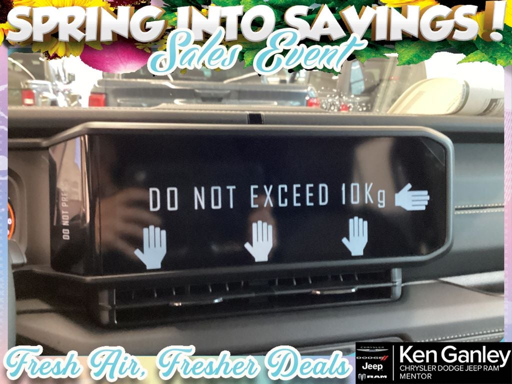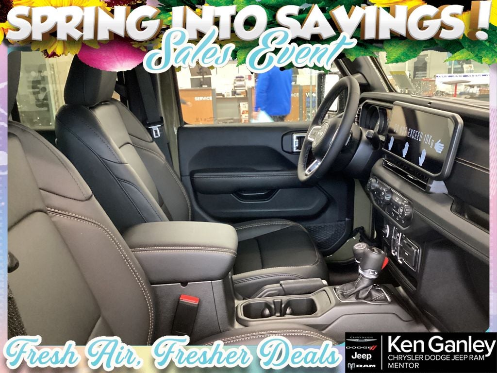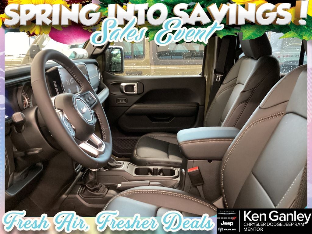 *Heated steering wheel, *ParkView Rear Back-Up Camera, 12.3 Touchscreen Display, 3.45 Overall Top Gear Ratio, 4-Wheel Disc Brakes, 4G LTE Wi-Fi Hot Spot, 8 Speakers, ABS brakes, Air Conditioning, Alloy wheels, Alpine Premium Audio System, AM/FM radio: SiriusXM with 360L, Apple CarPlay, Apple CarPlay/Android Auto, Auto High Beam Headlamp Control, Auto-Dimming Rear-View Mirror, Automatic temperature control, Aux Battery, Blind Spot and Cross Path Detection, Brake assist, Cloth Low-Back Bucket Seats, Compass, Connected Travel and Traffic Services, Connectivity - US/Canada, Delay-off headlights, Driver door bin, Driver vanity mirror, Dual front impact airbags, Dual front side impact airbags, Electronic Stability Control, Emergency communication system: Jeep Connect, For More Info, Call 800-643-2112, Front anti-roll bar, Front Bucket Seats, Front Center Armrest w/Storage, Front dual zone A/C, Front fog lights, Front License Plate Bracket, Front reading lights, Fully automatic headlights, Google Android Auto, GPS Navigation, Hard Seat Back, HD Radio, Heated door mirrors, Heated front seats, Heavy Duty Suspension with Gas Shocks, Illuminated entry, Integrated Center Stack Radio, Integrated Off-Road Camera, Integrated roll-over protection, Integrated Voice Command with Bluetooth®, Leather Wrapped Park Brake Handle, Leather Wrapped Shift Knob, Low tire pressure warning, McKinley Trimmed Seats, MOPAR All-Weather Floor Mats, Myflexcare Service Plan, Non-Lock Fuel Cap Without Discriminator, Occupant sensing airbag, Outside temperature display, Overhead airbag, Panic alarm, ParkSense Rear Park Assist System, Passenger door bin, Passenger vanity mirror, Power 4-Way Driver Lumbar Adjust, Power 4-Way Passenger Lumbar Adjust, Power Adjust 8-Way Driver Seat, Power Adjust 8-Way Front Passenger Seat, Power door mirrors, Power steering, Power Top Quarter Window Storage Bag, Power windows, Quick Order Package 24G, Radio data system, Radio: Uconnect 5 Navigation with 12.3 Display, Radio: Uconnect 5 with 12.3 Display, Rear anti-roll bar, Rear reading lights, Rear Window Defroster, Rear Window Wiper/Washer, Remote keyless entry, Removable Rear Quarter Windows, Sahara Popular Equipment Group, Security system, Side Steps, SiriusXM Radio Service, SiriusXM with 360L, Sky One-Touch Power Top, Speed control, Split folding rear seat, Steering wheel mounted audio controls, Stop-Start Dual Battery System, Tachometer, Telescoping steering wheel, Tilt steering wheel, Traction control, Trip computer, Universal Garage Door Opener, Variably intermittent wipers, Voltmeter, Wheels: 18 x 7.5 Machine/Painted Gray, Wheels: 18 x 7.5 Machine/Painted Gray. PRICING AVAILABLE TO ALL CUSTOMER!!! WE ARE ONE OF OHIO'S LEADING VOLUME DEALERSHIPS COME SEE OUR HUGE SELECTION AND UNMATCHED SAVINGS ONLY AT GANLEY VILLAGE CHRYSLER DODGE JEEP RAM FIAT OF PAINESVILLE, OH 44077.