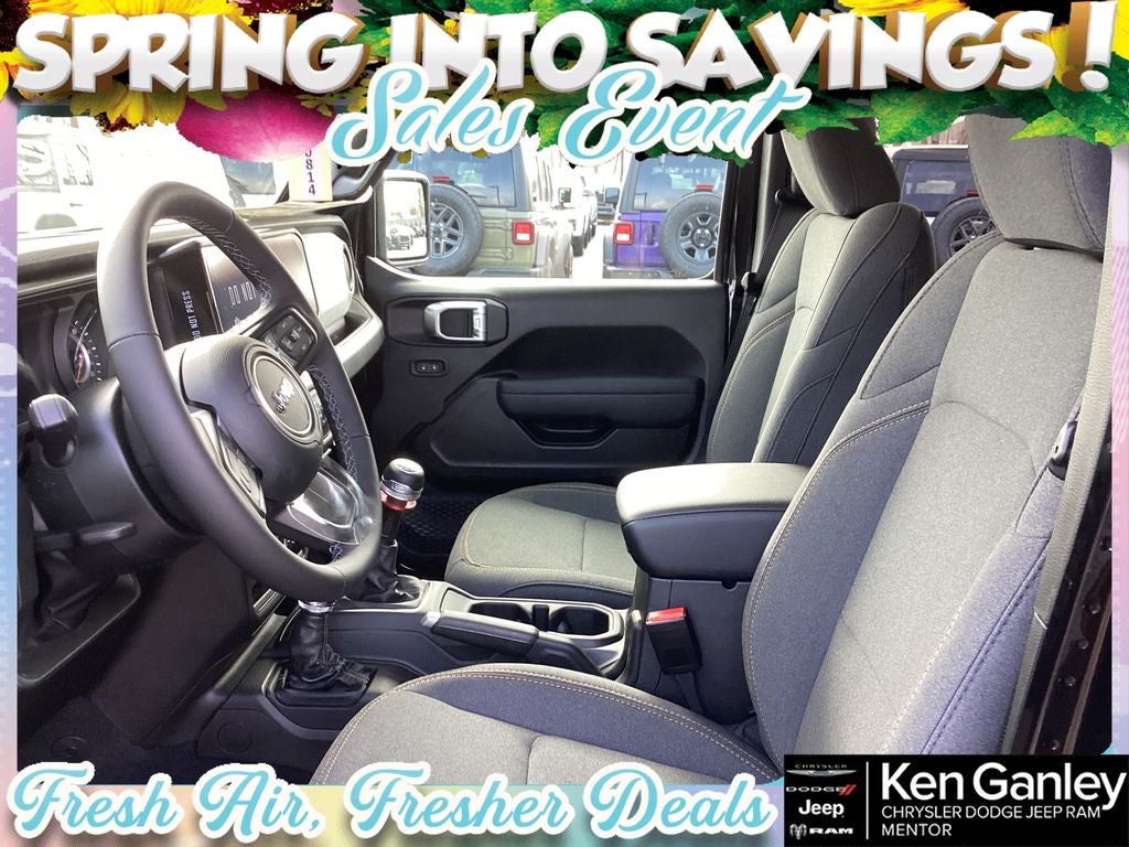 *ParkView Rear Back-Up Camera, 12.3 Touchscreen Display, 2-Door Passive Entry, Front Door Locks, 3.45 Overall Top Gear Ratio, 4-Wheel Disc Brakes, 4G LTE Wi-Fi Hot Spot, 8 Speakers, ABS brakes, Advanced Brake Assist, Air Conditioning, Air Conditioning with Auto Temp Control, Air Filtering, AM/FM radio: SiriusXM with 360L, Apple CarPlay, Apple CarPlay/Android Auto, Automatic Headlamps, Aux Battery, Black 3-Piece Hard Top, Brake assist, Cluster 7.0 TFT Color Display, Compass, Connectivity - US/Canada, Convenience Group, Corning Gorilla Glass, Deep Tint Sunscreen Windows, Delay-off headlights, Driver door bin, Driver vanity mirror, Dual front impact airbags, Dual front side impact airbags, Electronic Stability Control, Emergency/Assistance Call, Enhanced Adaptive Cruise Control, For More Info, Call 800-643-2112, Freedom Panel Storage Bag, Front anti-roll bar, Front Bucket Seats, Front Center Armrest w/Storage, Front fog lights, Front LED Fog Lamps, Front reading lights, Full Speed Forward Collision Warning Plus, Google Android Auto, Heated Front Seats, Heated Steering Wheel, Illuminated entry, Integrated Center Stack Radio, Integrated roll-over protection, LED Headlamp and Fog Lamp Group, LED Premium Reflector Headlamps, Low tire pressure warning, MOPAR All-Weather Floor Mats, Myflexcare Service Plan, No Soft Top, Non-Lock Fuel Cap Without Discriminator, Normal Duty Suspension, Occupant sensing airbag, Outside temperature display, Overhead airbag, Panic alarm, Passenger door bin, Passenger vanity mirror, Power Heated Mirrors, Power steering, Power windows, Premium Wrapped Steering Wheel, Quick Order Package 23S Sport S, Radio data system, Radio: Uconnect 5 with 12.3 Display, Rear anti-roll bar, Rear reading lights, Rear Window Defroster, Rear Window Wiper/Washer, Remote keyless entry, Security Alarm, SiriusXM Radio Service, SiriusXM with 360L, Speed control, Split folding rear seat, Steering wheel mounted audio controls, Stop-Start Dual Battery System, Sun Visors with Illuminated Vanity Mirrors, Tachometer, Telescoping steering wheel, Tilt steering wheel, Traction control, Trip computer, Universal Garage Door Opener, Variably intermittent wipers, Wheels: 17 x 7.5 Black Steel Styled, Wheels: 17 x 7.5 Gray. PRICING AVAILABLE TO ALL CUSTOMER!!! WE ARE ONE OF OHIO'S LEADING VOLUME DEALERSHIPS COME SEE OUR HUGE SELECTION AND UNMATCHED SAVINGS ONLY AT GANLEY VILLAGE CHRYSLER DODGE JEEP RAM FIAT OF PAINESVILLE, OH 44077.