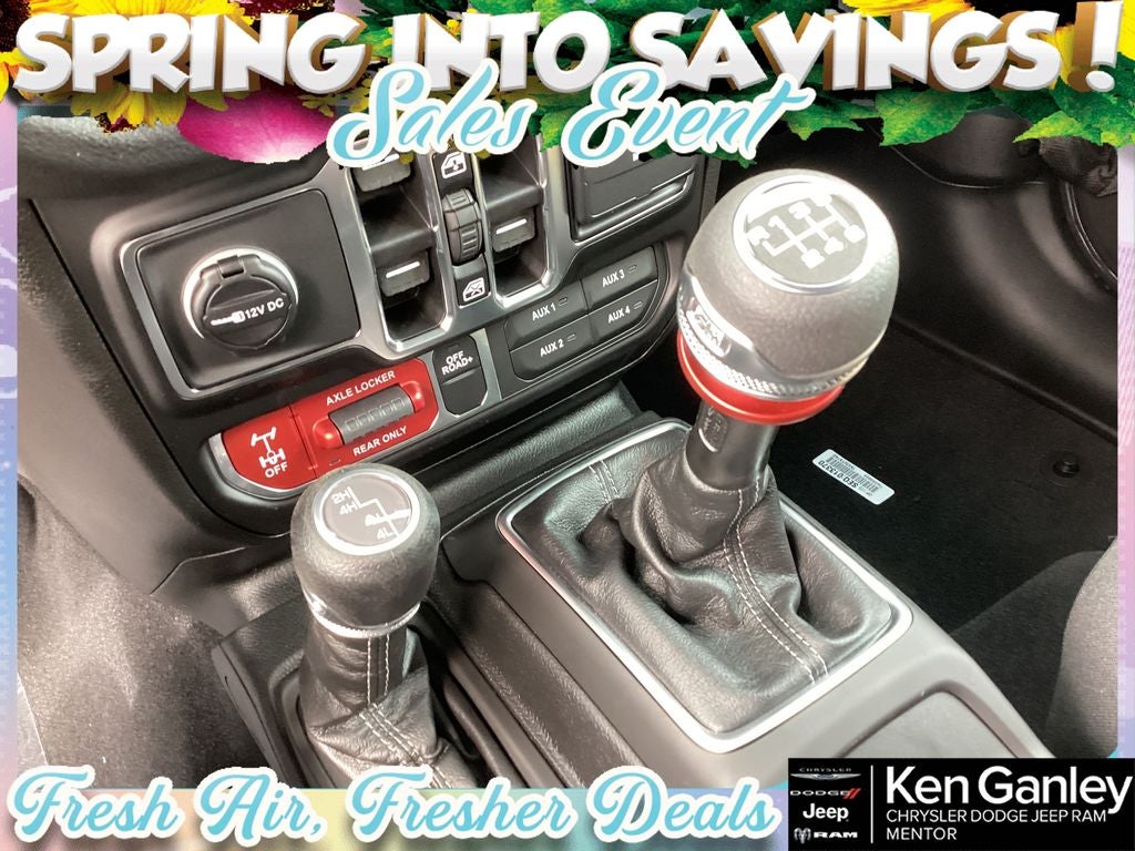 *ParkView Rear Back-Up Camera, 12.3 Touchscreen Display, 2-Door Passive Entry, Front Door Locks, 4-Wheel Disc Brakes, 4-Wheel Drive Swing Gate Decal, 4G LTE Wi-Fi Hot Spot, 7 and 4 Pin Wiring Harness, 8 Speakers, ABS brakes, Advanced Brake Assist, Air Conditioning, Air Conditioning with Auto Temp Control, Air Filtering, AM/FM radio: SiriusXM with 360L, Apple CarPlay, Apple CarPlay/Android Auto, Automatic Headlamps, Aux Battery, Auxiliary Switches, Black Grille with Gloss Black Rings, Brake assist, Class II Receiver Hitch, Cluster 7.0 TFT Color Display, Compass, Connectivity - US/Canada, Convenience Group, Conventional Differential Front Axle, Corning Gorilla Glass, Dana M210 Wide HD Tube Front Axle, Dana M220 Wide Rear Axle, Daytime Running Lamps LED Accents, Deep Tint Sunscreen Windows, Delay-off headlights, Driver door bin, Driver vanity mirror, Dual front impact airbags, Dual front side impact airbags, E-Locker Rear Axle, Electronic Stability Control, Emergency/Assistance Call, Enhanced Adaptive Cruise Control, For More Info, Call 800-643-2112, Front anti-roll bar, Front Bucket Seats, Front Center Armrest w/Storage, Front fog lights, Front LED Fog Lamps, Front reading lights, Full Speed Forward Collision Warning Plus, Google Android Auto, Heated Front Seats, Heated Steering Wheel, Illuminated entry, Increased Travel Export Tuned Suspension, Injection Molded Black Rear Bumper, Integrated Center Stack Radio, Integrated roll-over protection, LED Premium Reflector Headlamps, Low tire pressure warning, Mold in Color Bumper with Gloss Black, Molded in Color Rubicon Highline Flare, MOPAR All-Weather Floor Mats, Myflexcare Service Plan, Non-Lock Fuel Cap Without Discriminator, Normal Duty Suspension, Occupant sensing airbag, Off-Road Plus Mode, Outside temperature display, Overhead airbag, Panic alarm, Passenger door bin, Passenger vanity mirror, Power Heated Mirrors, Power steering, Power Top Quarter Window Storage Bag, Power windows, Premium Wrapped Steering Wheel, Quick Order Package 23W Willys, Radio data system, Radio: Uconnect 5 with 12.3 Display, Rear anti-roll bar, Rear reading lights, Rear Window Defroster, Rear Window Wiper/Washer, Remote keyless entry, Removable Rear Quarter Windows, Security Alarm, SiriusXM Radio Service, SiriusXM with 360L, Sky One-Touch Power Top, Speed control, Split folding rear seat, Steering wheel mounted audio controls, Stop-Start Dual Battery System, Sun Visors with Illuminated Vanity Mirrors, Tachometer, Telescoping steering wheel, Tilt steering wheel, Traction control, Trip computer, Universal Garage Door Opener, Variably intermittent wipers, Wheels: 17 x 7.5 Black Steel Styled, Wheels: 17 x 7.5 Painted Black, Willys Hood Decal. PRICING AVAILABLE TO ALL CUSTOMER!!! WE ARE ONE OF OHIO'S LEADING VOLUME DEALERSHIPS COME SEE OUR HUGE SELECTION AND UNMATCHED SAVINGS ONLY AT GANLEY VILLAGE CHRYSLER DODGE JEEP RAM FIAT OF PAINESVILLE, OH 44077.