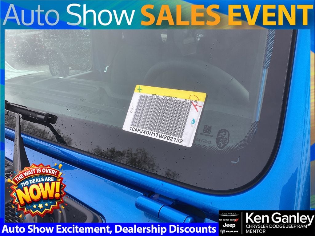*ParkView Rear Back-Up Camera, 12.3 Touchscreen Display, 2-Door Passive Entry, Front Door Locks, 4-Wheel Disc Brakes, 4-Wheel Drive Swing Gate Decal, 4G LTE Wi-Fi Hot Spot, 7 and 4 Pin Wiring Harness, 8 Speakers, ABS brakes, Advanced Brake Assist, Air Conditioning, Air Conditioning with Auto Temp Control, Air Filtering, AM/FM radio: SiriusXM with 360L, Apple CarPlay, Apple CarPlay/Android Auto, Automatic Headlamps, Aux Battery, Auxiliary Switches, Black Grille with Gloss Black Rings, Brake assist, Class II Receiver Hitch, Cluster 7.0 TFT Color Display, Compass, Connectivity - US/Canada, Convenience Group, Conventional Differential Front Axle, Corning Gorilla Glass, Dana M210 Wide HD Tube Front Axle, Dana M220 Wide Rear Axle, Daytime Running Lamps LED Accents, Deep Tint Sunscreen Windows, Delay-off headlights, Driver door bin, Driver vanity mirror, Dual front impact airbags, Dual front side impact airbags, E-Locker Rear Axle, Electronic Stability Control, Emergency/Assistance Call, Enhanced Adaptive Cruise Control, For More Info, Call 800-643-2112, Front anti-roll bar, Front Bucket Seats, Front Center Armrest w/Storage, Front fog lights, Front LED Fog Lamps, Front reading lights, Full Speed Forward Collision Warning Plus, Google Android Auto, Heated Front Seats, Heated Steering Wheel, Illuminated entry, Injection Molded Black Rear Bumper, Integrated Center Stack Radio, Integrated roll-over protection, LED Premium Reflector Headlamps, Low tire pressure warning, Mold in Color Bumper with Gloss Black, Molded in Color Rubicon Highline Flare, MOPAR All-Weather Floor Mats, Myflexcare Service Plan, Non-Lock Fuel Cap Without Discriminator, Normal Duty Suspension, Occupant sensing airbag, Off-Road Plus Mode, Outside temperature display, Overhead airbag, Panic alarm, Passenger door bin, Passenger vanity mirror, Power Dome Dual Vented Hood, Power Heated Mirrors, Power steering, Power Top Quarter Window Storage Bag, Power windows, Premium Wrapped Steering Wheel, Quick Order Package 22W Willys, Radio data system, Radio: Uconnect 5 with 12.3 Display, Rear anti-roll bar, Rear reading lights, Rear Window Defroster, Rear Window Wiper/Washer, Remote keyless entry, Removable Rear Quarter Windows, Security Alarm, SiriusXM Radio Service, SiriusXM with 360L, Sky One-Touch Power Top, Speed control, Split folding rear seat, Steel Power Dome Hood Package, Steering wheel mounted audio controls, Stop-Start Dual Battery System, Sun Visors with Illuminated Vanity Mirrors, Tachometer, Telescoping steering wheel, Tilt steering wheel, Traction control, Trip computer, Universal Garage Door Opener, Variably intermittent wipers, Wheels: 17 x 7.5 Black Steel Styled, Wheels: 17 x 7.5 Painted Black, Willy's Suspension, Willys Hood Decal. PRICING AVAILABLE TO ALL CUSTOMER!!! WE ARE ONE OF OHIO'S LEADING VOLUME DEALERSHIPS COME SEE OUR HUGE SELECTION AND UNMATCHED SAVINGS ONLY AT GANLEY VILLAGE CHRYSLER DODGE JEEP RAM FIAT OF PAINESVILLE, OH 44077.