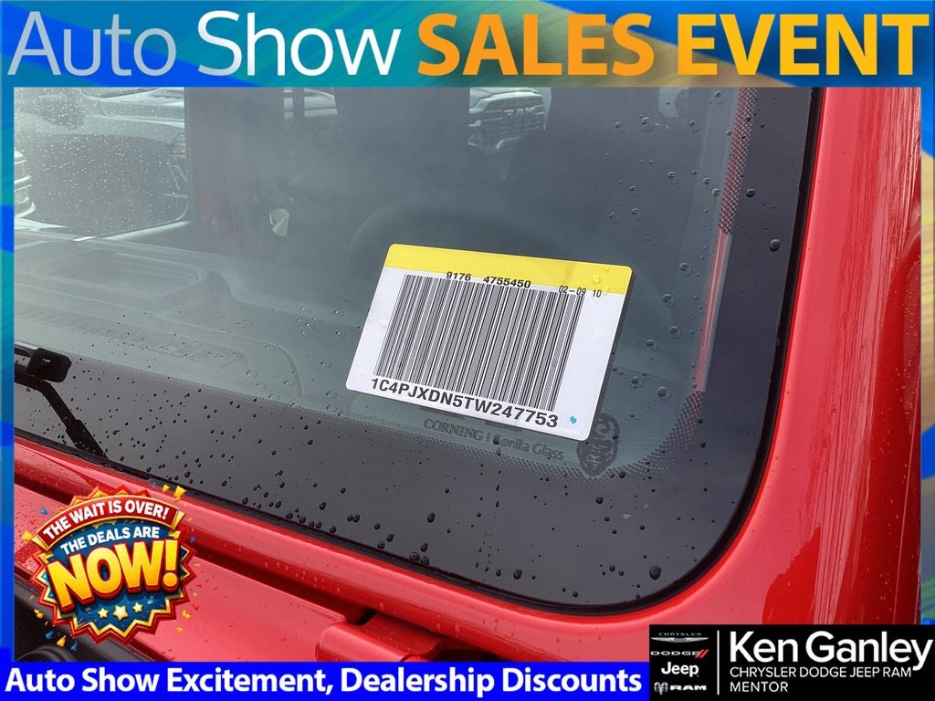 *ParkView Rear Back-Up Camera, 12.3 Touchscreen Display, 2-Door Passive Entry, Front Door Locks, 4-Wheel Disc Brakes, 4-Wheel Drive Swing Gate Decal, 4G LTE Wi-Fi Hot Spot, 7 and 4 Pin Wiring Harness, 8 Speakers, ABS brakes, Advanced Brake Assist, Air Conditioning, Air Conditioning with Auto Temp Control, Air Filtering, AM/FM radio: SiriusXM with 360L, Apple CarPlay, Apple CarPlay/Android Auto, Automatic Headlamps, Aux Battery, Auxiliary Switches, Black Grille with Gloss Black Rings, Brake assist, Class II Receiver Hitch, Cluster 7.0 TFT Color Display, Compass, Connectivity - US/Canada, Convenience Group, Conventional Differential Front Axle, Corning Gorilla Glass, Dana M210 Wide HD Tube Front Axle, Dana M220 Wide Rear Axle, Daytime Running Lamps LED Accents, Deep Tint Sunscreen Windows, Delay-off headlights, Driver door bin, Driver vanity mirror, Dual front impact airbags, Dual front side impact airbags, E-Locker Rear Axle, Electronic Stability Control, Emergency/Assistance Call, Enhanced Adaptive Cruise Control, For More Info, Call 800-643-2112, Front anti-roll bar, Front Bucket Seats, Front Center Armrest w/Storage, Front fog lights, Front LED Fog Lamps, Front reading lights, Full Speed Forward Collision Warning Plus, Google Android Auto, Heated Front Seats, Heated Steering Wheel, Illuminated entry, Injection Molded Black Rear Bumper, Integrated Center Stack Radio, Integrated roll-over protection, LED Premium Reflector Headlamps, Low tire pressure warning, Mold in Color Bumper with Gloss Black, Molded in Color Rubicon Highline Flare, MOPAR All-Weather Floor Mats, Myflexcare Service Plan, Non-Lock Fuel Cap Without Discriminator, Normal Duty Suspension, Occupant sensing airbag, Off-Road Plus Mode, Outside temperature display, Overhead airbag, Panic alarm, Passenger door bin, Passenger vanity mirror, Power Dome Dual Vented Hood, Power Heated Mirrors, Power steering, Power Top Quarter Window Storage Bag, Power windows, Premium Wrapped Steering Wheel, Quick Order Package 22W Willys, Radio data system, Radio: Uconnect 5 with 12.3 Display, Rear anti-roll bar, Rear reading lights, Rear Window Defroster, Rear Window Wiper/Washer, Remote keyless entry, Removable Rear Quarter Windows, Security Alarm, SiriusXM Radio Service, SiriusXM with 360L, Sky One-Touch Power Top, Speed control, Split folding rear seat, Steel Power Dome Hood Package, Steering wheel mounted audio controls, Stop-Start Dual Battery System, Sun Visors with Illuminated Vanity Mirrors, Tachometer, Telescoping steering wheel, Tilt steering wheel, Traction control, Trip computer, Universal Garage Door Opener, Variably intermittent wipers, Wheels: 17 x 7.5 Black Steel Styled, Wheels: 17 x 7.5 Painted Black, Willy's Suspension, Willys Hood Decal. PRICING AVAILABLE TO ALL CUSTOMER!!! WE ARE ONE OF OHIO'S LEADING VOLUME DEALERSHIPS COME SEE OUR HUGE SELECTION AND UNMATCHED SAVINGS ONLY AT GANLEY VILLAGE CHRYSLER DODGE JEEP RAM FIAT OF PAINESVILLE, OH 44077.