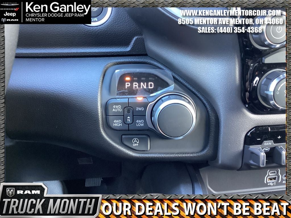*ParkView Rear Back-Up Camera, 115V Auxiliary Power Outlet, 2nd Row in Floor Storage Bins, 3 Rear Seat Head Restraints, 4 Way Front Headrests, 4-Wheel Disc Brakes, 400W Inverter, 48V Belt Starter Generator, 4G LTE Wi-Fi Hot Spot, 6 Speakers, ABS brakes, Air Conditioning, Alloy wheels, AM/FM radio, Apple CarPlay, Apple CarPlay/Android Auto, Auto High-beam Headlights, Auto Power-Folding Mirrors, Auto-Dimming Exterior Driver Mirror, Auto-Dimming Rear-View Mirror, Big Horn Level 1 Equipment Group, Black Exterior Mirrors, Black Premium Power Mirrors, Body Color Fender Flares, Brake assist, Bucket Seats, Bumpers: chrome, Center Console Parts Module, Cloth Bucket Seats, Compass, Connectivity - US/Canada, Convex Wide-Angle Exterior Mirror Insert, Delay-off headlights, Deluxe Cloth Bucket Seats, Driver door bin, Dual front impact airbags, Dual front side impact airbags, Electronic Stability Control, Exterior Mirrors Courtesy Lamps, Exterior Mirrors with Heating Element, Exterior Mirrors with Supplemental Signals, Front anti-roll bar, Front Bucket Seats, Front Center Armrest w/Storage, Front fog lights, Front License Plate Bracket, Front reading lights, Front Seat Back Map Pockets, Front wheel independent suspension, Full Length Floor Console, Fully automatic headlights, Global Telematics Box Module, Glove Box Lamp, Google Android Auto, GPS Antenna Input, Heated door mirrors, Heated Front Seats, Heated Steering Wheel, Illuminated entry, Integrated Center Stack Radio, Integrated Voice Command with Bluetooth®, Leather Wrapped Steering Wheel, Low tire pressure warning, Manual Adjust 4-Way Driver Seat, Manual Adjust 4-Way Front Passenger Seat, Manual Folding Exterior Mirrors, Manufacturer's Statement of Origin, MOPAR Front and Rear Rubber Floor Mats, MyFlexCare Service Plan, Occupant sensing airbag, Outside temperature display, Overhead airbag, Overhead console, Panic alarm, Passenger door bin, Passenger vanity mirror, Power 2-Way Driver Lumbar Adjust, Power Adjust 8-Way Driver Seat, Power Adjustable Pedals, Power door mirrors, Power steering, Power windows, Quick Order Package 23Z Big Horn, Radio data system, Radio: Uconnect 5 W with 8.4 Display, RAM Grille Badge - Chrome, Rear 60/40 Folding Seat, Rear anti-roll bar, Rear Center Armrest, Rear Dome with on/Off Switch Lamp, Rear Power Sliding Window, Rear step bumper, Rear Wheelhouse Liners, Rear Window Defroster, Remote keyless entry, SiriusXM Radio Service, SiriusXM Satellite Radio, Speed control, Steering Wheel Mounted Audio Controls, Sun Visors with Illuminated Vanity Mirrors, Supplier Part Tracking (J-1), Tachometer, Telescoping steering wheel, Tilt steering wheel, Traction control, Trailer Brake Control, Trip computer, Universal Garage Door Opener, USB Host Flip, Variably intermittent wipers, Voltmeter, Wheels: 18 x 8 Cast-Aluminum Painted. PRICING AVAILABLE TO ALL CUSTOMER!!! WE ARE ONE OF OHIO'S LEADING VOLUME DEALERSHIPS COME SEE OUR HUGE SELECTION AND UNMATCHED SAVINGS ONLY AT GANLEY VILLAGE CHRYSLER DODGE JEEP RAM FIAT OF PAINESVILLE, OH 44077.