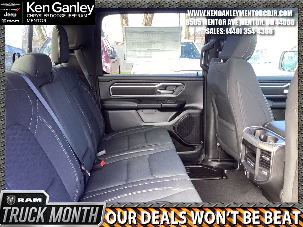 *ParkView Rear Back-Up Camera, 115V Auxiliary Power Outlet, 115V Auxiliary Rear Power Outlet, 12 Touchscreen Display, 2nd Row in Floor Storage Bins, 3 Rear Seat Head Restraints, 4 Way Front Headrests, 4-Wheel Disc Brakes, 400W Inverter, 48V Belt Starter Generator, 4G LTE Wi-Fi Hot Spot, 6 Speakers, 9 Amplified Speakers with Subwoofer, ABS brakes, Accent Color Door Handles, Accent Color Premium Power Mirrors, Accent Color Tailgate Handle, Air Conditioning, Air Conditioning ATC with Dual Zone Control, Alloy wheels, AM/FM radio, Anti-Spin Differential Rear Axle, Apple CarPlay, Apple CarPlay/Android Auto, Auto High-beam Headlights, Auto Power-Folding Mirrors, Auto-Dimming Exterior Driver Mirror, Auto-Dimming Rear-View Mirror, Big Horn Level 2 Equipment Group, Black Exterior Mirrors, Black Exterior Truck Badging, Black Headlamp Bezels, Black Interior Accents, Black Painted Exterior Mirrors Caps, Black Premium Power Mirrors, Black Tail Lamp Bezels, Body Color Fender Flares, Body Color Front Bumper, Body Color Rear Bumper with Step Pads, Brake assist, Bucket Seats, Bumpers: chrome, Center Console Parts Module, Cloth Bucket Seats, Cluster 12 TFT Color Display, Cluster 7.0 TFT Color Display, Compass, Configurable Drive Mode, Connected Travel and Traffic Services, Connectivity - US/Canada, Convex Wide-Angle Exterior Mirror Insert, Delay-off headlights, Deluxe Cloth Bucket Seats, Disassociated Touchscreen Display, Driver door bin, Dual Exhaust with Black Tips, Dual front impact airbags, Dual front side impact airbags, Electronic Stability Control, Exterior Mirrors Courtesy Lamps, Exterior Mirrors with Heating Element, Exterior Mirrors with Supplemental Signals, Front anti-roll bar, Front Bucket Seats, Front Center Armrest w/Storage, Front fog lights, Front License Plate Bracket, Front reading lights, Front Seat Back Map Pockets, Front wheel independent suspension, Full Length Floor Console, Fully automatic headlights, Global Telematics Box Module, Glove Box Lamp, Google Android Auto, GPS Antenna Input, GPS Navigation, Grille Black Surround Black Mesh, HD Radio, Heated door mirrors, Heated Front Seats, Heated Steering Wheel, Illuminated entry, Integrated Center Stack Radio, Integrated Voice Command with Bluetooth®, Leather Wrapped Steering Wheel, LED Dome Lamp with on/Off Switch, LED Footwell Lighting, Low tire pressure warning, Manual Adjust 4-Way Driver Seat, Manual Adjust 4-Way Front Passenger Seat, Manual Folding Exterior Mirrors, Manufacturer's Statement of Origin, Media Hub with 2 Charge Only USBs, MOPAR Front and Rear Rubber Floor Mats, MyFlexCare Service Plan, Night Edition, Occupant sensing airbag, Outside temperature display, Overhead airbag, Overhead console, Overhead LED Lamps, Panic alarm, Passenger door bin, Passenger vanity mirror, Power 2-Way Driver Lumbar Adjust, Power Adjust 8-Way Driver Seat, Power Adjustable Pedals, Power door mirrors, Power steering, Power windows, Premium Overhead Console, Quick Order Package 23Z Big Horn, Radio data system, Radio: Uconnect 5 Navigation with 12.0 Display, Radio: Uconnect 5 W with 8.4 Display, RAM Grille Badge - Black, RAM Grille Badge - Chrome, Rear 60/40 Folding Seat, Rear anti-roll bar, Rear Center Armrest, Rear Power Sliding Window, Rear step bumper, Rear Wheelhouse Liners, Rear Window Defroster, Remote keyless entry, Remote Tailgate Release, Security Alarm, SiriusXM Radio Service, SiriusXM with 360L, Speed control, Steering Wheel Mounted Audio Controls, Sun Visors with Illuminated Vanity Mirrors, Supplier Part Tracking (J-1), Tachometer, Telescoping steering wheel, Tilt steering wheel, Traction control, Trailer Brake Control, Trip computer, Universal Garage Door Opener, USB Host Flip, Variably intermittent wipers, Voltmeter, Wheels: 20 x 9.0 Aluminum Painted Clad. PRICING AVAILABLE TO ALL CUSTOMER!!! WE ARE ONE OF OHIO'S LEADING VOLUME DEALERSHIPS COME SEE OUR HUGE SELECTION AND U Price includes: $3500 - 2026 National Retail Bonus Cash . Exp. 04/30/2026