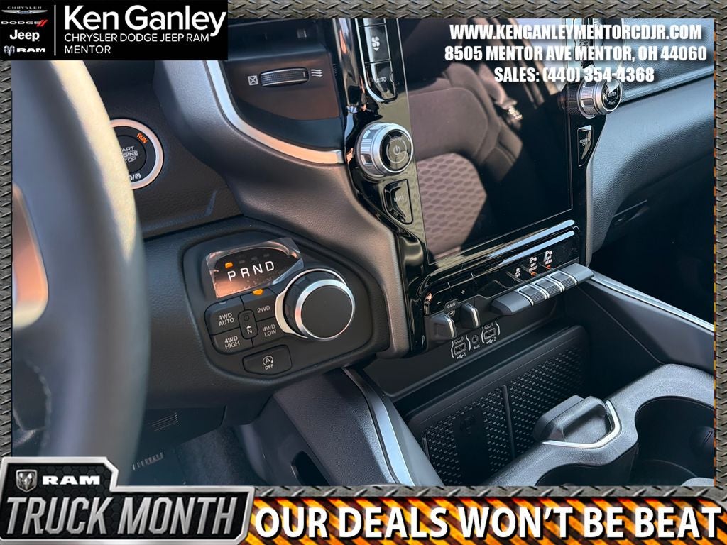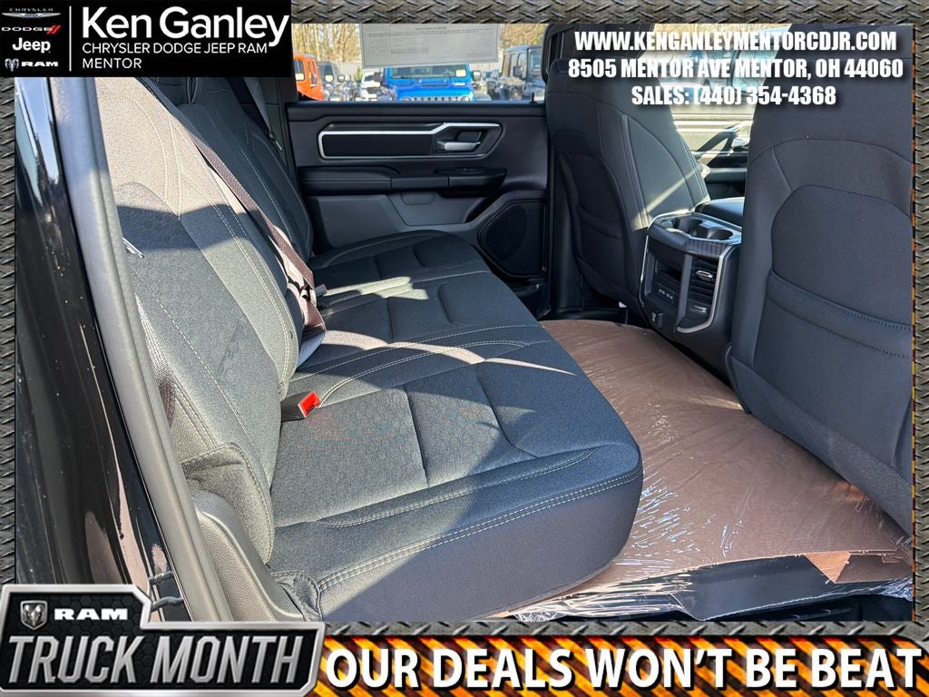 *ParkView Rear Back-Up Camera, 115V Auxiliary Power Outlet, 115V Auxiliary Rear Power Outlet, 12 Touchscreen Display, 2nd Row in Floor Storage Bins, 3 Rear Seat Head Restraints, 4 Way Front Headrests, 4-Wheel Disc Brakes, 400W Inverter, 48V Belt Starter Generator, 4G LTE Wi-Fi Hot Spot, 6 Speakers, 9 Amplified Speakers with Subwoofer, ABS brakes, Accent Color Door Handles, Accent Color Premium Power Mirrors, Accent Color Tailgate Handle, Air Conditioning, Air Conditioning ATC with Dual Zone Control, Alloy wheels, AM/FM radio, Anti-Spin Differential Rear Axle, Apple CarPlay, Apple CarPlay/Android Auto, Auto High-beam Headlights, Auto Power-Folding Mirrors, Auto-Dimming Exterior Driver Mirror, Auto-Dimming Rear-View Mirror, Big Horn Level 2 Equipment Group, Black Exterior Mirrors, Black Exterior Truck Badging, Black Headlamp Bezels, Black Interior Accents, Black Painted Exterior Mirrors Caps, Black Premium Power Mirrors, Black Tail Lamp Bezels, Body Color Fender Flares, Body Color Front Bumper, Body Color Rear Bumper with Step Pads, Brake assist, Bucket Seats, Bumpers: chrome, Center Console Parts Module, Cloth Bucket Seats, Cluster 12 TFT Color Display, Cluster 7.0 TFT Color Display, Compass, Configurable Drive Mode, Connected Travel and Traffic Services, Connectivity - US/Canada, Convex Wide-Angle Exterior Mirror Insert, Delay-off headlights, Deluxe Cloth Bucket Seats, Disassociated Touchscreen Display, Driver door bin, Dual Exhaust with Black Tips, Dual front impact airbags, Dual front side impact airbags, Electronic Stability Control, Exterior Mirrors Courtesy Lamps, Exterior Mirrors with Heating Element, Exterior Mirrors with Supplemental Signals, Front anti-roll bar, Front Bucket Seats, Front Center Armrest w/Storage, Front fog lights, Front License Plate Bracket, Front reading lights, Front Seat Back Map Pockets, Front wheel independent suspension, Full Length Floor Console, Fully automatic headlights, Global Telematics Box Module, Glove Box Lamp, Google Android Auto, GPS Antenna Input, GPS Navigation, Grille Black Surround Black Mesh, HD Radio, Heated door mirrors, Heated Front Seats, Heated Steering Wheel, Illuminated entry, Integrated Center Stack Radio, Integrated Voice Command with Bluetooth®, Leather Wrapped Steering Wheel, LED Dome Lamp with on/Off Switch, LED Footwell Lighting, Low tire pressure warning, Manual Adjust 4-Way Driver Seat, Manual Adjust 4-Way Front Passenger Seat, Manual Folding Exterior Mirrors, Media Hub with 2 Charge Only USBs, MOPAR Front and Rear Rubber Floor Mats, MOPAR Paint Protection Film, MyFlexCare Service Plan, Night Edition, Occupant sensing airbag, Outside temperature display, Overhead airbag, Overhead console, Overhead LED Lamps, Panic alarm, Passenger door bin, Passenger vanity mirror, Power 2-Way Driver Lumbar Adjust, Power Adjust 8-Way Driver Seat, Power Adjustable Pedals, Power door mirrors, Power steering, Power windows, Premium Overhead Console, Quick Order Package 21Z Big Horn, Radio data system, Radio: Uconnect 5 Navigation with 12.0 Display, Radio: Uconnect 5 W with 8.4 Display, RAM Grille Badge - Black, RAM Grille Badge - Chrome, Rear 60/40 Folding Seat, Rear anti-roll bar, Rear Center Armrest, Rear Power Sliding Window, Rear step bumper, Rear Wheelhouse Liners, Rear Window Defroster, Remote keyless entry, Remote Tailgate Release, Security Alarm, SiriusXM Radio Service, SiriusXM with 360L, Speed control, Steering Wheel Mounted Audio Controls, Sun Visors with Illuminated Vanity Mirrors, Supplier Part Tracking (J-1), Tachometer, Telescoping steering wheel, Tilt steering wheel, Traction control, Trailer Brake Control, Trip computer, Universal Garage Door Opener, USB Host Flip, Variably intermittent wipers, Voltmeter, Wheels: 20 x 9.0 Aluminum Painted Clad. PRICING AVAILABLE TO ALL CUSTOMER!!! WE ARE ONE OF OHIO'S LEADING VOLUME DEALERSHIPS COME SEE OUR HUGE SELECT Price includes: $3500 - 2026 National Retail Bonus Cash . Exp. 04/30/2026