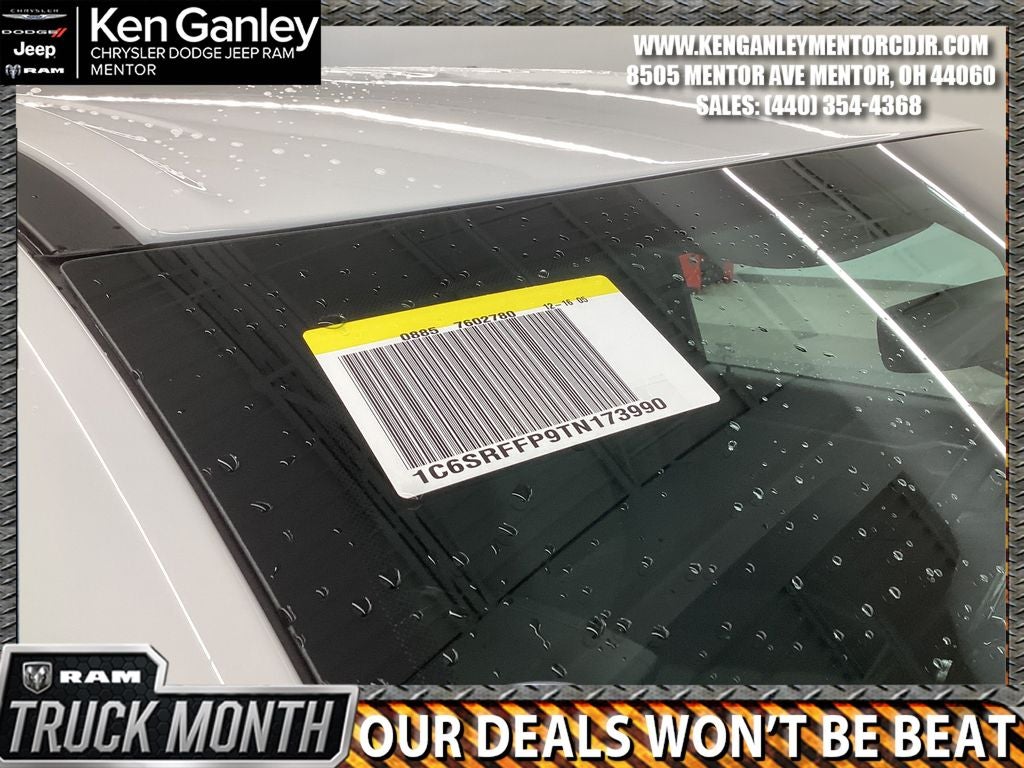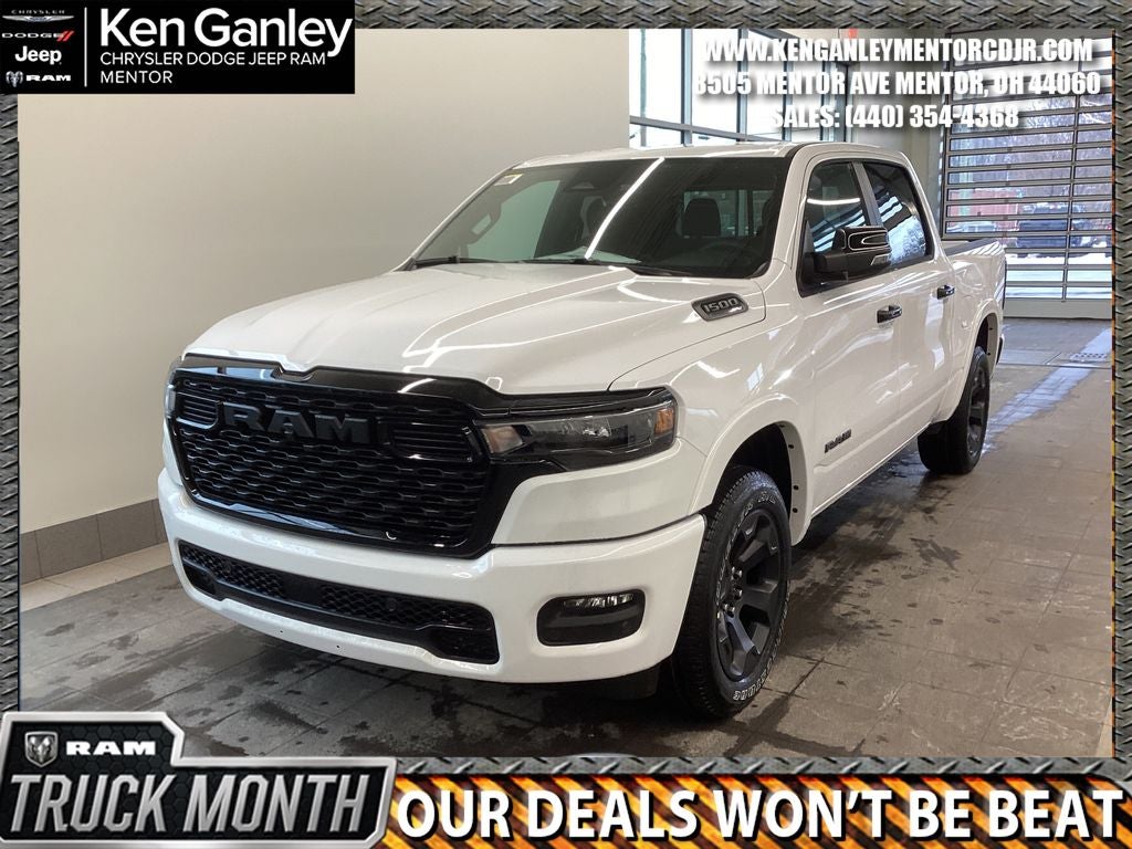 *ParkView Rear Back-Up Camera, 115V Auxiliary Power Outlet, 115V Auxiliary Rear Power Outlet, 12 Touchscreen Display, 2nd Row in Floor Storage Bins, 3 Rear Seat Head Restraints, 4 Way Front Headrests, 4-Wheel Disc Brakes, 400W Inverter, 48V Belt Starter Generator, 4G LTE Wi-Fi Hot Spot, 6 Speakers, 9 Amplified Speakers with Subwoofer, ABS brakes, Accent Color Door Handles, Accent Color Premium Power Mirrors, Accent Color Tailgate Handle, Air Conditioning, Air Conditioning ATC with Dual Zone Control, Alloy wheels, AM/FM radio, Anti-Spin Differential Rear Axle, Apple CarPlay, Apple CarPlay/Android Auto, Auto High-beam Headlights, Auto Power-Folding Mirrors, Auto-Dimming Exterior Driver Mirror, Auto-Dimming Rear-View Mirror, Big Horn Level 2 Equipment Group, Black Exterior Mirrors, Black Exterior Truck Badging, Black Headlamp Bezels, Black Interior Accents, Black Painted Exterior Mirrors Caps, Black Premium Power Mirrors, Black Tail Lamp Bezels, Body Color Fender Flares, Body Color Front Bumper, Body Color Rear Bumper with Step Pads, Brake assist, Bucket Seats, Bumpers: chrome, Center Console Parts Module, Cloth Bucket Seats, Cluster 12 TFT Color Display, Cluster 7.0 TFT Color Display, Compass, Configurable Drive Mode, Connected Travel and Traffic Services, Connectivity - US/Canada, Convex Wide-Angle Exterior Mirror Insert, Delay-off headlights, Deluxe Cloth Bucket Seats, Disassociated Touchscreen Display, Driver door bin, Dual Exhaust with Black Tips, Dual front impact airbags, Dual front side impact airbags, Electronic Stability Control, Exterior Mirrors Courtesy Lamps, Exterior Mirrors with Heating Element, Exterior Mirrors with Supplemental Signals, Front anti-roll bar, Front Bucket Seats, Front Center Armrest w/Storage, Front fog lights, Front License Plate Bracket, Front reading lights, Front Seat Back Map Pockets, Front wheel independent suspension, Full Length Floor Console, Fully automatic headlights, Global Telematics Box Module, Glove Box Lamp, Google Android Auto, GPS Antenna Input, GPS Navigation, Grille Black Surround Black Mesh, HD Radio, Heated door mirrors, Heated Front Seats, Heated Steering Wheel, Illuminated entry, Integrated Center Stack Radio, Integrated Voice Command with Bluetooth®, Leather Wrapped Steering Wheel, LED Dome Lamp with on/Off Switch, LED Footwell Lighting, Low tire pressure warning, Manual Adjust 4-Way Driver Seat, Manual Adjust 4-Way Front Passenger Seat, Manual Folding Exterior Mirrors, Manufacturer's Statement of Origin, Media Hub with 2 Charge Only USBs, MOPAR Front and Rear Rubber Floor Mats, MyFlexCare Service Plan, Night Edition, Occupant sensing airbag, Outside temperature display, Overhead airbag, Overhead console, Overhead LED Lamps, Panic alarm, Passenger door bin, Passenger vanity mirror, Power 2-Way Driver Lumbar Adjust, Power Adjust 8-Way Driver Seat, Power Adjustable Pedals, Power door mirrors, Power steering, Power windows, Premium Overhead Console, Quick Order Package 21Z Big Horn, Radio data system, Radio: Uconnect 5 Navigation with 12.0 Display, Radio: Uconnect 5 W with 8.4 Display, RAM Grille Badge - Black, RAM Grille Badge - Chrome, Rear 60/40 Folding Seat, Rear anti-roll bar, Rear Center Armrest, Rear Power Sliding Window, Rear step bumper, Rear Wheelhouse Liners, Rear Window Defroster, Remote keyless entry, Remote Tailgate Release, Security Alarm, SiriusXM Radio Service, SiriusXM with 360L, Speed control, Steering Wheel Mounted Audio Controls, Sun Visors with Illuminated Vanity Mirrors, Supplier Part Tracking (J-1), Tachometer, Telescoping steering wheel, Tilt steering wheel, Traction control, Trailer Brake Control, Trip computer, Universal Garage Door Opener, USB Host Flip, Variably intermittent wipers, Voltmeter, Wheels: 20 x Price includes: $3500 - 2026 National Retail Consumer Cash . Exp. 03/02/2026 $500 - 2026 Great Lakes BC Cleveland Auto Show Bonus Cash. Exp. 03/02/2026 $500 - 2026 Great Lakes BC Truck Month Bonus Cash . Exp. 03/02/2026