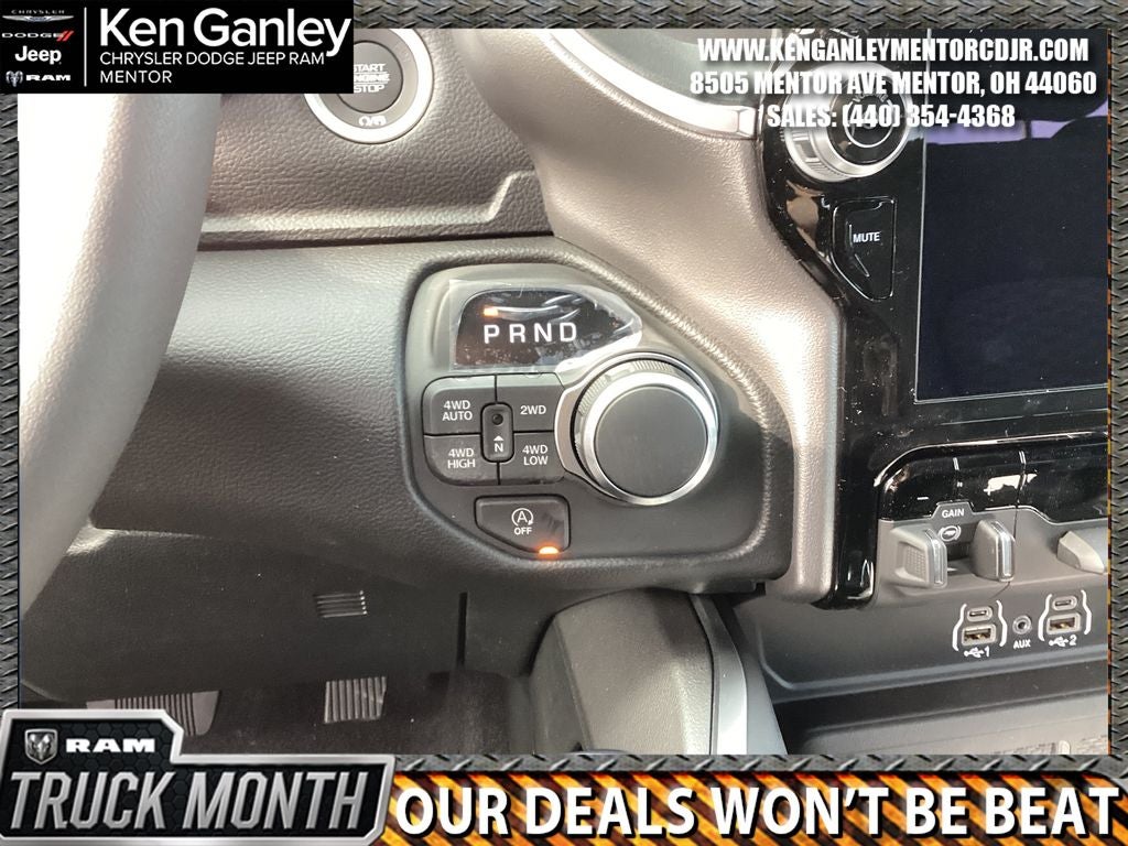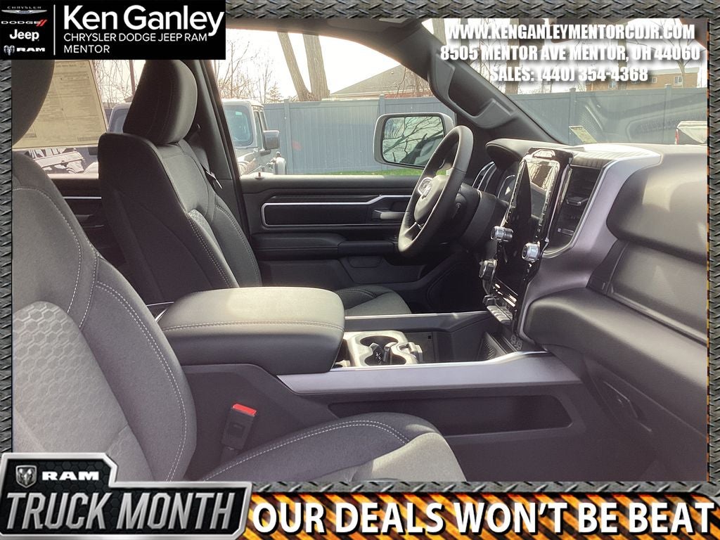*ParkView Rear Back-Up Camera, 115V Auxiliary Power Outlet, 115V Auxiliary Rear Power Outlet, 12 Touchscreen Display, 2nd Row in Floor Storage Bins, 3 Rear Seat Head Restraints, 4 Way Front Headrests, 4-Wheel Disc Brakes, 400W Inverter, 48V Belt Starter Generator, 4G LTE Wi-Fi Hot Spot, 6 Speakers, 9 Amplified Speakers with Subwoofer, ABS brakes, Accent Color Door Handles, Accent Color Premium Power Mirrors, Accent Color Tailgate Handle, Air Conditioning, Air Conditioning ATC with Dual Zone Control, Alloy wheels, AM/FM radio, Anti-Spin Differential Rear Axle, Apple CarPlay, Apple CarPlay/Android Auto, Auto High-beam Headlights, Auto Power-Folding Mirrors, Auto-Dimming Exterior Driver Mirror, Auto-Dimming Rear-View Mirror, Big Horn Level 2 Equipment Group, Black Exterior Mirrors, Black Exterior Truck Badging, Black Headlamp Bezels, Black Interior Accents, Black Painted Exterior Mirrors Caps, Black Premium Power Mirrors, Black Tail Lamp Bezels, Body Color Fender Flares, Body Color Front Bumper, Body Color Rear Bumper with Step Pads, Brake assist, Bucket Seats, Bumpers: chrome, Center Console Parts Module, Cloth Bucket Seats, Cluster 12 TFT Color Display, Cluster 7.0 TFT Color Display, Compass, Configurable Drive Mode, Connected Travel and Traffic Services, Connectivity - US/Canada, Convex Wide-Angle Exterior Mirror Insert, Delay-off headlights, Deluxe Cloth Bucket Seats, Disassociated Touchscreen Display, Driver door bin, Dual Exhaust with Black Tips, Dual front impact airbags, Dual front side impact airbags, Electronic Stability Control, Exterior Mirrors Courtesy Lamps, Exterior Mirrors with Heating Element, Exterior Mirrors with Supplemental Signals, Front anti-roll bar, Front Bucket Seats, Front Center Armrest w/Storage, Front fog lights, Front License Plate Bracket, Front reading lights, Front Seat Back Map Pockets, Front wheel independent suspension, Full Length Floor Console, Fully automatic headlights, Global Telematics Box Module, Glove Box Lamp, Google Android Auto, GPS Antenna Input, GPS Navigation, Grille Black Surround Black Mesh, HD Radio, Heated door mirrors, Heated Front Seats, Heated Steering Wheel, Illuminated entry, Integrated Center Stack Radio, Integrated Voice Command with Bluetooth®, Leather Wrapped Steering Wheel, LED Dome Lamp with on/Off Switch, LED Footwell Lighting, Low tire pressure warning, Manual Adjust 4-Way Driver Seat, Manual Adjust 4-Way Front Passenger Seat, Manual Folding Exterior Mirrors, Media Hub with 2 Charge Only USBs, MOPAR Front and Rear Rubber Floor Mats, MOPAR Paint Protection Film, MyFlexCare Service Plan, Night Edition, Occupant sensing airbag, Outside temperature display, Overhead airbag, Overhead console, Overhead LED Lamps, Panic alarm, Passenger door bin, Passenger vanity mirror, Power 2-Way Driver Lumbar Adjust, Power Adjust 8-Way Driver Seat, Power Adjustable Pedals, Power door mirrors, Power steering, Power windows, Premium Overhead Console, Quick Order Package 21Z Big Horn, Radio data system, Radio: Uconnect 5 Navigation with 12.0 Display, Radio: Uconnect 5 W with 8.4 Display, RAM Grille Badge - Black, RAM Grille Badge - Chrome, Rear 60/40 Folding Seat, Rear anti-roll bar, Rear Center Armrest, Rear Power Sliding Window, Rear step bumper, Rear Wheelhouse Liners, Rear Window Defroster, Remote keyless entry, Remote Tailgate Release, Security Alarm, SiriusXM Radio Service, SiriusXM with 360L, Speed control, Steering Wheel Mounted Audio Controls, Sun Visors with Illuminated Vanity Mirrors, Supplier Part Tracking (J-1), Tachometer, Telescoping steering wheel, Tilt steering wheel, Traction control, Trailer Brake Control, Trip computer, Universal Garage Door Opener, USB Host Flip, Variably intermittent wipers, Voltmeter, Wheels: 20 x 9.0 Aluminum Painted Clad. PRICING AVAILABLE TO ALL CUSTOMER!!! WE ARE ONE OF OHIO'S LEADING VOLUME DEALERSHIPS COME SEE OUR HUGE SELECT Price includes: $3500 - 2026 National Retail Bonus Cash . Exp. 04/30/2026