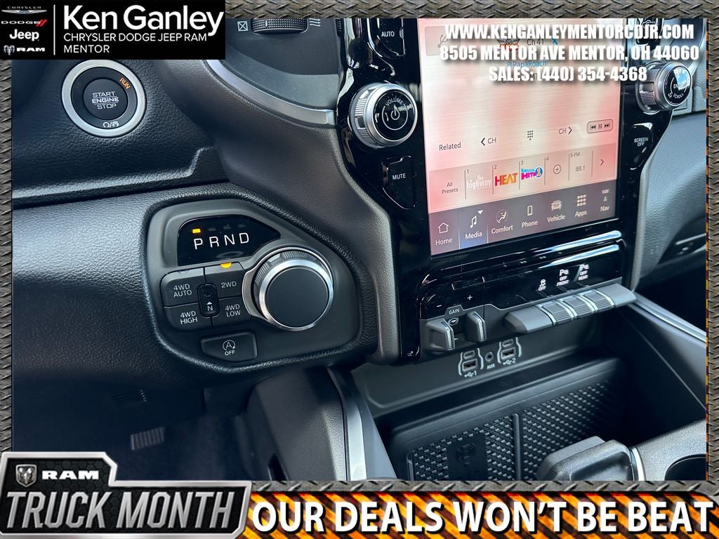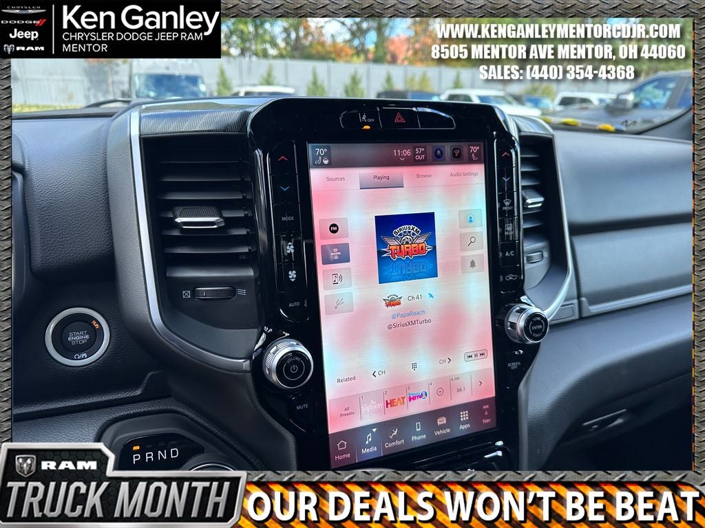 *ParkView Rear Back-Up Camera, 115V Auxiliary Power Outlet, 115V Auxiliary Rear Power Outlet, 12 Touchscreen Display, 2nd Row in Floor Storage Bins, 3 Rear Seat Head Restraints, 33 Gallon Fuel Tank, 4 Way Front Headrests, 4-Wheel Disc Brakes, 400W Inverter, 48V Belt Starter Generator, 4G LTE Wi-Fi Hot Spot, 6 Speakers, 9 Amplified Speakers with Subwoofer, ABS brakes, Accent Color Door Handles, Accent Color Premium Power Mirrors, Accent Color Tailgate Handle, Air Conditioning, Air Conditioning ATC with Dual Zone Control, Alloy wheels, AM/FM radio, Anti-Spin Differential Rear Axle, Apple CarPlay, Apple CarPlay/Android Auto, Auto High-beam Headlights, Auto Power-Folding Mirrors, Auto-Dimming Exterior Driver Mirror, Auto-Dimming Rear-View Mirror, Big Horn Level 2 Equipment Group, Black Exterior Mirrors, Black Exterior Truck Badging, Black Headlamp Bezels, Black Interior Accents, Black Painted Exterior Mirrors Caps, Black Premium Power Mirrors, Black Tail Lamp Bezels, Body Color Fender Flares, Body Color Front Bumper, Body Color Rear Bumper with Step Pads, Brake assist, Bucket Seats, Bumpers: chrome, Center Console Parts Module, Cloth Bucket Seats, Cluster 12 TFT Color Display, Cluster 7.0 TFT Color Display, Compass, Configurable Drive Mode, Connected Travel and Traffic Services, Connectivity - US/Canada, Convex Wide-Angle Exterior Mirror Insert, Delay-off headlights, Deluxe Cloth Bucket Seats, Disassociated Touchscreen Display, Dome Dual LED Reading Lamp, Driver door bin, Dual Exhaust with Black Tips, Dual front impact airbags, Dual front side impact airbags, Dual-Pane Panoramic Sunroof, Electronic Stability Control, Exterior Mirrors Courtesy Lamps, Exterior Mirrors with Heating Element, Exterior Mirrors with Supplemental Signals, Front anti-roll bar, Front Bucket Seats, Front Center Armrest w/Storage, Front fog lights, Front License Plate Bracket, Front reading lights, Front Seat Back Map Pockets, Front wheel independent suspension, Full Length Floor Console, Fully automatic headlights, Global Telematics Box Module, Glove Box Lamp, Google Android Auto, GPS Antenna Input, GPS Navigation, Grille Black Surround Black Mesh, HD Radio, Heated door mirrors, Heated Front Seats, Heated Steering Wheel, Illuminated entry, Integrated Center Stack Radio, Integrated Voice Command with Bluetooth®, Leather Wrapped Steering Wheel, LED Dome Lamp with on/Off Switch, LED Footwell Lighting, Low tire pressure warning, Manual Adjust 4-Way Driver Seat, Manual Adjust 4-Way Front Passenger Seat, Manual Folding Exterior Mirrors, Manufacturer's Statement of Origin, Media Hub with 2 Charge Only USBs, MOPAR Front and Rear Rubber Floor Mats, MyFlexCare Service Plan, Night Edition, Occupant sensing airbag, Outside temperature display, Overhead airbag, Overhead console, Overhead LED Lamps, Panic alarm, Passenger door bin, Passenger vanity mirror, Power 2-Way Driver Lumbar Adjust, Power Adjust 8-Way Driver Seat, Power Adjustable Pedals, Power door mirrors, Power steering, Power windows, Premium Overhead Console, Quick Order Package 27Z Big Horn, Radio data system, Radio: Uconnect 5 Navigation with 12.0 Display, Radio: Uconnect 5 W with 8.4 Display, RAM Grille Badge - Black, RAM Grille Badge - Chrome, Rear 60/40 Folding Seat, Rear anti-roll bar, Rear Center Armrest, Rear Power Sliding Window, Rear step bumper, Rear Wheelhouse Liners, Rear Window Defroster, Remote keyless entry, Remote Tailgate Release, Security Alarm, SiriusXM Radio Service, SiriusXM with 360L, Speed control, Steering Wheel Mounted Audio Controls, Sun Visors with Illuminated Vanity Mirrors, Supplier Part Tracking (J-1), Tachometer, Telescoping steering wheel, Tilt steering wheel, Traction control, Trailer Brake Control, Trip computer, Universal Garage Door Price includes: $3500 - 2026 National Retail Consumer Cash . Exp. 03/02/2026 $500 - 2026 Great Lakes BC Cleveland Auto Show Bonus Cash. Exp. 03/02/2026 $500 - 2026 Great Lakes BC Truck Month Bonus Cash . Exp. 03/02/2026