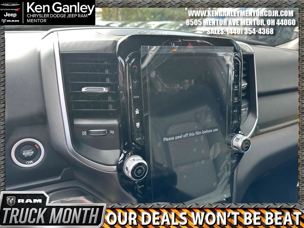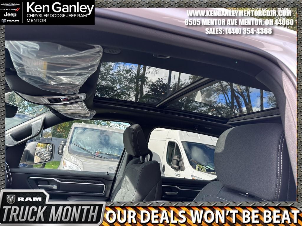 *ParkView Rear Back-Up Camera, 115V Auxiliary Power Outlet, 115V Auxiliary Rear Power Outlet, 12 Touchscreen Display, 2nd Row in Floor Storage Bins, 3 Rear Seat Head Restraints, 4 Way Front Headrests, 4-Wheel Disc Brakes, 400W Inverter, 48V Belt Starter Generator, 4G LTE Wi-Fi Hot Spot, 6 Speakers, 9 Amplified Speakers with Subwoofer, ABS brakes, Accent Color Door Handles, Accent Color Premium Power Mirrors, Accent Color Tailgate Handle, Air Conditioning, Air Conditioning ATC with Dual Zone Control, Alloy wheels, AM/FM radio, Anti-Spin Differential Rear Axle, Apple CarPlay, Apple CarPlay/Android Auto, Auto High-beam Headlights, Auto Power-Folding Mirrors, Auto-Dimming Exterior Driver Mirror, Auto-Dimming Rear-View Mirror, Big Horn Level 2 Equipment Group, Black Exterior Mirrors, Black Exterior Truck Badging, Black Headlamp Bezels, Black Interior Accents, Black Painted Exterior Mirrors Caps, Black Premium Power Mirrors, Black Tail Lamp Bezels, Body Color Fender Flares, Body Color Front Bumper, Body Color Rear Bumper with Step Pads, Brake assist, Bucket Seats, Bumpers: chrome, Center Console Parts Module, Cloth Bucket Seats, Cluster 12 TFT Color Display, Cluster 7.0 TFT Color Display, Compass, Configurable Drive Mode, Connected Travel and Traffic Services, Connectivity - US/Canada, Convex Wide-Angle Exterior Mirror Insert, Delay-off headlights, Deluxe Cloth Bucket Seats, Disassociated Touchscreen Display, Dome Dual LED Reading Lamp, Driver door bin, Dual Exhaust with Black Tips, Dual front impact airbags, Dual front side impact airbags, Dual-Pane Panoramic Sunroof, Electronic Stability Control, Exterior Mirrors Courtesy Lamps, Exterior Mirrors with Heating Element, Exterior Mirrors with Supplemental Signals, Front anti-roll bar, Front Bucket Seats, Front Center Armrest w/Storage, Front fog lights, Front License Plate Bracket, Front reading lights, Front Seat Back Map Pockets, Front wheel independent suspension, Full Length Floor Console, Fully automatic headlights, Global Telematics Box Module, Glove Box Lamp, Google Android Auto, GPS Antenna Input, GPS Navigation, Grille Black Surround Black Mesh, HD Radio, Heated door mirrors, Heated Front Seats, Heated Steering Wheel, Illuminated entry, Integrated Center Stack Radio, Integrated Voice Command with Bluetooth®, Leather Wrapped Steering Wheel, LED Dome Lamp with on/Off Switch, LED Footwell Lighting, Low tire pressure warning, Manual Adjust 4-Way Driver Seat, Manual Adjust 4-Way Front Passenger Seat, Manual Folding Exterior Mirrors, Manufacturer's Statement of Origin, Media Hub with 2 Charge Only USBs, MOPAR Front and Rear Rubber Floor Mats, MyFlexCare Service Plan, Night Edition, Occupant sensing airbag, Outside temperature display, Overhead airbag, Overhead console, Overhead LED Lamps, Panic alarm, Passenger door bin, Passenger vanity mirror, Power 2-Way Driver Lumbar Adjust, Power Adjust 8-Way Driver Seat, Power Adjustable Pedals, Power door mirrors, Power steering, Power windows, Premium Overhead Console, Quick Order Package 27Z Big Horn, Radio data system, Radio: Uconnect 5 Navigation with 12.0 Display, Radio: Uconnect 5 W with 8.4 Display, RAM Grille Badge - Black, RAM Grille Badge - Chrome, Rear 60/40 Folding Seat, Rear anti-roll bar, Rear Center Armrest, Rear Power Sliding Window, Rear step bumper, Rear Wheelhouse Liners, Rear Window Defroster, Remote keyless entry, Remote Tailgate Release, Security Alarm, SiriusXM Radio Service, SiriusXM with 360L, Speed control, Steering Wheel Mounted Audio Controls, Sun Visors with Illuminated Vanity Mirrors, Supplier Part Tracking (J-1), Tachometer, Telescoping steering wheel, Tilt steering wheel, Traction control, Trailer Brake Control, Trip computer, Universal Garage Door Opener, USB Host Flip Price includes: $3500 - 2026 National Retail Consumer Cash . Exp. 03/02/2026 $500 - 2026 Great Lakes BC Cleveland Auto Show Bonus Cash. Exp. 03/02/2026 $500 - 2026 Great Lakes BC Truck Month Bonus Cash . Exp. 03/02/2026