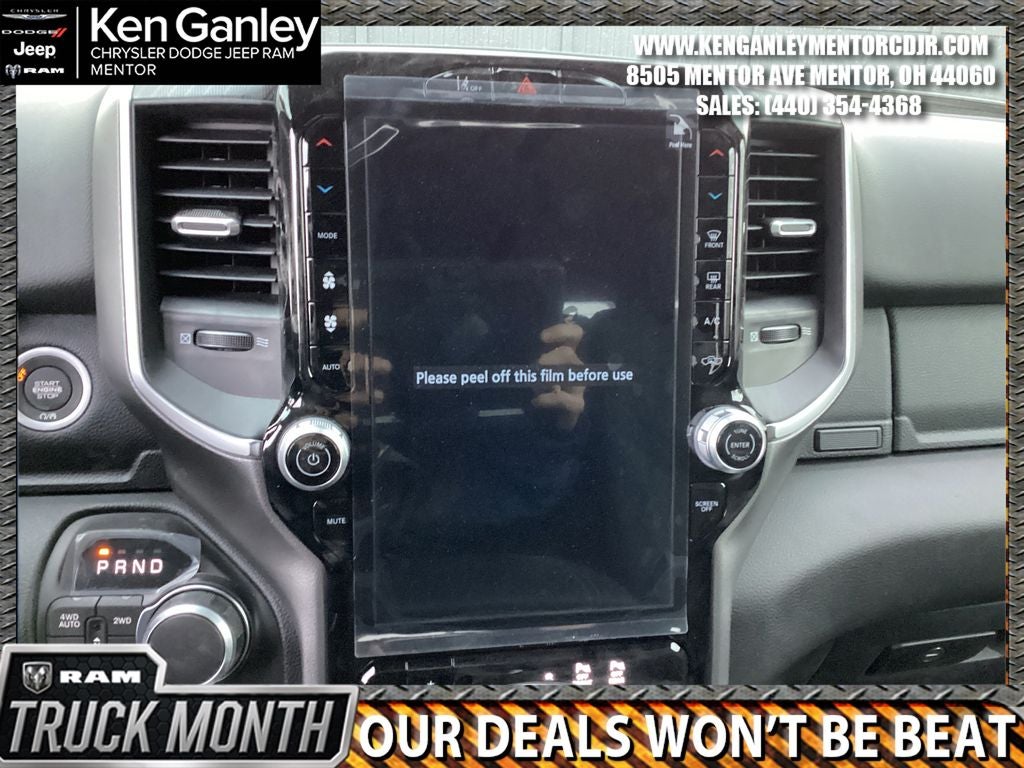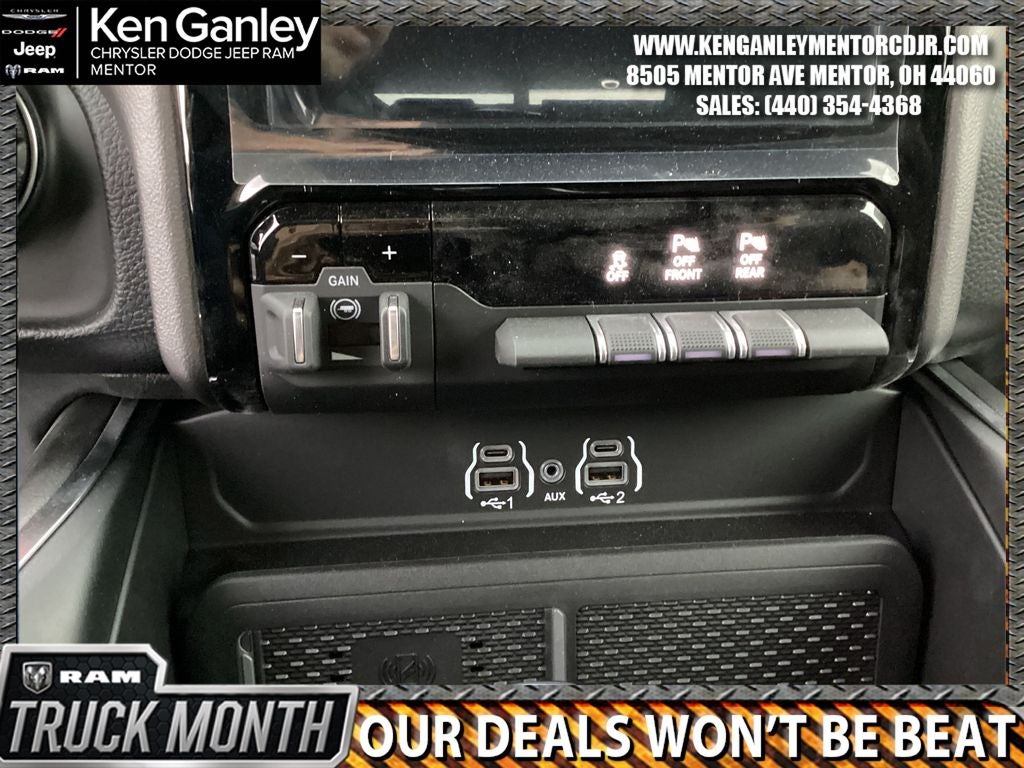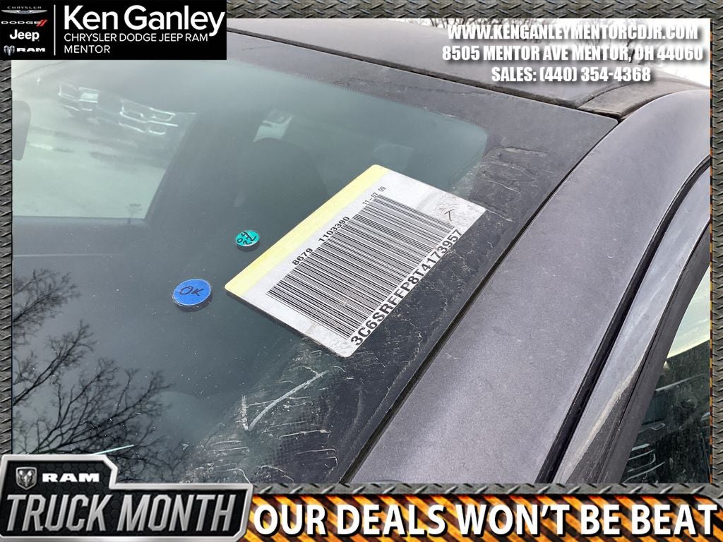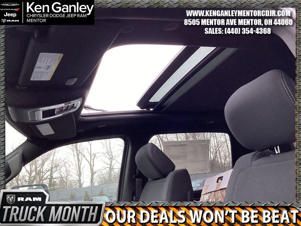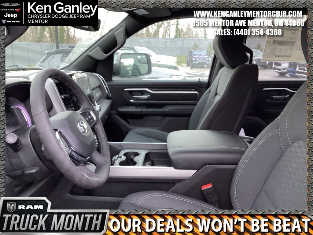 *ParkView Rear Back-Up Camera, 115V Auxiliary Power Outlet, 115V Auxiliary Rear Power Outlet, 12 Touchscreen Display, 2nd Row in Floor Storage Bins, 3 Rear Seat Head Restraints, 4 Way Front Headrests, 4-Wheel Disc Brakes, 400W Inverter, 48V Belt Starter Generator, 4G LTE Wi-Fi Hot Spot, 6 Speakers, 9 Amplified Speakers with Subwoofer, ABS brakes, Accent Color Door Handles, Accent Color Premium Power Mirrors, Accent Color Tailgate Handle, Air Conditioning, Air Conditioning ATC with Dual Zone Control, Alloy wheels, AM/FM radio, Anti-Spin Differential Rear Axle, Apple CarPlay, Apple CarPlay/Android Auto, Auto High-beam Headlights, Auto Power-Folding Mirrors, Auto-Dimming Exterior Driver Mirror, Auto-Dimming Rear-View Mirror, Big Horn Level 2 Equipment Group, Black Exterior Mirrors, Black Exterior Truck Badging, Black Headlamp Bezels, Black Interior Accents, Black Painted Exterior Mirrors Caps, Black Premium Power Mirrors, Black Tail Lamp Bezels, Body Color Fender Flares, Body Color Front Bumper, Body Color Rear Bumper with Step Pads, Brake assist, Bucket Seats, Bumpers: chrome, Center Console Parts Module, Cloth Bucket Seats, Cluster 12 TFT Color Display, Cluster 7.0 TFT Color Display, Compass, Configurable Drive Mode, Connected Travel and Traffic Services, Connectivity - US/Canada, Convex Wide-Angle Exterior Mirror Insert, Delay-off headlights, Deluxe Cloth Bucket Seats, Disassociated Touchscreen Display, Dome Dual LED Reading Lamp, Driver door bin, Dual Exhaust with Black Tips, Dual front impact airbags, Dual front side impact airbags, Dual-Pane Panoramic Sunroof, Electronic Stability Control, Exterior Mirrors Courtesy Lamps, Exterior Mirrors with Heating Element, Exterior Mirrors with Supplemental Signals, Front anti-roll bar, Front Bucket Seats, Front Center Armrest w/Storage, Front fog lights, Front License Plate Bracket, Front reading lights, Front Seat Back Map Pockets, Front wheel independent suspension, Full Length Floor Console, Fully automatic headlights, Global Telematics Box Module, Glove Box Lamp, Google Android Auto, GPS Antenna Input, GPS Navigation, Grille Black Surround Black Mesh, HD Radio, Heated door mirrors, Heated Front Seats, Heated Steering Wheel, Illuminated entry, Integrated Center Stack Radio, Integrated Voice Command with Bluetooth®, Leather Wrapped Steering Wheel, LED Dome Lamp with on/Off Switch, LED Footwell Lighting, Low tire pressure warning, Manual Adjust 4-Way Driver Seat, Manual Adjust 4-Way Front Passenger Seat, Manual Folding Exterior Mirrors, Manufacturer's Statement of Origin, Media Hub with 2 Charge Only USBs, MOPAR Front and Rear Rubber Floor Mats, MyFlexCare Service Plan, Night Edition, Occupant sensing airbag, Outside temperature display, Overhead airbag, Overhead console, Overhead LED Lamps, Panic alarm, Passenger door bin, Passenger vanity mirror, Power 2-Way Driver Lumbar Adjust, Power Adjust 8-Way Driver Seat, Power Adjustable Pedals, Power door mirrors, Power steering, Power windows, Premium Overhead Console, Quick Order Package 21Z Big Horn, Radio data system, Radio: Uconnect 5 Navigation with 12.0 Display, Radio: Uconnect 5 W with 8.4 Display, RAM Grille Badge - Black, RAM Grille Badge - Chrome, Rear 60/40 Folding Seat, Rear anti-roll bar, Rear Center Armrest, Rear Power Sliding Window, Rear step bumper, Rear Wheelhouse Liners, Rear Window Defroster, Remote keyless entry, Remote Tailgate Release, Security Alarm, SiriusXM Radio Service, SiriusXM with 360L, Speed control, Steering Wheel Mounted Audio Controls, Sun Visors with Illuminated Vanity Mirrors, Supplier Part Tracking (J-1), Tachometer, Telescoping steering wheel, Tilt steering wheel, Traction control, Trailer Brake Control, Trip computer, Universal Garage Door Opener, USB Host Flip, Variably intermittent wipers, Voltmeter, Wheels: 20 x 9.0 Aluminum Painted Clad. PRICING AVAILABLE TO ALL CUSTOMER!!! WE ARE ONE OF OHIO'S Price includes: $3500 - 2026 National Retail Consumer Cash . Exp. 02/02/2026