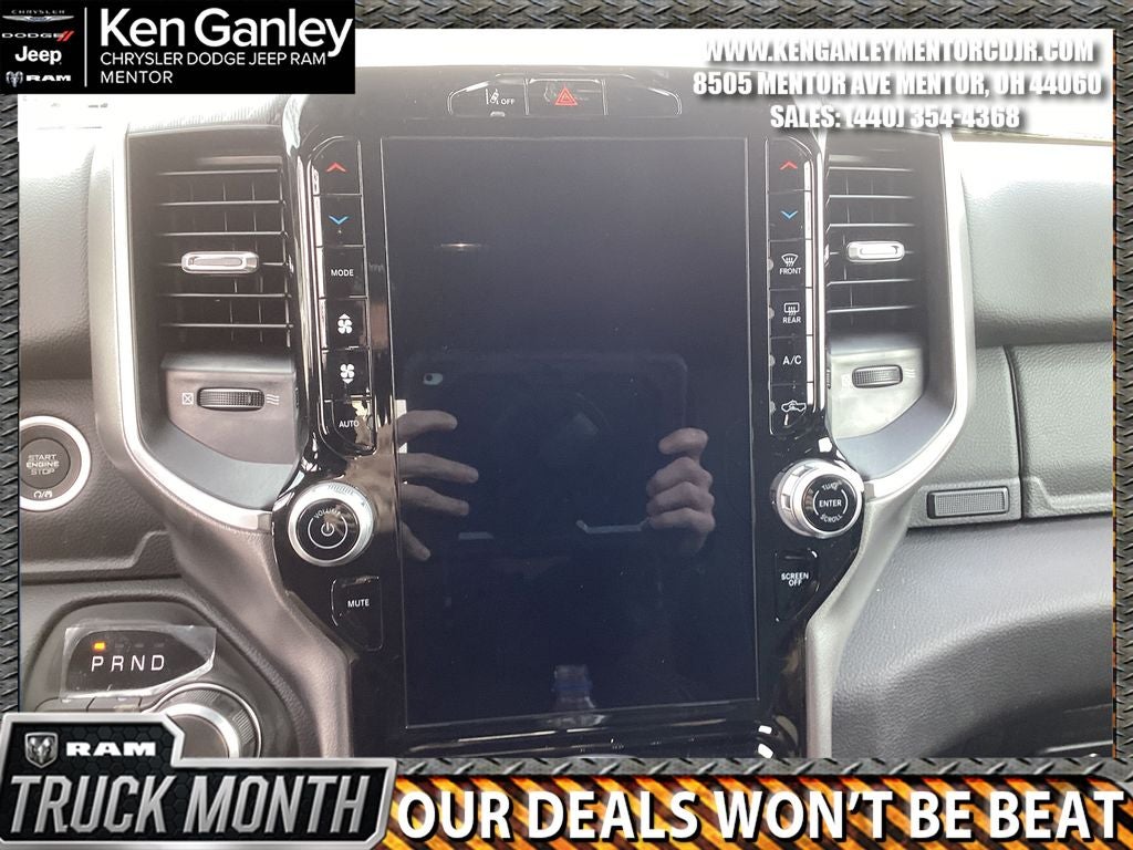 *ParkView Rear Back-Up Camera, 115V Auxiliary Power Outlet, 115V Auxiliary Rear Power Outlet, 12 Touchscreen Display, 2nd Row in Floor Storage Bins, 3 Rear Seat Head Restraints, 4 Way Front Headrests, 4-Wheel Disc Brakes, 400W Inverter, 4G LTE Wi-Fi Hot Spot, 6 Speakers, 9 Amplified Speakers with Subwoofer, ABS brakes, Accent Color Door Handles, Accent Color Premium Power Mirrors, Accent Color Tailgate Handle, Air Conditioning, Air Conditioning ATC with Dual Zone Control, Alloy wheels, AM/FM radio, Anti-Spin Differential Rear Axle, Apple CarPlay, Apple CarPlay/Android Auto, Auto High-beam Headlights, Auto Power-Folding Mirrors, Auto-Dimming Exterior Driver Mirror, Auto-Dimming Rear-View Mirror, Bed Utility Group, Big Horn Level 2 Equipment Group, Black Exterior Mirrors, Black Exterior Truck Badging, Black Headlamp Bezels, Black Interior Accents, Black Painted Exterior Mirrors Caps, Black Premium Power Mirrors, Black Tail Lamp Bezels, Body Color Fender Flares, Body Color Front Bumper, Body Color Rear Bumper with Step Pads, Brake assist, Bucket Seats, Bumpers: chrome, Center Console Parts Module, Cloth Bucket Seats, Cluster 12 TFT Color Display, Cluster 7.0 TFT Color Display, Compass, Configurable Drive Mode, Connected Travel and Traffic Services, Connectivity - US/Canada, Convex Wide-Angle Exterior Mirror Insert, Delay-off headlights, Deluxe Cloth Bucket Seats, Disassociated Touchscreen Display, Driver door bin, Dual Exhaust with Black Tips, Dual front impact airbags, Dual front side impact airbags, Electronic Stability Control, Exterior 115V AC Outlet, Exterior Mirrors Courtesy Lamps, Exterior Mirrors with Heating Element, Exterior Mirrors with Supplemental Signals, Front anti-roll bar, Front Bucket Seats, Front Center Armrest w/Storage, Front fog lights, Front License Plate Bracket, Front reading lights, Front Seat Back Map Pockets, Front wheel independent suspension, Full Length Floor Console, Fully automatic headlights, Global Telematics Box Module, Glove Box Lamp, Google Android Auto, GPS Antenna Input, GPS Navigation, Grille Black Surround Black Mesh, HD Radio, Heated door mirrors, Heated Front Seats, Heated Steering Wheel, Illuminated entry, Integrated Center Stack Radio, Integrated Voice Command with Bluetooth®, Leather Wrapped Steering Wheel, LED Dome Lamp with on/Off Switch, LED Footwell Lighting, Low tire pressure warning, Manual Adjust 4-Way Driver Seat, Manual Adjust 4-Way Front Passenger Seat, Manual Folding Exterior Mirrors, Manufacturer's Statement of Origin, Media Hub with 2 Charge Only USBs, MOPAR 4 Adjustable Cargo Tie-Down Hooks, MOPAR Front and Rear Rubber Floor Mats, MOPAR Spray in Bedliner, MyFlexCare Service Plan, Night Edition, Occupant sensing airbag, Outside temperature display, Overhead airbag, Overhead console, Overhead LED Lamps, Panic alarm, Passenger door bin, Passenger vanity mirror, Pick-Up Box Lighting, Power 2-Way Driver Lumbar Adjust, Power Adjust 8-Way Driver Seat, Power Adjustable Pedals, Power door mirrors, Power steering, Power windows, Premium Overhead Console, Quick Order Package 21Z Big Horn, Radio data system, Radio: Uconnect 5 Navigation with 12.0 Display, Radio: Uconnect 5 W with 8.4 Display, RAM Grille Badge - Black, RAM Grille Badge - Chrome, Rear 60/40 Folding Seat, Rear anti-roll bar, Rear Center Armrest, Rear Power Sliding Window, Rear step bumper, Rear Wheelhouse Liners, Rear Window Defroster, Remote keyless entry, Remote Tailgate Release, Security Alarm, SiriusXM Radio Service, SiriusXM with 360L, Speed control, Steering Wheel Mounted Audio Controls, Sun Visors with Illuminated Vanity Mirrors, Tachometer, Telescoping steering wheel, Tilt steering wheel, Traction control, Trailer Brake Control, Trip computer, Universal Garage Door Open Price includes: $3500 - 2026 National Retail Consumer Cash . Exp. 03/02/2026 $500 - 2026 Great Lakes BC Cleveland Auto Show Bonus Cash. Exp. 03/02/2026 $500 - 2026 Great Lakes BC Truck Month Bonus Cash . Exp. 03/02/2026