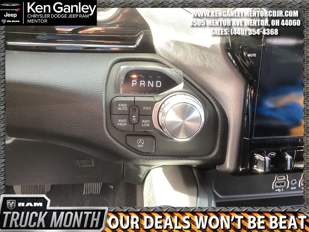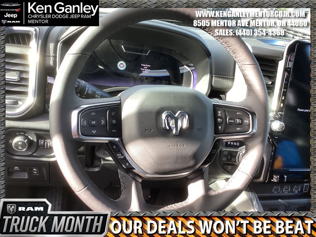 *Heated steering wheel, *ParkView Rear Back-Up Camera, *Ventilated front seats, 10 Speakers, 14.4 Touchscreen Display, 4-Wheel Disc Brakes, 4G LTE Wi-Fi Hot Spot, ABS brakes, Accent Color Door Handles, Accent Color Premium Power Mirrors, Accent Color Tailgate Handle, Active Noise Control System, Adjustable pedals, Air Conditioning, Alloy wheels, AM/FM radio: SiriusXM with 360L, Anti-Spin Differential Rear Axle, Apple CarPlay/Android Auto, Audio memory, Auto High-beam Headlights, Auto Power-Folding Mirrors, Auto-dimming door mirrors, Auto-Dimming Exterior Driver Mirror, Auto-dimming Rear-View mirror, Automatic temperature control, Black Exterior Truck Badging, Black Headlamp Bezels, Black Interior Accents, Black Painted Exterior Mirrors Caps, Black Tail Lamp Bezels, Body Color Front Bumper, Body Color Rear Bumper with Step Pads, Brake assist, Bumpers: chrome, Chrome Exterior Mirrors, Cluster 12 TFT Color Display, Compass, Connected Travel and Traffic Services, Connectivity - US/Canada, Convex Wide-Angle Exterior Mirror Insert, Delay-off headlights, Dome Dual LED Reading Lamp, Driver door bin, Driver vanity mirror, Dual Exhaust with Black Tips, Dual front impact airbags, Dual front side impact airbags, Dual-Pane Panoramic Sunroof, Electronic Stability Control, Exterior Mirrors Approach Lamps, Exterior Mirrors Courtesy Lamps, Exterior Mirrors with Heating Element, Exterior Mirrors with Memory, Exterior Mirrors with Supplemental Signals, Front anti-roll bar, Front Bucket Seats, Front Center Armrest w/Storage, Front dual zone A/C, Front fog lights, Front License Plate Bracket, Front Passenger Interactive Display, Front reading lights, Front wheel independent suspension, Fully automatic headlights, Garage door transmitter, GPS Navigation, Grille Surround 3 Black Texture 2 Black, Harman/Kardon 19 Speaker Premium Sound, Heated door mirrors, Heated front seats, Heated rear seats, Illuminated entry, Integrated Center Stack Radio, Integrated Voice Command with Bluetooth®, Laramie Level 2 Equipment Group, Leather steering wheel, Leather Trimmed Bucket Seats, LED Dome/Reading Lamp, Low tire pressure warning, Manufacturer's Statement of Origin, Memory seat, MOPAR Front and Rear Rubber Floor Mats, MyFlexCare Service Plan, Navigation System, Night Edition, Occupant sensing airbag, Off-Road Information Pages, Outside temperature display, Overhead airbag, Overhead console, Panic alarm, Passenger door bin, Passenger vanity mirror, Pedal memory, Pirelli Brand Tires, Power Deployable Running Boards, Power door mirrors, Power driver seat, Power passenger seat, Power steering, Power Tailgate, Power windows, Proximity Approach/Departure Lamps, Quick Order Package 21H Laramie, Radio data system, Radio: Uconnect 5 Nav with 14.4 Display, Radio: Uconnect 5 Navigation with 12.0 Display, Rain Sensitive Windshield Wipers, RAM Grille Badge - Black, RAM Grille Badge - Chrome, Rear anti-roll bar, Rear reading lights, Rear seat center armrest, Rear step bumper, Rear Wheelhouse Liners, Remote keyless entry, Security system, SiriusXM Radio Service, SiriusXM with 360L, Speed control, Split folding rear seat, Sport Performance Hood, Steering wheel mounted audio controls, Tachometer, Telescoping steering wheel, Tilt steering wheel, Traction control, Trailer Brake Control, Trip computer, Turn signal indicator mirrors, USB Host Flip, Variably intermittent wipers, Voltmeter, Wheels: 20 x 9 Premium Paint/Polish, Wheels: 22 x 9 Forged Aluminum. PRICING AVAILABLE TO ALL CUSTOMER!!! WE ARE ONE OF OHIO'S LEADING VOLUME DEALERSHIPS COME SEE OUR HUGE SELECTION AND UNMATCHED SAVINGS ONLY AT GANLEY VILLAGE CHRYSLER DODGE JEEP RAM FIAT OF PAINESVILLE, OH 44077.