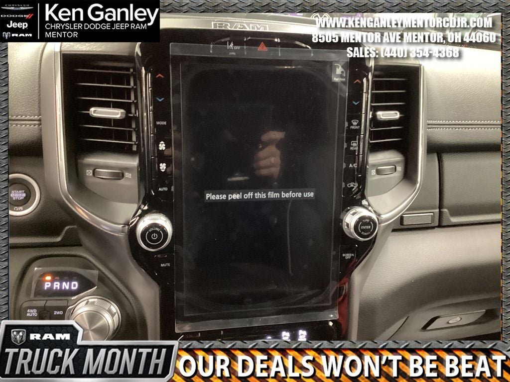 *Heated steering wheel, *ParkView Rear Back-Up Camera, *Ventilated front seats, 10 Speakers, 33 Gallon Fuel Tank, 4-Wheel Disc Brakes, 4G LTE Wi-Fi Hot Spot, ABS brakes, Accent Color Premium Power Mirrors, Active Noise Control System, Adjustable pedals, Air Conditioning, Alloy wheels, AM/FM radio: SiriusXM with 360L, Apple CarPlay/Android Auto, Audio memory, Auto High-beam Headlights, Auto Power-Folding Mirrors, Auto-dimming door mirrors, Auto-Dimming Exterior Driver Mirror, Auto-dimming Rear-View mirror, Automatic temperature control, Black Interior Accents, Black Painted Exterior Mirrors Caps, Body Color Front Bumper, Body Color Rear Bumper with Step Pads, Brake assist, Bridgestone Brand Tires, Bumpers: chrome, Chrome Exterior Mirrors, Compass, Connected Travel and Traffic Services, Connectivity - US/Canada, Convex Wide-Angle Exterior Mirror Insert, Delay-off headlights, Dome Dual LED Reading Lamp, Driver door bin, Driver vanity mirror, Dual front impact airbags, Dual front side impact airbags, Dual-Pane Panoramic Sunroof, Electronic Stability Control, Exterior Mirrors Courtesy Lamps, Exterior Mirrors with Heating Element, Exterior Mirrors with Memory, Exterior Mirrors with Supplemental Signals, Front anti-roll bar, Front Bucket Seats, Front Center Armrest w/Storage, Front dual zone A/C, Front fog lights, Front License Plate Bracket, Front reading lights, Front wheel independent suspension, Fully automatic headlights, Garage door transmitter, GPS Navigation, Grille Surround 3 Body Color Tex 2 Black, Heated door mirrors, Heated front seats, Heated rear seats, Illuminated entry, Integrated Center Stack Radio, Integrated Voice Command with Bluetooth®, Laramie Level 1 Equipment Group, Leather steering wheel, Leather Trimmed Bucket Seats, LED Dome/Reading Lamp, Low tire pressure warning, Manufacturer's Statement of Origin, Memory seat, MOPAR Front and Rear Rubber Floor Mats, MyFlexCare Service Plan, Navigation System, Occupant sensing airbag, Off-Road Information Pages, Outside temperature display, Overhead airbag, Overhead console, Panic alarm, Passenger door bin, Passenger vanity mirror, Pedal memory, Power door mirrors, Power driver seat, Power passenger seat, Power steering, Power windows, Quick Order Package 27H Laramie, Radio data system, Radio: Uconnect 5 Navigation with 12.0 Display, Rain Sensitive Windshield Wipers, RAM Grille Badge - Chrome, Rear anti-roll bar, Rear reading lights, Rear seat center armrest, Rear step bumper, Rear Wheelhouse Liners, Remote keyless entry, Remote Tailgate Release, Security system, SiriusXM Radio Service, SiriusXM with 360L, Speed control, Split folding rear seat, Sport Appearance Package, Sport Performance Hood, Steering wheel mounted audio controls, Tachometer, Telescoping steering wheel, Tilt steering wheel, Traction control, Trailer Brake Control, Trip computer, Turn signal indicator mirrors, USB Host Flip, Variably intermittent wipers, Voltmeter, Wheels: 20 x 9 Premium Paint/Polish. PRICING AVAILABLE TO ALL CUSTOMER!!! WE ARE ONE OF OHIO'S LEADING VOLUME DEALERSHIPS COME SEE OUR HUGE SELECTION AND UNMATCHED SAVINGS ONLY AT GANLEY VILLAGE CHRYSLER DODGE JEEP RAM FIAT OF PAINESVILLE, OH 44077.