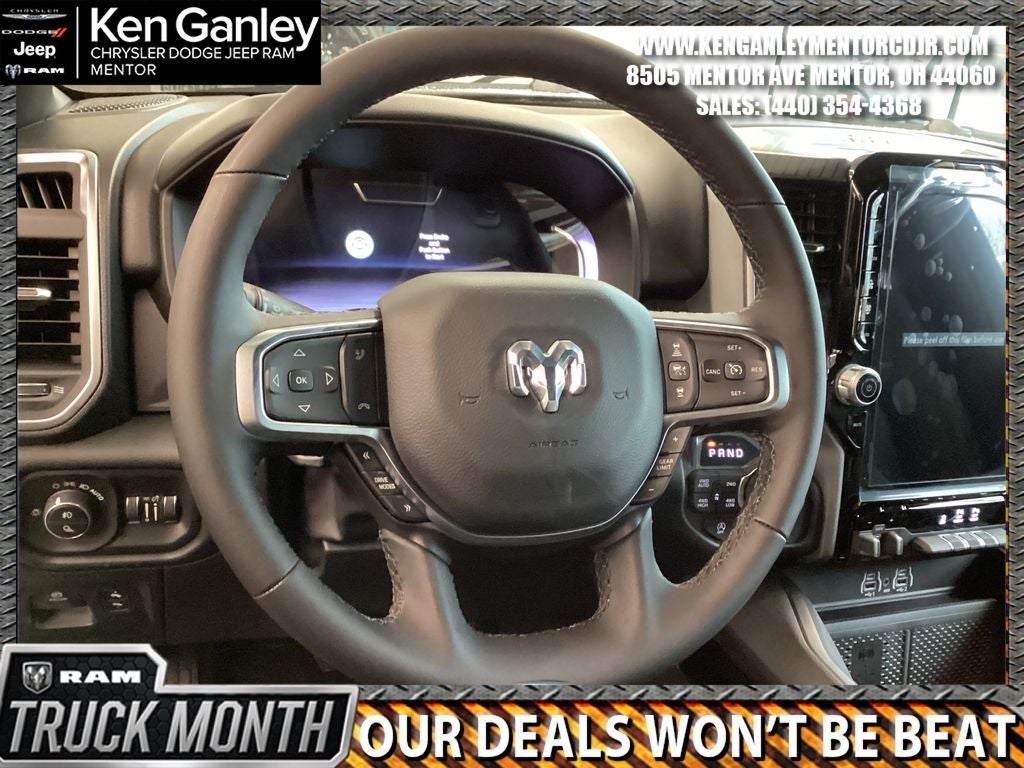 *ParkView Rear Back-Up Camera, 115V Auxiliary Power Outlet, 115V Auxiliary Rear Power Outlet, 12 Touchscreen Display, 2nd Row in Floor Storage Bins, 3 Rear Seat Head Restraints, 33 Gallon Fuel Tank, 4 Way Front Headrests, 4-Wheel Disc Brakes, 400W Inverter, 48V Belt Starter Generator, 4G LTE Wi-Fi Hot Spot, 6 Speakers, 9 Amplified Speakers with Subwoofer, ABS brakes, Accent Color Door Handles, Accent Color Premium Power Mirrors, Accent Color Tailgate Handle, Air Conditioning, Air Conditioning ATC with Dual Zone Control, Alloy wheels, AM/FM radio, Anti-Spin Differential Rear Axle, Apple CarPlay, Apple CarPlay/Android Auto, Auto High-beam Headlights, Auto Power-Folding Mirrors, Auto-Dimming Exterior Driver Mirror, Auto-Dimming Rear-View Mirror, Big Horn Level 2 Equipment Group, Black Exterior Mirrors, Black Exterior Truck Badging, Black Headlamp Bezels, Black Interior Accents, Black Painted Exterior Mirrors Caps, Black Premium Power Mirrors, Black Tail Lamp Bezels, Body Color Fender Flares, Body Color Front Bumper, Body Color Rear Bumper with Step Pads, Brake assist, Bucket Seats, Bumpers: chrome, Center Console Parts Module, Cloth Bucket Seats, Cluster 12 TFT Color Display, Cluster 7.0 TFT Color Display, Compass, Configurable Drive Mode, Connected Travel and Traffic Services, Connectivity - US/Canada, Convex Wide-Angle Exterior Mirror Insert, Delay-off headlights, Deluxe Cloth Bucket Seats, Disassociated Touchscreen Display, Driver door bin, Dual Exhaust with Black Tips, Dual front impact airbags, Dual front side impact airbags, Electronic Stability Control, Exterior Mirrors Courtesy Lamps, Exterior Mirrors with Heating Element, Exterior Mirrors with Supplemental Signals, Front anti-roll bar, Front Bucket Seats, Front Center Armrest w/Storage, Front fog lights, Front License Plate Bracket, Front reading lights, Front Seat Back Map Pockets, Front wheel independent suspension, Full Length Floor Console, Fully automatic headlights, Global Telematics Box Module, Glove Box Lamp, Google Android Auto, GPS Antenna Input, GPS Navigation, Grille Black Surround Black Mesh, HD Radio, Heated door mirrors, Heated Front Seats, Heated Steering Wheel, Illuminated entry, Integrated Center Stack Radio, Integrated Voice Command with Bluetooth®, Leather Wrapped Steering Wheel, LED Dome Lamp with on/Off Switch, LED Footwell Lighting, Lone Star Badge, Low tire pressure warning, Manual Adjust 4-Way Driver Seat, Manual Adjust 4-Way Front Passenger Seat, Manual Folding Exterior Mirrors, Media Hub with 2 Charge Only USBs, Mopar Black Tubular Side Steps, MOPAR Front and Rear Rubber Floor Mats, Night Edition, Occupant sensing airbag, Outside temperature display, Overhead airbag, Overhead console, Overhead LED Lamps, Panic alarm, Passenger door bin, Passenger vanity mirror, Power 2-Way Driver Lumbar Adjust, Power Adjust 8-Way Driver Seat, Power Adjustable Pedals, Power door mirrors, Power steering, Power windows, Premium Overhead Console, Quick Order Package 21R Lone Star, Radio data system, Radio: Uconnect 5 Navigation with 12.0 Display, Radio: Uconnect 5 W with 8.4 Display, RAM Grille Badge - Black, RAM Grille Badge - Chrome, Rear 60/40 Folding Seat, Rear anti-roll bar, Rear Center Armrest, Rear Power Sliding Window, Rear step bumper, Rear Wheelhouse Liners, Rear Window Defroster, Remote keyless entry, Remote Tailgate Release, Security Alarm, SiriusXM Radio Service, SiriusXM with 360L, Speed control, Steering Wheel Mounted Audio Controls, Sun Visors with Illuminated Vanity Mirrors, Supplier Part Tracking (J-1), Tachometer, Telescoping steering wheel, Tilt steering wheel, Traction control, Trailer Brake Control, Trip computer, Universal Garage Door Opener, USB Host Flip, Variably intermittent wipers, Voltmeter, Whee Price includes: $3500 - 2026 National Retail Consumer Cash . Exp. 03/02/2026 $500 - 2026 Great Lakes BC Cleveland Auto Show Bonus Cash. Exp. 03/02/2026 $500 - 2026 Great Lakes BC Truck Month Bonus Cash . Exp. 03/02/2026