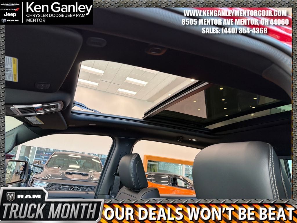 *Heated Second Row Seats, *Heated steering wheel, *ParkView Rear Back-Up Camera, 10 Speakers, 115V Auxiliary Rear Power Outlet, 14.4 Touchscreen Display, 2-Door Passive Entry, Front Door Locks, 3.92 Rear Axle Ratio, 33 Gallon Fuel Tank, 4 Way Front Headrests, 4-Wheel Disc Brakes, 4G LTE Wi-Fi Hot Spot, ABS brakes, Accent Color Door Handles, Accent Color Premium Power Mirrors, Accent Color Tailgate Handle, Active Noise Control System, Air Conditioning, Alloy wheels, AM/FM radio: SiriusXM with 360L, Apple CarPlay, Apple CarPlay/Android Auto, Auto High-beam Headlights, Auto Power-Folding Mirrors, Auto-Dimming Exterior Driver Mirror, Auto-dimming Rear-View mirror, Automatic temperature control, Bed Utility Group, Black Exterior Mirrors, Black Painted Exterior Mirrors Caps, Brake assist, Bucket Seats, Cloth/Vinyl Bucket Seats, Compass, Connected Travel and Traffic Services, Connectivity - US/Canada, Convex Wide-Angle Exterior Mirror Insert, Delay-off headlights, Disassociated Touchscreen Display, Dome Dual LED Reading Lamp, Driver door bin, Driver Seat Memory, Driver vanity mirror, Dual front impact airbags, Dual front side impact airbags, Dual Wireless Charging Pad, Dual-Pane Panoramic Sunroof, Electronic Stability Control, Exterior 115V AC Outlet, Exterior Mirrors Approach Lamps, Exterior Mirrors Courtesy Lamps, Exterior Mirrors with Heating Element, Exterior Mirrors with Memory, Exterior Mirrors with Supplemental Signals, Front anti-roll bar, Front Bucket Seats, Front Center Armrest w/Storage, Front dual zone A/C, Front fog lights, Front License Plate Bracket, Front Passenger Interactive Display, Front reading lights, Front Seat Back Map Pockets, Front wheel independent suspension, Full Length Upgraded Floor Console, Fully automatic headlights, Garage door transmitter, Global Telematics Box Module, Google Android Auto, GPS Antenna Input, GPS Navigation, Harman/Kardon 19 Speaker Premium Sound, HD Radio, Heated door mirrors, Heated Front Seats, Heated front seats, Heated Steering Wheel, Illuminated entry, Integrated Center Stack Radio, Integrated Voice Command with Bluetooth®, Leather steering wheel, Low tire pressure warning, Manual Folding Exterior Mirrors, Media Hub with 2 Charge Only USBs, MOPAR 4 Adjustable Cargo Tie-Down Hooks, Mopar Black Tubular Side Steps, MOPAR Spray in Bedliner, Navigation System, Occupant sensing airbag, Off-Road Information Pages, Outside temperature display, Overhead airbag, Overhead console, Panic alarm, Passenger door bin, Passenger vanity mirror, Power 2-Way Driver Lumbar Adjust, Power 2-Way Passenger Lumbar Adjust, Power Adjust 8-Way Driver Seat, Power Adjust 8-Way Front Passenger Seat, Power Adjustable Pedals with Memory, Power door mirrors, Power driver seat, Power steering, Power Tailgate, Power windows, Proximity Approach/Departure Lamps, Quick Order Package 21W Rebel, Radio data system, Radio: Uconnect 5 Nav with 14.4 Display, Radio: Uconnect 5 Navigation with 12.0 Display, Radio/Driver Seat/Mirrors/Pedals Memory, Rain Sensitive Windshield Wipers, RamBox Cargo Management System, Rear 60/40 Folding Seat, Rear anti-roll bar, Rear seat center armrest, Rear step bumper, Rear Wheelhouse Liners, Rear Window Defroster, Rebel Level 2 Equipment Group, Remote keyless entry, Security Alarm, SiriusXM Radio Service, SiriusXM with 360L, Smartphone as a Key Capable, Speed control, Split folding rear seat, Steering wheel mounted audio controls, Tachometer, Telescoping steering wheel, Tilt steering wheel, Traction control, Tri-Fold Tonneau Cover, Trip computer, USB Host Flip, Variably intermittent wipers, Voltmeter, Wheels: 18 x 8.0 Painted Mid-Gloss Black. PRICING AVAILABLE TO ALL CUSTOMER!!! WE ARE ONE OF OHIO'S LEADING VOLUME DEALERSHIPS COME SEE OUR HUGE SELECTION AND UNMATCHED SAVINGS ONLY AT GANLEY VILLAGE CHRYSLER DODGE JEEP RAM FIAT OF PAINESVILLE, OH 44077.