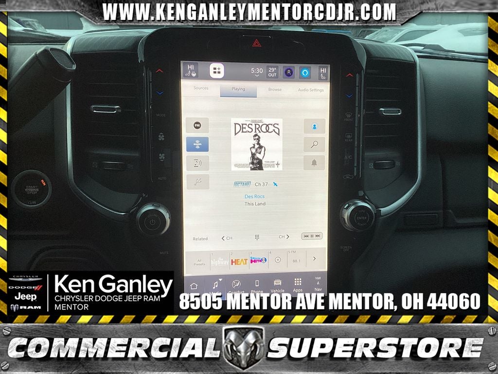 *ParkView Rear Back-Up Camera, 12 Touchscreen Display, 2 Way Rear Headrest Seat, 2nd Row in Floor Storage Bins, 3.73 Axle Ratio, 4 Way Front Headrests, 4-Wheel Disc Brakes, 40/20/40 Split Bench Seat, 4G LTE Wi-Fi Hot Spot, 6 Speakers, 9 Alpine Speakers with Subwoofer, ABS brakes, Air Conditioning, Air Conditioning ATC with Dual Zone Control, Alexa Built-in, Alloy wheels, AM/FM radio: SiriusXM, Anti-Spin Differential Rear Axle, Apple CarPlay, Apple CarPlay/Android Auto, Auto Power-Folding Mirrors, Auto-Dimming Rear-View Mirror, Big Horn Level 1 Plus Equipment Group, Black Exterior Mirrors, Black Exterior Truck Badging, Black Interior Accents, Black Wheel Center Hub, Body Color Grille-Surround, Brake assist, Bumpers: chrome, Center Hub, Clearance Lamps, Cloth 40/20/40 Bench Seat, Compass, Connected Travel and Traffic Services, Connectivity - US/Canada, Delay-off headlights, Disassociated Touchscreen Display, Driver door bin, Dual front impact airbags, Dual front side impact airbags, Dual Glove Boxes, Electronic Stability Control, Emergency Vehicle Alert System (EVAS), Exterior Mirrors Courtesy Lamps, Exterior Mirrors with Heating Element, Exterior Mirrors with Supplemental Signals, Foam Bottle Insert (door Trim Panel), Folding Flat Load Floor Storage, Footwell Courtesy Lamp, For Details, Visit DriveUconnect.com, For More Info, Call 800-643-2112, Forward and Reverse Utility Lights, Front anti-roll bar, Front Armrest with Cupholders, Front Center Armrest w/Storage, Front Center Seat Cushion Storage, Front fog lights, Front License Plate Bracket, Front reading lights, Front Seat Back Map Pockets, Fully automatic headlights, Global Telematics Box Module, Gloss Black Nostrils/Mic Black Grille, Glove Box Lamp, Google Android Auto, GPS Antenna Input, GPS Navigation, HD Radio, Heated door mirrors, Heated Front Seats, Heated Seats and Wheel Group, Heated Steering Wheel, Illuminated entry, Integrated Voice Command with Bluetooth®, LED Bed Lighting, Locking Lower Glove Box, Low tire pressure warning, Luxury Steering Wheel, Manual Adjust 4-Way Driver Seat, Manual Adjust 4-Way Front Passenger Seat, Manufacturer's Statement of Origin, Mirror Running Lights, MOPAR Deployable Bed Step, MOPAR Front and Rear Rubber Floor Mats, MOPAR Spray in Bedliner, MyFlexCare Service Plan, Night Edition, Occupant sensing airbag, Off-Road Info Pages, Outside temperature display, Overhead airbag, Overhead console, Painted Front Bumper, Painted Rear Bumper, Panic alarm, Passenger door bin, Passenger vanity mirror, Power 2-Way Driver Lumbar Adjust, Power Adjust 8-Way Driver Seat, Power Adjust Mirrors, Power door mirrors, Power Heated Folding Telescopic Mirrors, Power steering, Power Telescoping Mirrors, Power windows, Power-Adjustable Convex Aux Mirrors, Premium Cloth 40/20/40 Bench Seat, Quick Order Package 2UZ Big Horn, Radio data system, Radio: Uconnect 5 Navigation with 12.0 Display, Radio: Uconnect 5 with 8.4 Display, Rear 60/40 Folding Seat, Rear anti-roll bar, Rear Dome with on/Off Switch Lamp, Rear Folding Seat, Rear seat center armrest, Rear step bumper, Rear Wheelhouse Liners, Rear window defroster, Remote keyless entry, Remote Start System, Remote USB Port - Charge Only, Security system, Selectable Tire Fill Alert, SiriusXM Radio Service, SiriusXM with 360L, Speed control, Steering Wheel Mounted Audio Controls, Storage Tray, Tachometer, Tilt steering wheel, Traction control, Trailer Tow Pages, Trip computer, Turn signal indicator mirrors, Variably intermittent wipers, Voltmeter, Wheels: 18 x 8.0 Polished Aluminum, Wheels: 20 x 8.0 Black Painted Aluminum. PRICING AVAILABLE TO ALL CUSTOMER!!! WE ARE ONE OF OHIO'S LEADING VOLUME DEALERSHIPS COME SEE OUR HUGE SELECTION AND UNMATCHED SAVINGS ONLY AT GANLEY VILLAGE CHRYSLER DODGE JEEP RAM FIAT OF PAINESVILLE, OH 44077.
