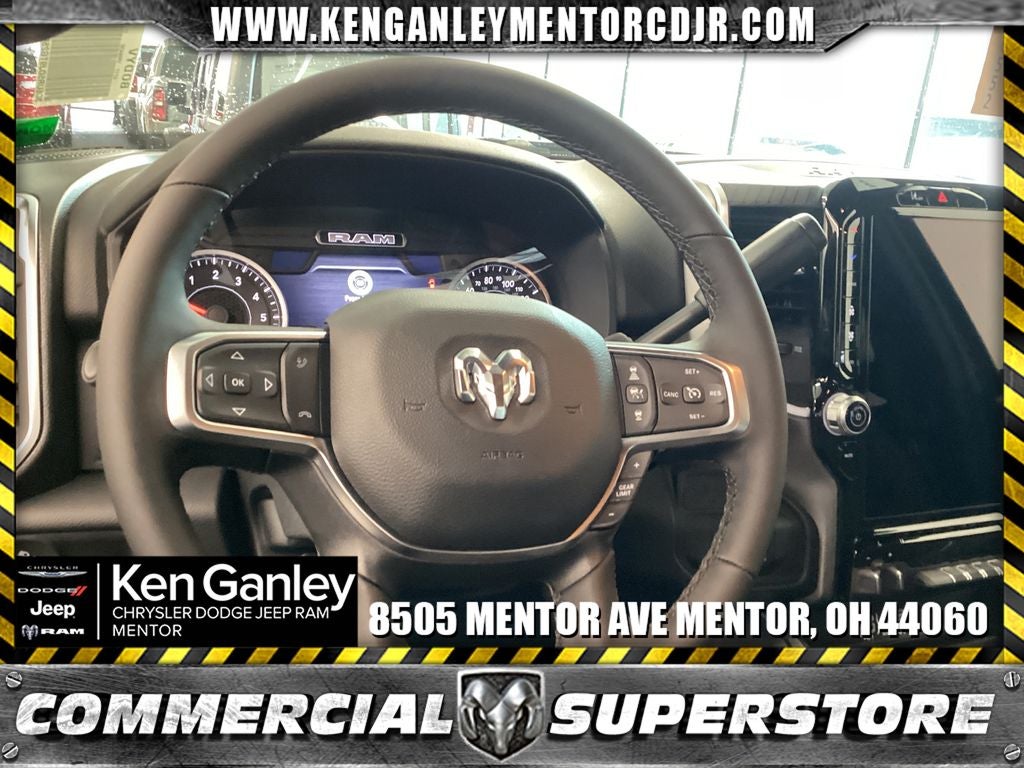 *ParkView Rear Back-Up Camera, 115-Volt Auxiliary Front Power Outlet, 115V Auxiliary Rear Power Outlet, 12 Touchscreen Display, 2 Way Rear Headrest Seat, 2nd Row in Floor Storage Bins, 4 Way Front Headrests, 4-Wheel Disc Brakes, 40/20/40 Split Bench Seat, 400W Inverter, 4G LTE Wi-Fi Hot Spot, 6 Speakers, 9 Alpine Speakers with Subwoofer, ABS brakes, Active Lane Management System, Adaptive Steering System, Air Conditioning, Air Conditioning ATC with Dual Zone Control, Alexa Built-in, Alloy wheels, AM/FM radio: SiriusXM, Anti-Spin Differential Rear Axle, Apple CarPlay, Apple CarPlay/Android Auto, Auto High Beam Headlamp Control, Auto Power-Folding Mirrors, Auto-Dimming Rear-View Mirror, Big Horn Level 2 Plus Equipment Group, Black Exterior Mirrors, Black Exterior Truck Badging, Black Interior Accents, Black Wheel Center Hub, Blind Spot and Cross Path Detection, Body Color Grille-Surround, Brake assist, Bucket Seats, Bumpers: chrome, Center Hub, Center Stop Lamp with Cargo View Camera, Clearance Lamps, Cloth 40/20/40 Bench Seat, Cluster 7.0 TFT Color Display, Compass, Connected Travel and Traffic Services, Connectivity - US/Canada, Dampened Tailgate, Delay-off headlights, Disassociated Touchscreen Display, Driver door bin, Drowsy Driver Detection, Dual front impact airbags, Dual front side impact airbags, Dual Glove Boxes, Dual Wireless Charging Pad, Electronic Stability Control, Emergency Vehicle Alert System (EVAS), Exterior 115V AC Outlet, Exterior Mirrors Courtesy Lamps, Exterior Mirrors with Heating Element, Exterior Mirrors with Supplemental Signals, Foam Bottle Insert (door Trim Panel), Folding Flat Load Floor Storage, Footwell Courtesy Lamp, For Details, Visit DriveUconnect.com, For More Info, Call 800-643-2112, Forward and Reverse Utility Lights, Front anti-roll bar, Front Armrest with Cupholders, Front Center Armrest w/Storage, Front fog lights, Front License Plate Bracket, Front reading lights, Front Seat Back Map Pockets, Full Length Upgraded Floor Console, Fully automatic headlights, Global Telematics Box Module, Gloss Black Nostrils/Mic Black Grille, Glove Box Lamp, Google Android Auto, GPS Antenna Input, GPS Navigation, HD Radio, Heated door mirrors, Heated Front Seats, Heated Steering Wheel, Illuminated entry, Integrated Voice Command with Bluetooth®, LED Bed Lighting, LED Tail Lamps, Locking Lower Glove Box, Low tire pressure warning, Luxury Steering Wheel, Manual Adjust 4-Way Driver Seat, Manual Adjust 4-Way Front Passenger Seat, Manufacturer's Statement of Origin, Media Hub with 2 Charge Only USBs, Mirror Running Lights, MOPAR Deployable Bed Step, MOPAR Front and Rear Rubber Floor Mats, MOPAR Spray in Bedliner, MOPAR Trailer Camera Wiring with No Camera, MyFlexCare Service Plan, Night Edition, Occupant sensing airbag, Off-Road Info Pages, Outside temperature display, Overhead airbag, Overhead console, Painted Front Bumper, Painted Rear Bumper, Panic alarm, Passenger door bin, Passenger vanity mirror, Power 2-Way Driver Lumbar Adjust, Power Adjust 8-Way Driver Seat, Power Adjust Mirrors, Power Adjustable Pedals, Power door mirrors, Power Heated Folding Telescopic Mirrors, Power steering, Power Telescoping Mirrors, Power windows, Power-Adjustable Convex Aux Mirrors, Premium Cloth Bucket Seats, Quick Order Package 2UZ Big Horn, Radio data system, Radio: Uconnect 5 Navigation with 12.0 Display, Radio: Uconnect 5 with 8.4 Display, Rain Sensitive Windshield Wipers, Rear 60/40 Folding Seat, Rear anti-roll bar, Rear Dome with on/Off Switch Lamp, Rear Folding Seat, Rear Power Sliding Window, Rear seat center armrest, Rear step bumper, Rear Wheelhouse Liners, Rear window defroster, Red Tail Lamp Bezels, Remote keyless entry, Remote Start System, Remote USB Port - Charge Only, Security system, Selectable Tire Fill Alert, SiriusXM Radio Service, SiriusXM with 3 Price includes: $1000 - 2026 National Bonus Cash . Exp. 04/30/2026 $2000 - 2026 Great Lakes BC Select Inventory Bonus Cash . Exp. 04/30/2026