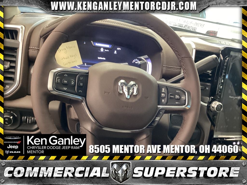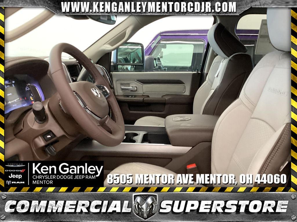 *Heated steering wheel, *ParkView Rear Back-Up Camera, #1 Seat Foam Cushion, 10 Speakers, 115V Auxiliary Rear Power Outlet, 2 Way Rear Headrest Seat, 2nd Row in Floor Storage Bins, 4 Way Front Headrests, 4-Wheel Disc Brakes, 4G LTE Wi-Fi Hot Spot, 5th Wheel/Gooseneck Towing Prep Group, 6000# Front Axle with Hub Extension, ABS brakes, Active Lane Management System, Adaptive Steering System, Air Conditioning, Alexa Built-in, Alloy wheels, AM/FM radio: SiriusXM with 360L, Apple CarPlay, Apple CarPlay/Android Auto, Auto Adjust in Reverse Exterior Mirrors, Auto Dimming Exterior Passenger Mirror, Auto High Beam Headlamp Control, Auto Power-Folding Mirrors, Auto-Dimming Exterior Mirrors, Auto-dimming Rear-View mirror, Automatic temperature control, Black Wheel Center Hub, Box and Rear Fender Clearance Lamps, Brake assist, Bright Front Bumper, Bright Rear Bumper, Bucket Seats, Bumpers: body-color, Center Hub, Center Stop Lamp with Cargo View Camera, Chrome Bumper Package, Chrome Exterior Mirrors, Chrome Flat Cab-Length Side Steps, Clearance Lamps, Compass, Connected Travel and Traffic Services, Connectivity - US/Canada, Delay-off headlights, Disassociated Touchscreen Display, Driver door bin, Driver vanity mirror, Drowsy Driver Detection, Dual Alternators Rated At 480 Amps, Dual front impact airbags, Dual front side impact airbags, Dual Rear Wheels, Dual Wireless Charging Pad, Electronic Stability Control, Emergency Vehicle Alert System (EVAS), Exterior Mirrors Courtesy Lamps, Exterior Mirrors with Heating Element, Exterior Mirrors with Memory, Exterior Mirrors with Supplemental Signals, Foam Bottle Insert (door Trim Panel), Folding Flat Load Floor Storage, Forward and Reverse Utility Lights, Front anti-roll bar, Front Center Armrest w/Storage, Front dual zone A/C, Front fog lights, Front License Plate Bracket, Front reading lights, Front Seat Back Map Pockets, Full Length Upgraded Floor Console, Fully automatic headlights, Garage door transmitter, Global Telematics Box Module, Google Android Auto, GPS Antenna Input, GPS Navigation, HD Radio, Heated door mirrors, Heated Front Seats, Heated front seats, Heated Steering Wheel, High Back Seats, Illuminated entry, Integrated Voice Command with Bluetooth®, Laramie Level 1 Plus Equipment Group, Leather Trim 40/20/40 Bench Seat, Leather Trimmed Bucket Seats, LED Bed Lighting, Low tire pressure warning, Manufacturer's Statement of Origin, Mirror Running Lights, MOPAR Deployable Bed Step, MOPAR Front and Rear Rubber Floor Mats, MOPAR Spray in Bedliner, MyFlexCare Service Diesel, Navigation System, Nexen Brand Tires, Occupant sensing airbag, Off-Road Information Pages, Outside temperature display, Overhead airbag, Overhead console, Panic alarm, Passenger door bin, Passenger vanity mirror, Power 2-Way Driver Lumbar Adjust, Power 2-Way Passenger Lumbar Adjust, Power Adjust 8-Way Driver Seat, Power Adjust 8-Way Front Passenger Seat, Power Adjust Mirrors, Power Adjustable Pedals with Memory, Power door mirrors, Power driver seat, Power Heat Fold Memory Telescopic Mirrors, Power passenger seat, Power steering, Power Sunroof, Power Telescoping Mirrors, Power windows, Power-Adjustable Convex Aux Mirrors, Quick Order Package 24H Laramie, Radio data system, Radio: Uconnect 5 Navigation with 12.0 Display, Radio/Driver Seat/Mirrors/Pedals Memory, Rain Sensitive Windshield Wipers, Rear 60/40 Folding Seat, Rear reading lights, Rear seat center armrest, Rear step bumper, Rear window defroster, Remote keyless entry, Remote Tailgate Release, Security system, Selectable Tire Fill Alert, SiriusXM Radio Service, SiriusXM with 360L, Speed control, Split folding rear seat, Steering wheel mounted audio controls, Tachometer, Tilt steering wheel, Traction control, Traffic Sign Recognition, Trailer Tow Pages, Trip computer, Turn signal indicator mirrors, Variably intermittent wipers, Ventilated Front Seats, Voltmeter, Wheels: 17 x Price includes: $1000 - 2026 National Bonus Cash . Exp. 04/30/2026